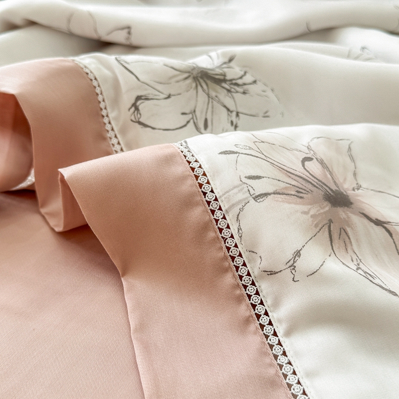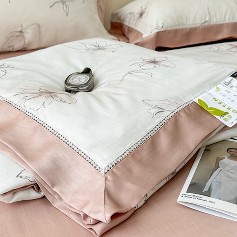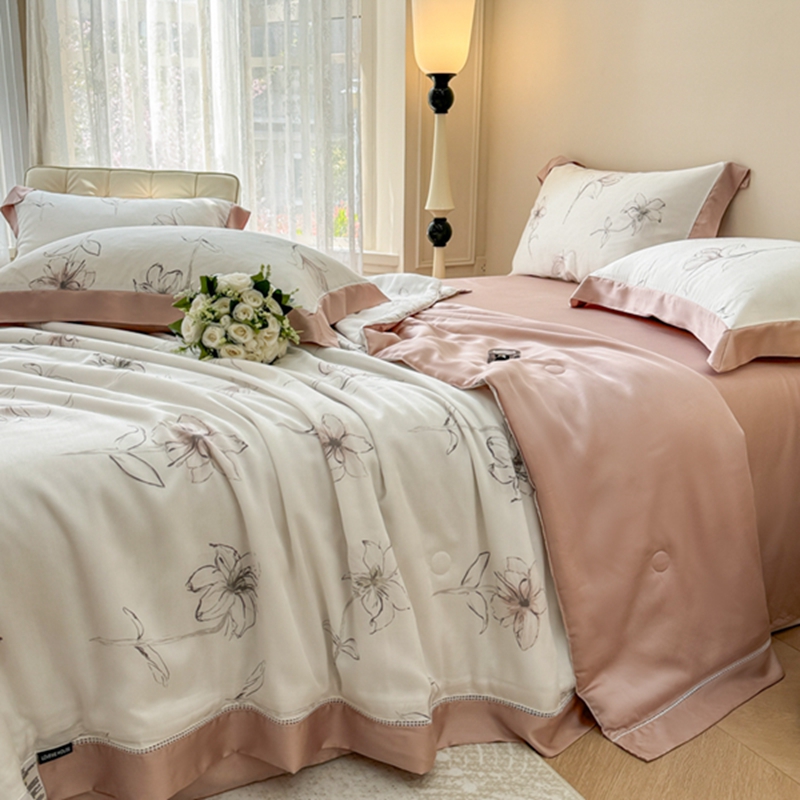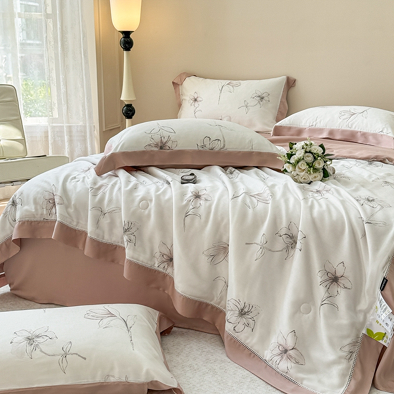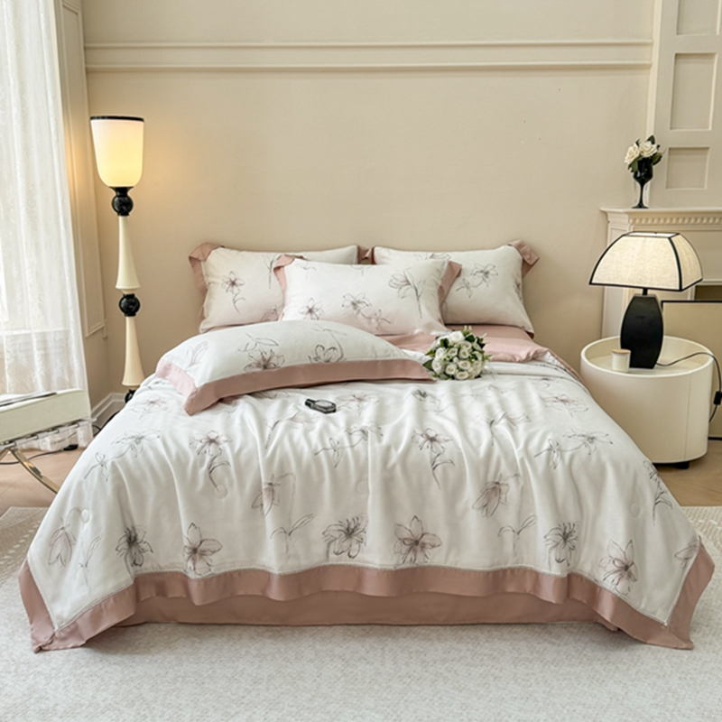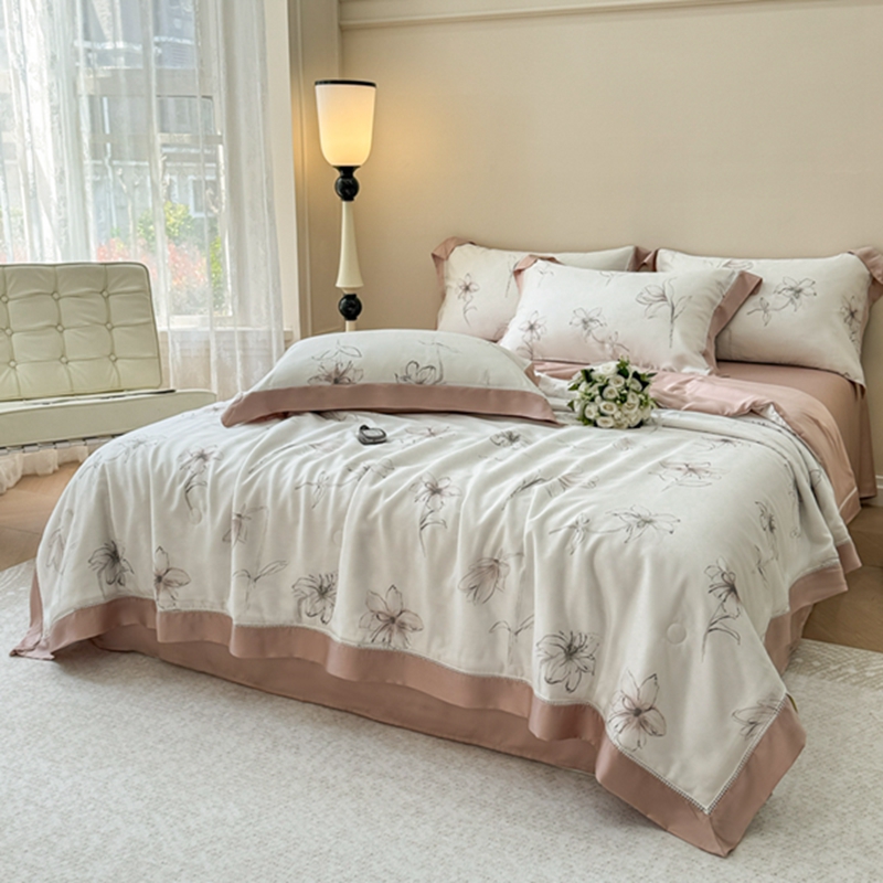 若未2025新款法式莱赛尔天丝印花镂空夏被和夏被四件套 枝叶诗韵