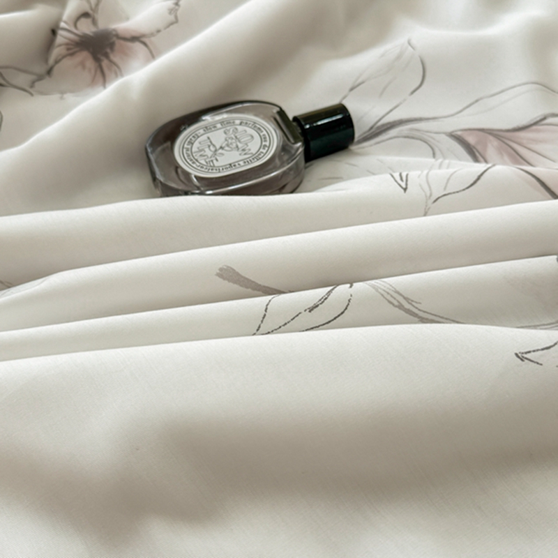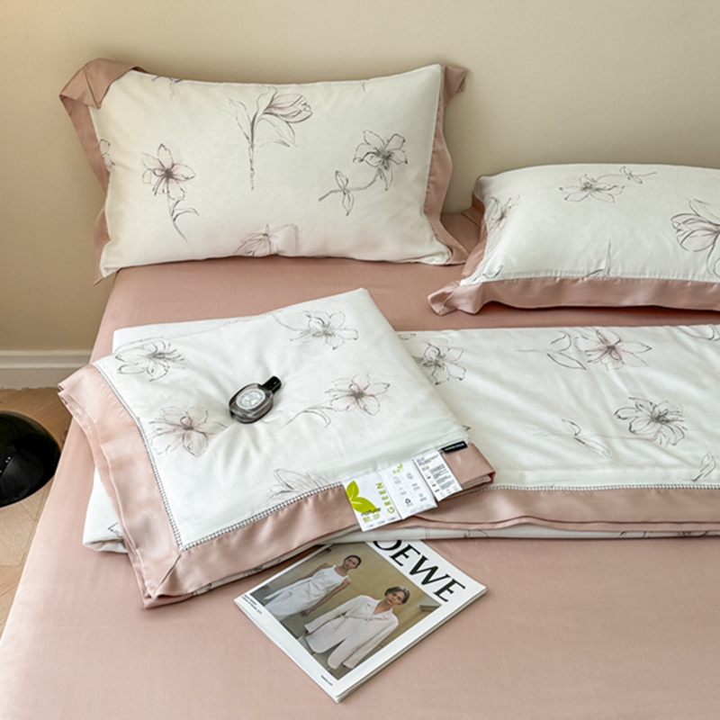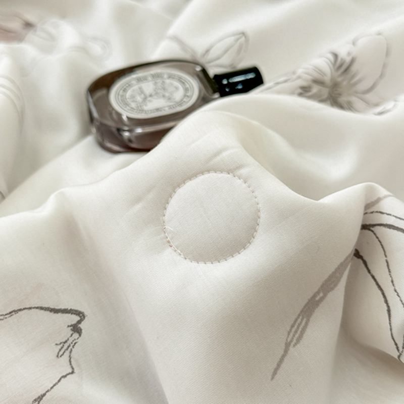 商品名称:若未2025新款法式莱赛尔天丝印花镂空夏被和夏被四件套 枝叶诗韵
