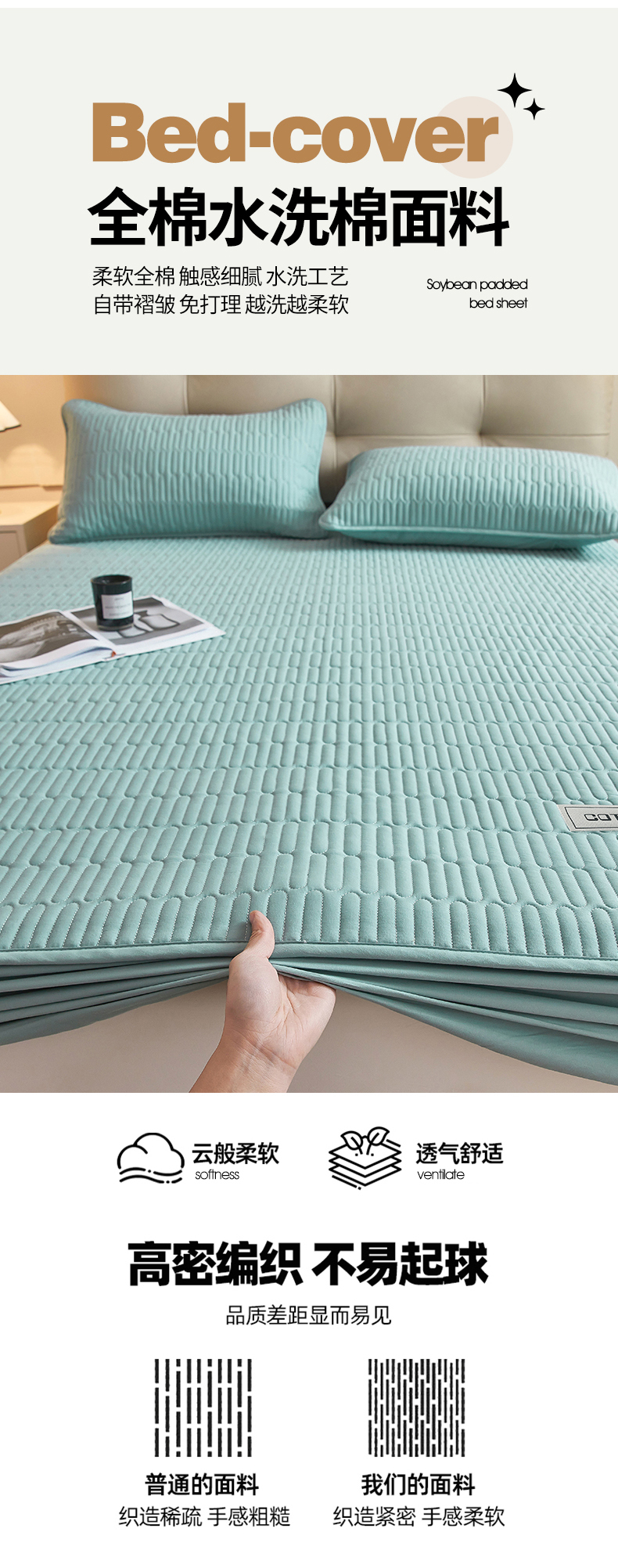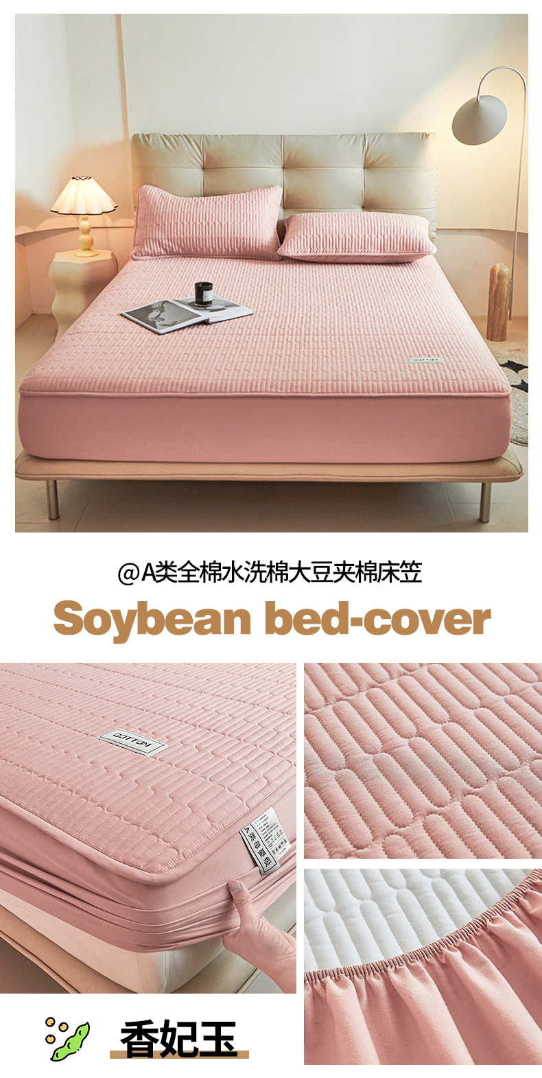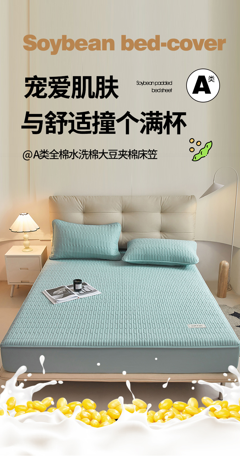 (总)3C 2024新款A类全棉水洗棉大豆夹棉床笠-初忆