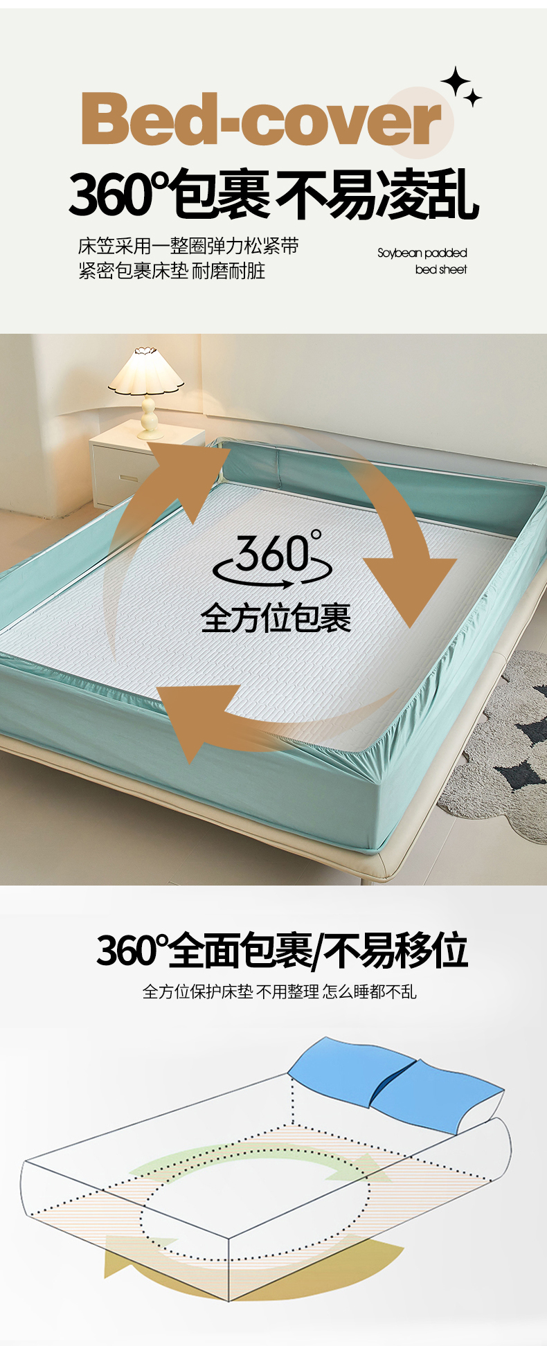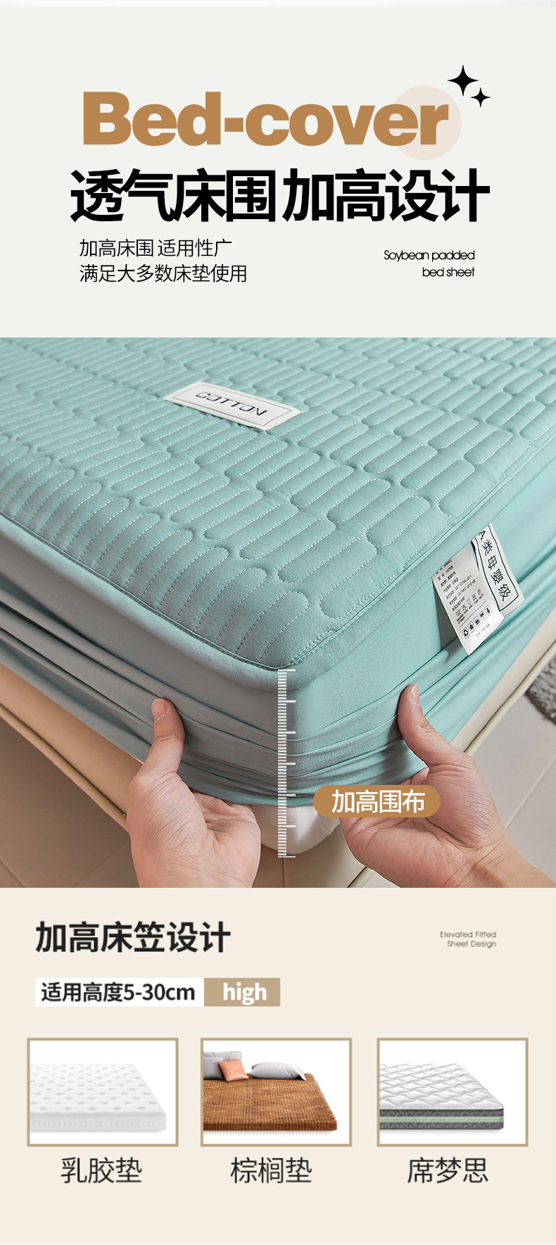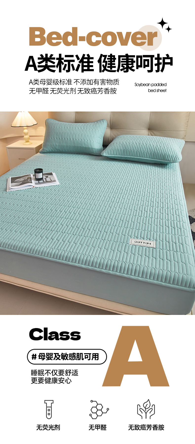 (总)3C 2024新款A类全棉水洗棉大豆夹棉床笠-初忆