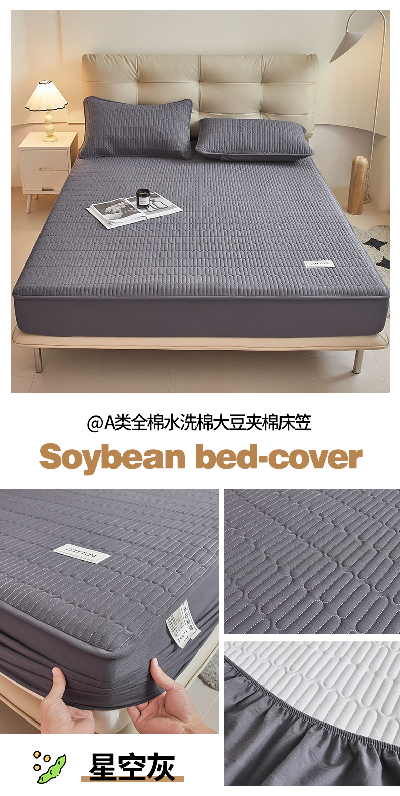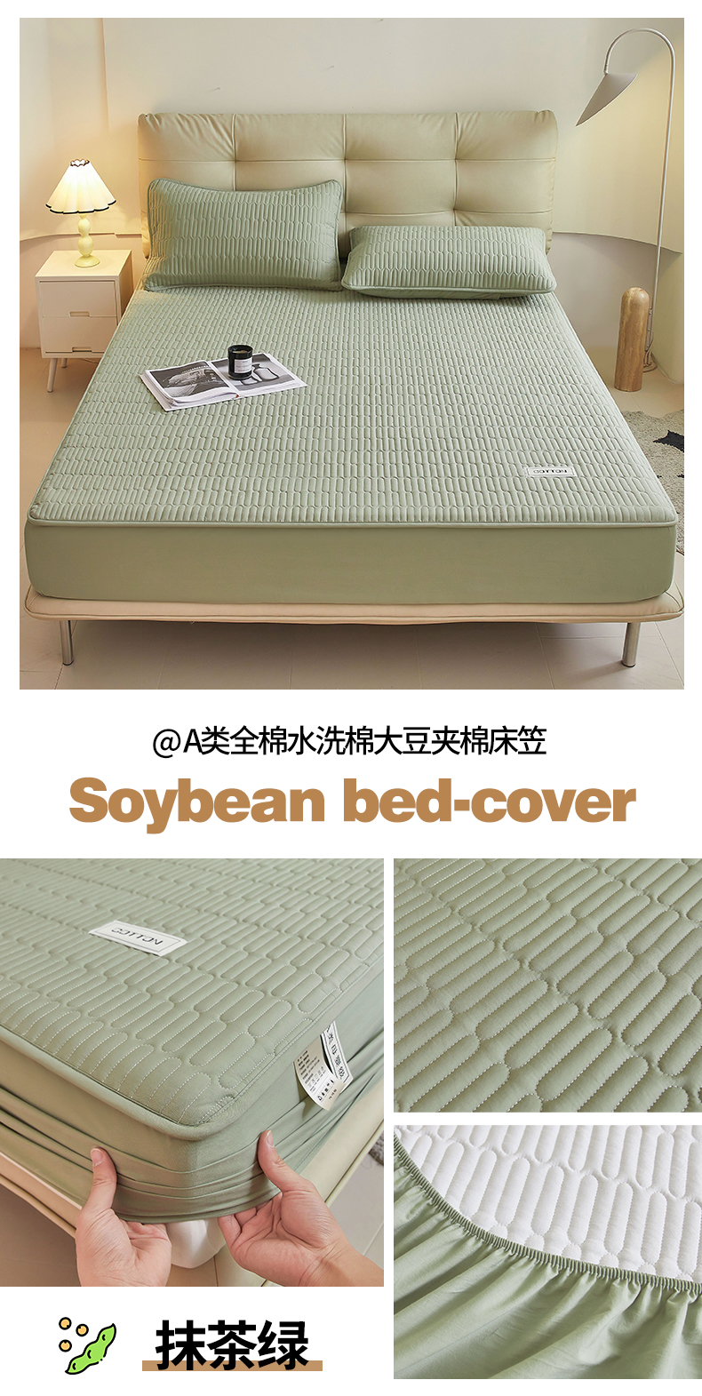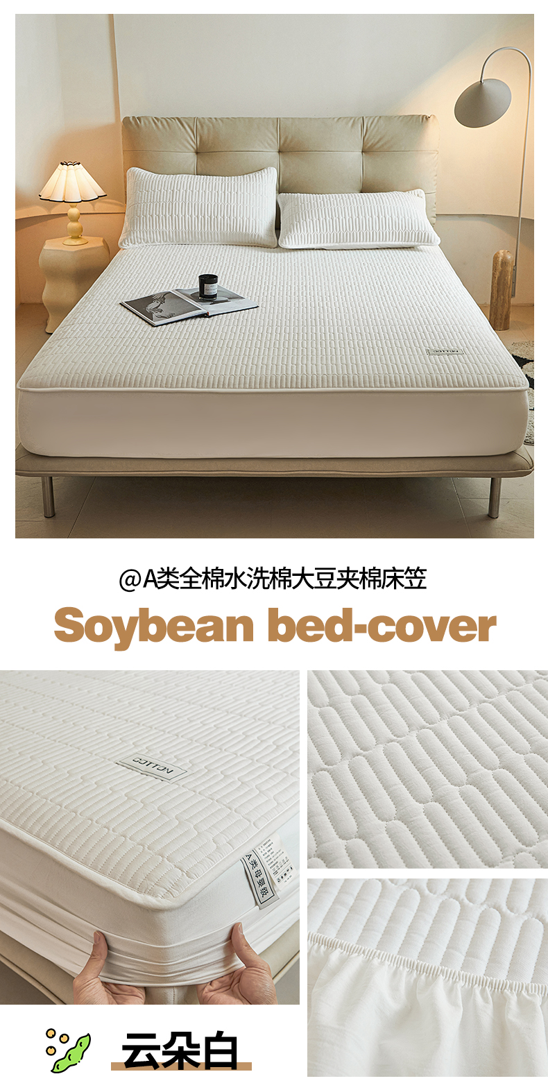 商品名称:(总)3C 2024新款A类全棉水洗棉大豆夹棉床笠-初忆
