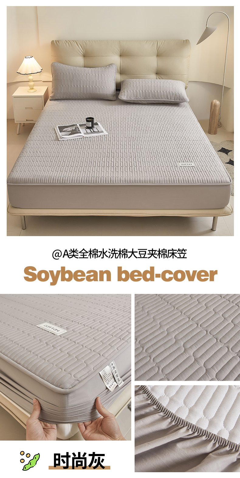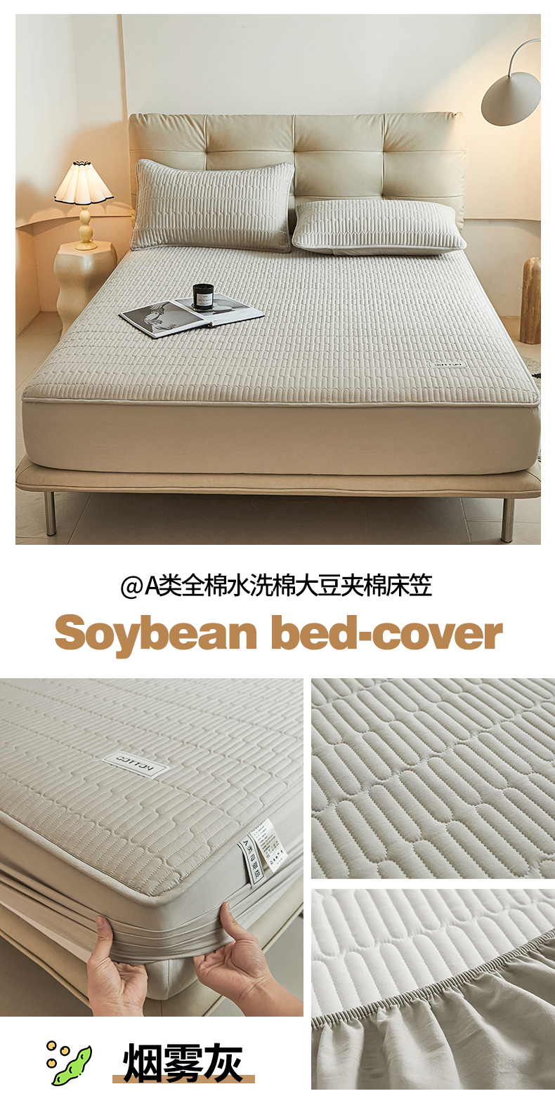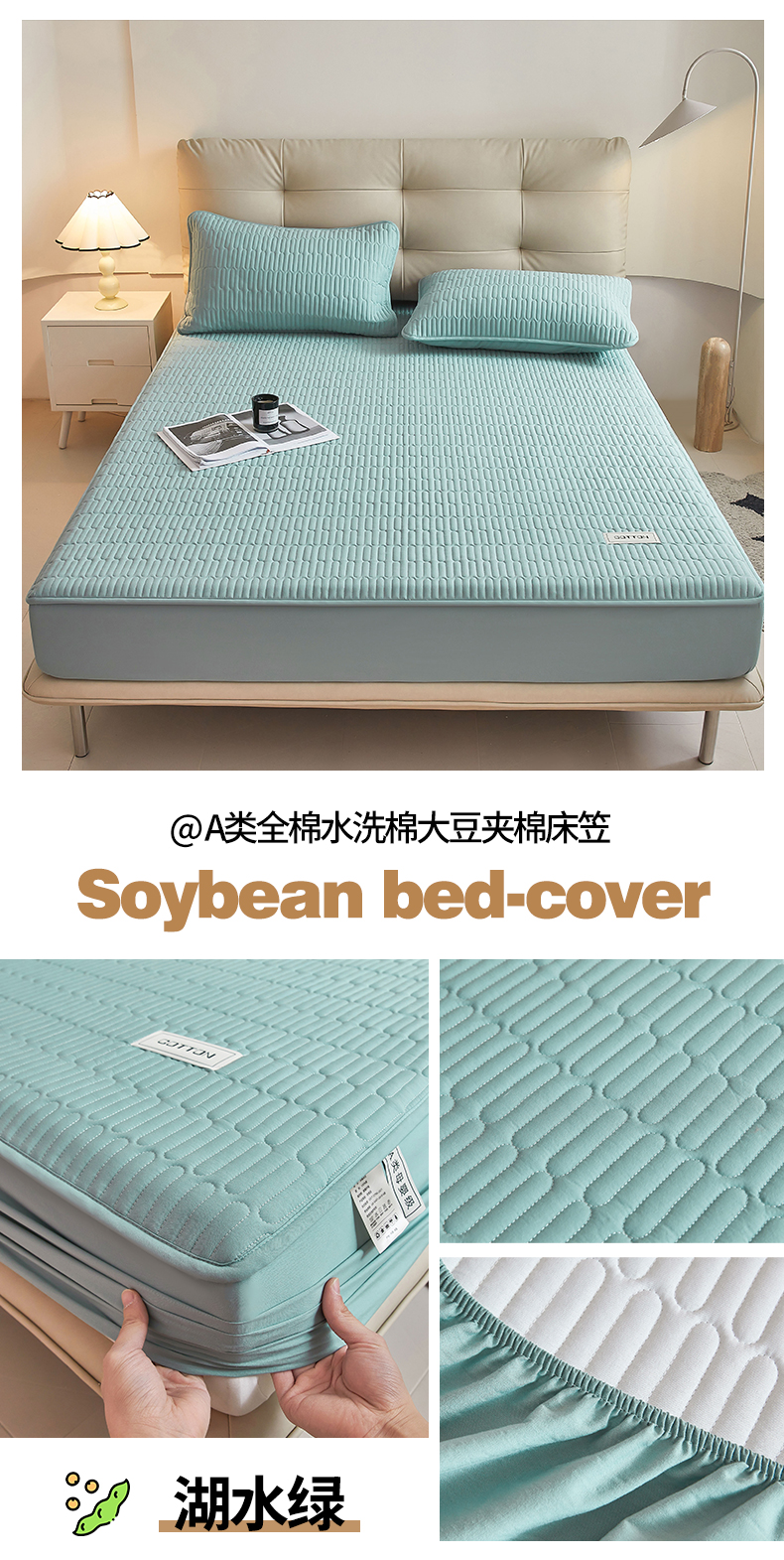 商品名称:(总)3C 2024新款A类全棉水洗棉大豆夹棉床笠-初忆