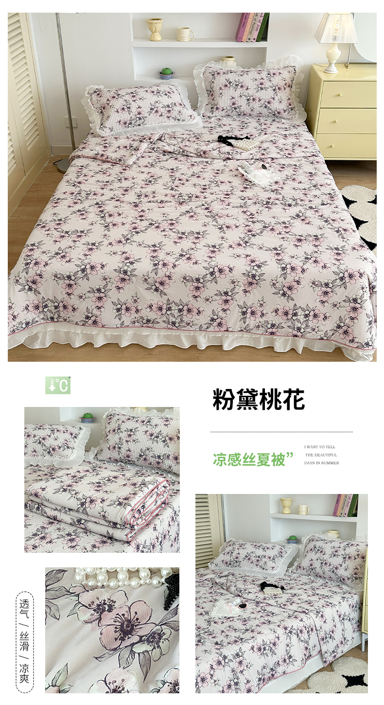 商品名称:昔可家纺 2024新款凉感冰皮床盖和同款夏被 粉黛桃花