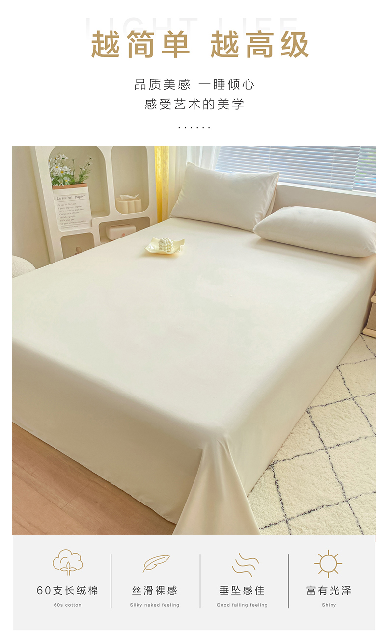 暖季 2025新款40支全棉纯色床单 奶昔白