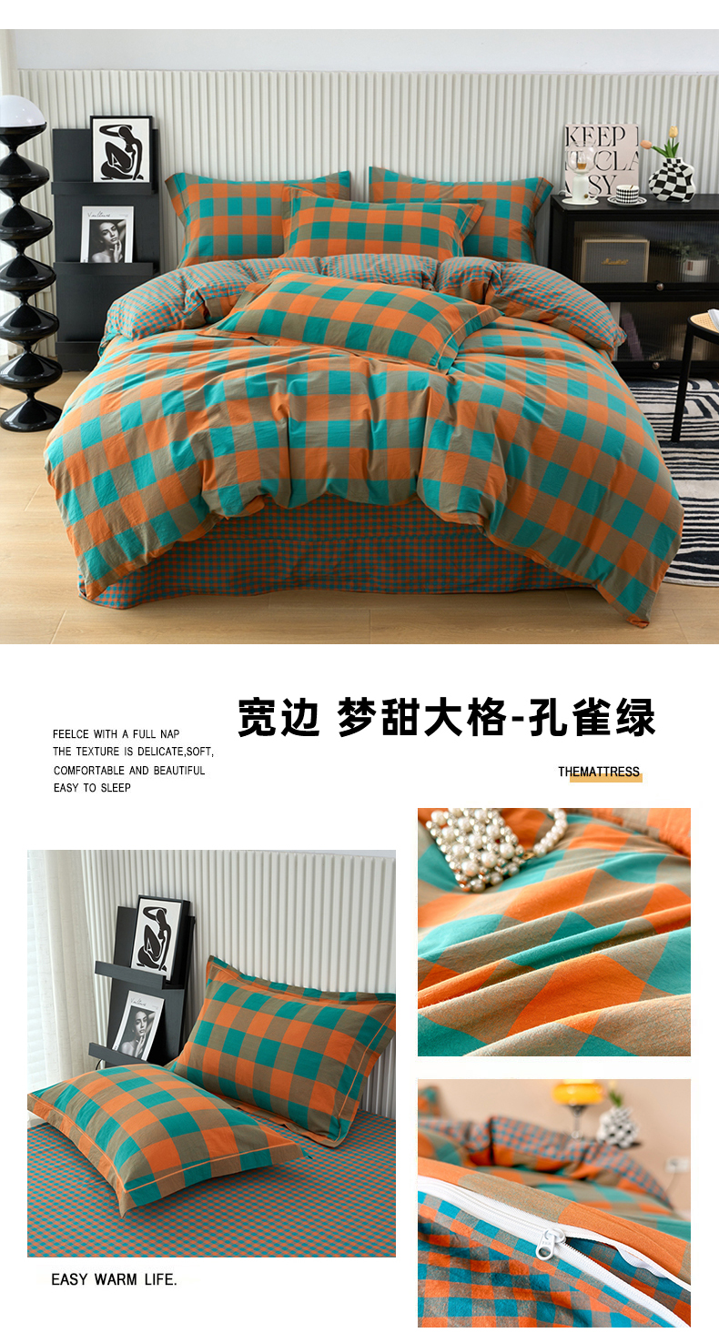 当前位置: 91家纺网 > 商品网购 > 床品套件 > 四件套 > 水洗棉四件套 > 三沁家居 2024新款格子色织全棉水洗棉四件套 宽边 梦甜大格-孔雀绿