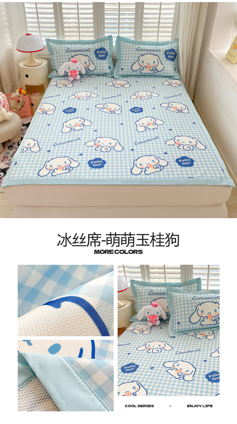 桃子家居 2024新款A类三丽鸥授权数码印花中分子1200D凉感冰丝宽边凉感软席详情 冰丝席-萌萌玉桂狗