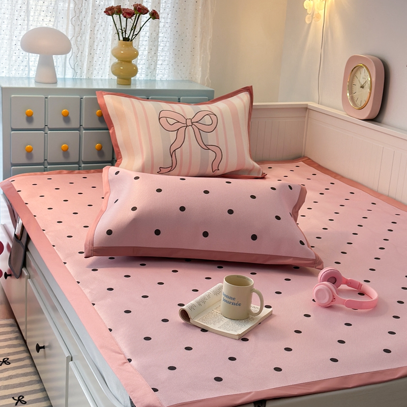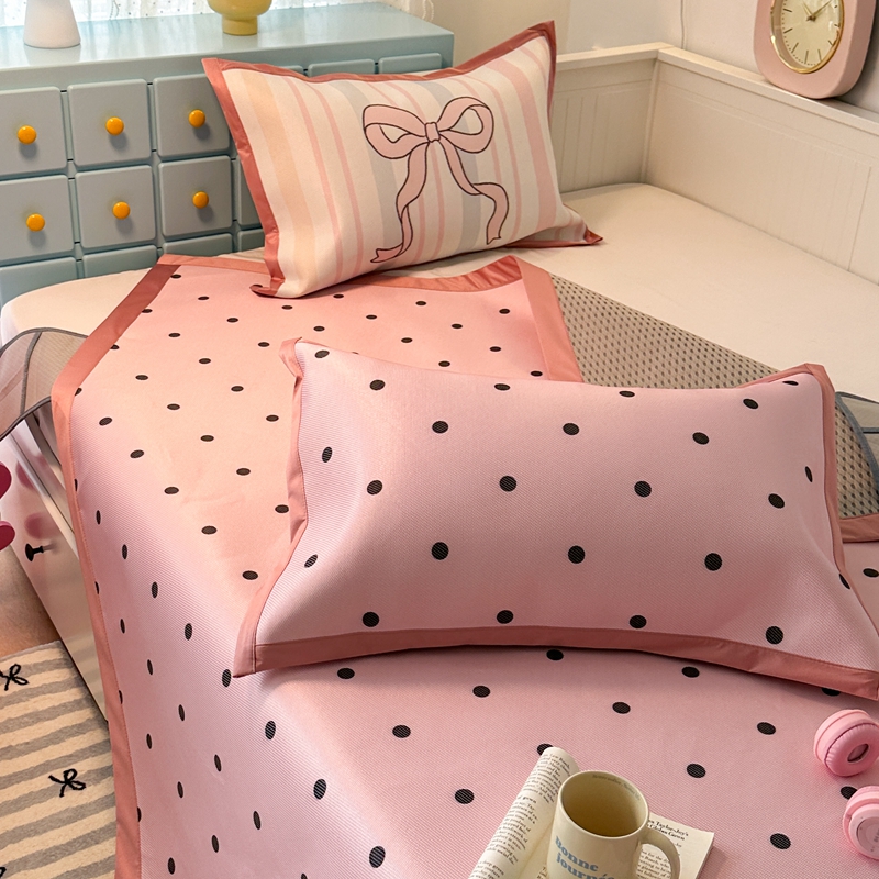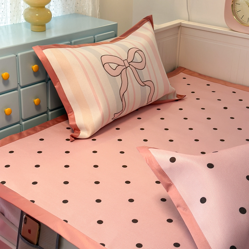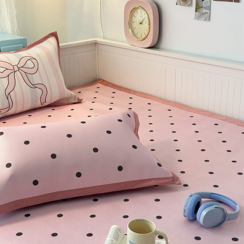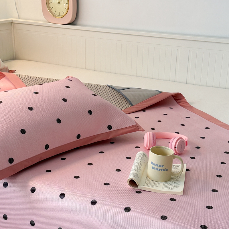 昔可家纺 2024新款高端数码印花养生冰藤席波点大版枕套系列 粉波点