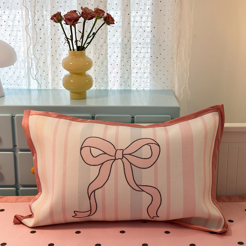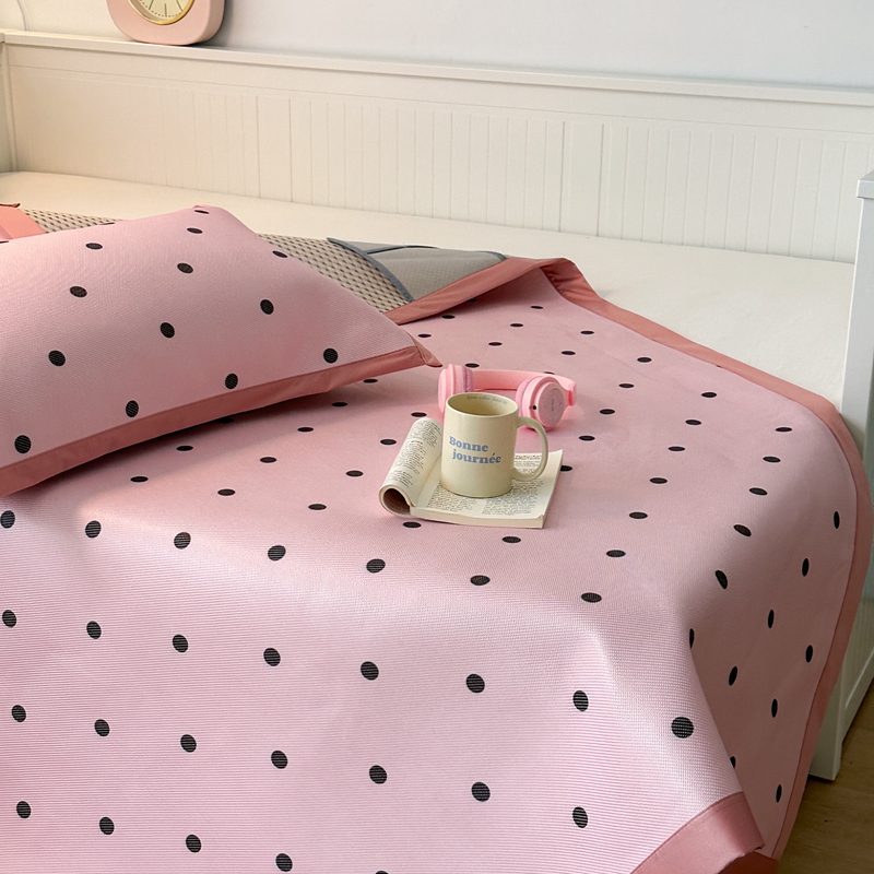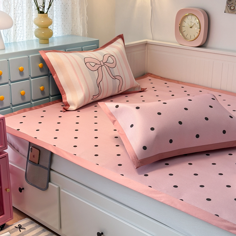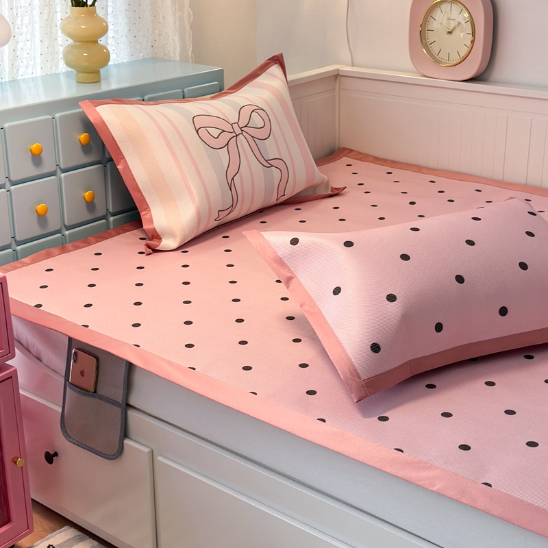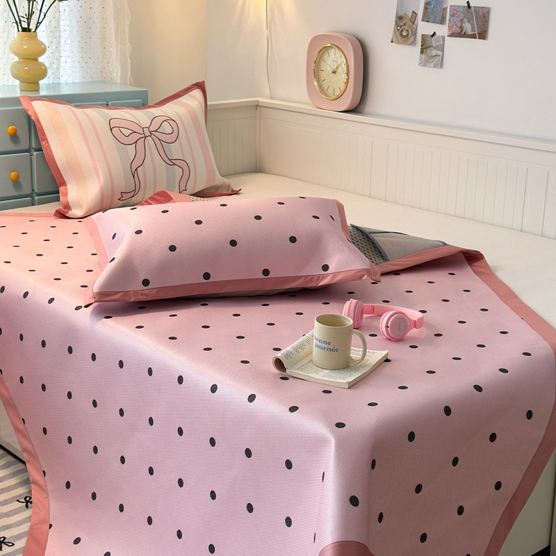 昔可家纺 2024新款高端数码印花养生冰藤席波点大版枕套系列 粉波点