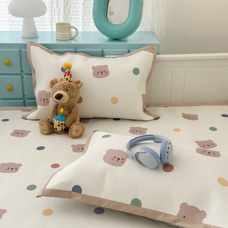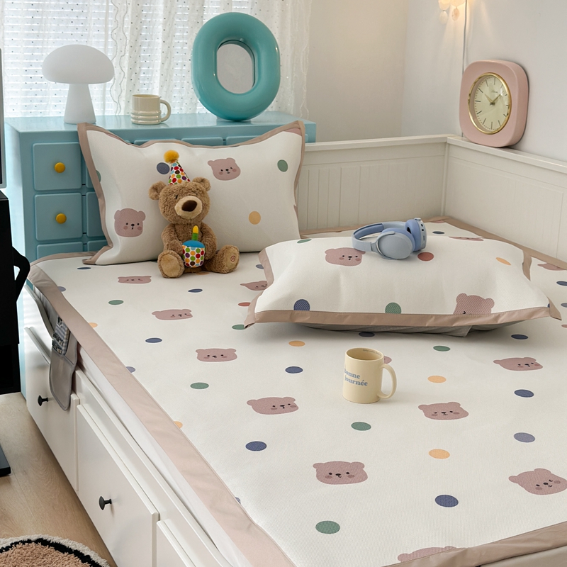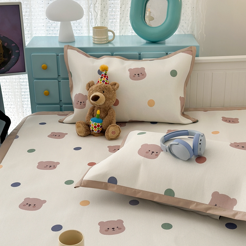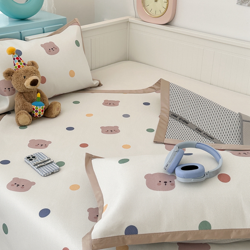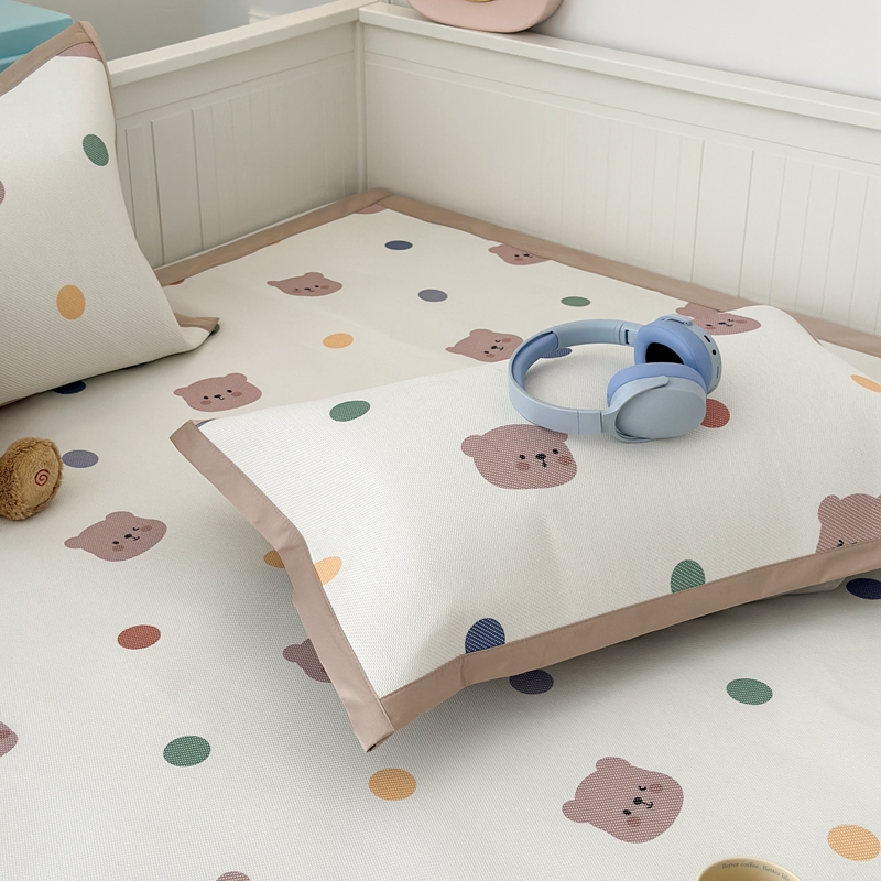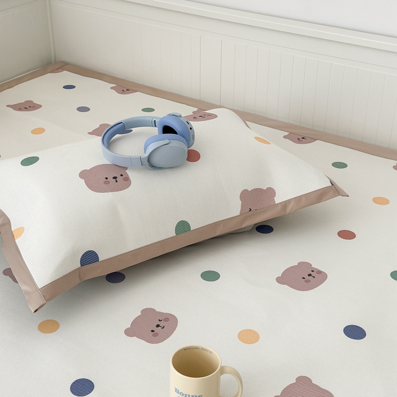 昔可家纺 2024新款高端数码印花养生冰藤席--卡通系列 彩色波点熊