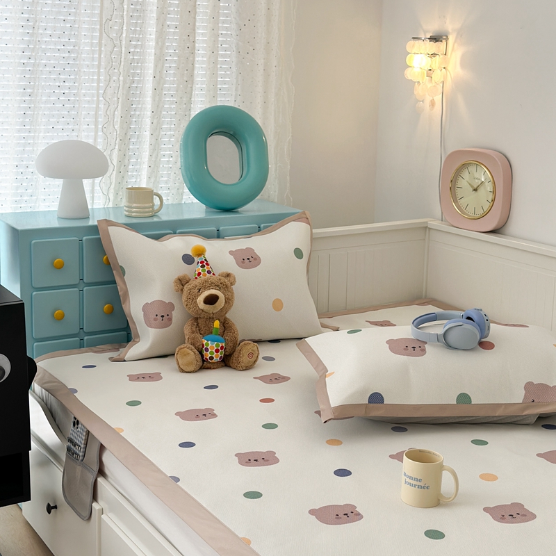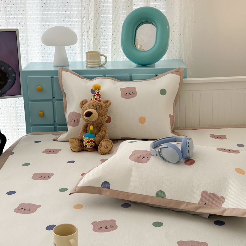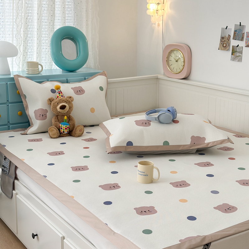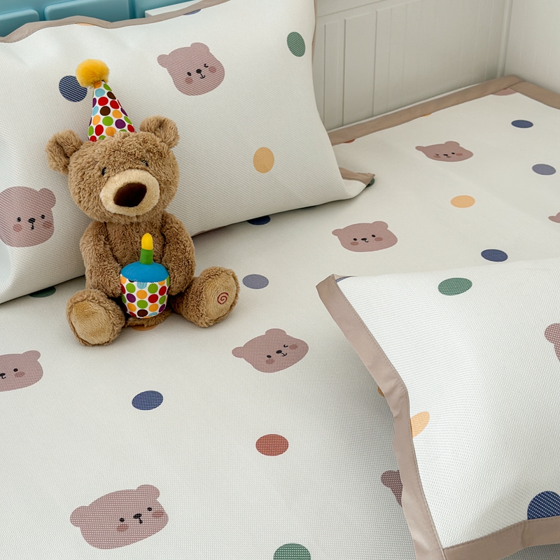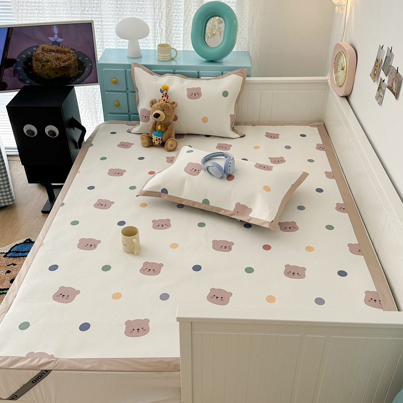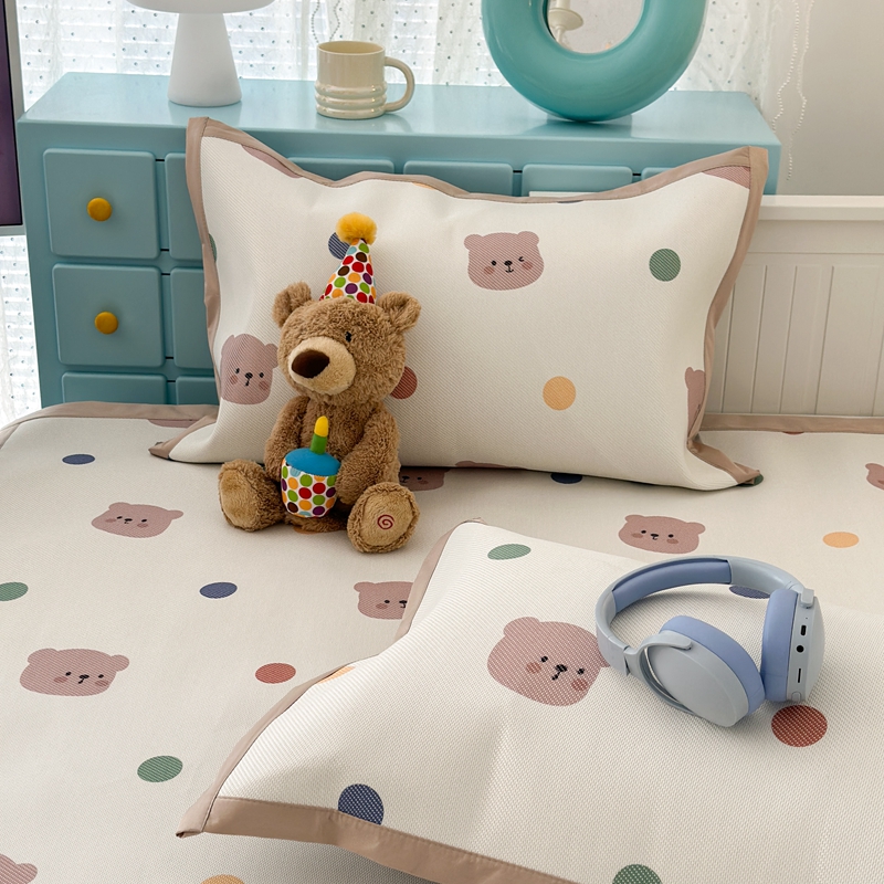 昔可家纺 2024新款高端数码印花养生冰藤席--卡通系列 彩色波点熊