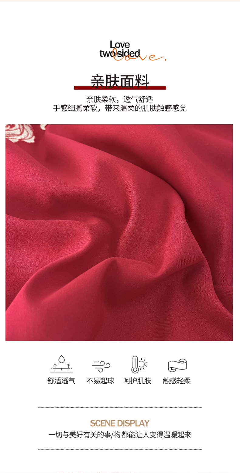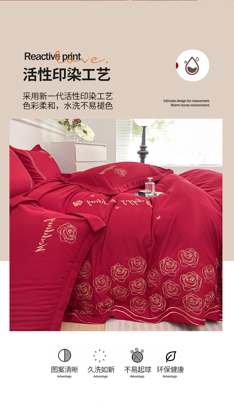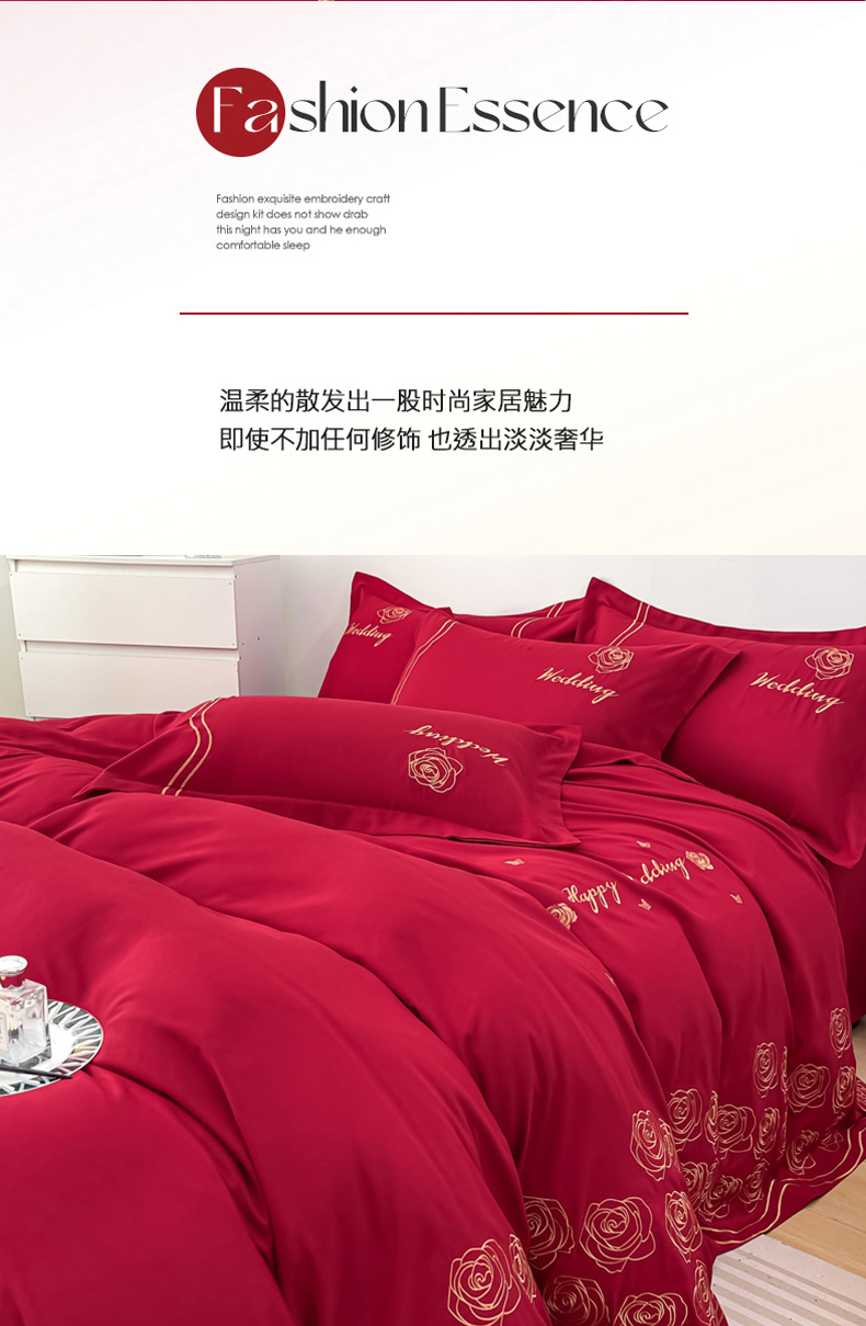 栩裕纺织 2025新款亲肤刺绣绣花婚庆四件套 十里红妆