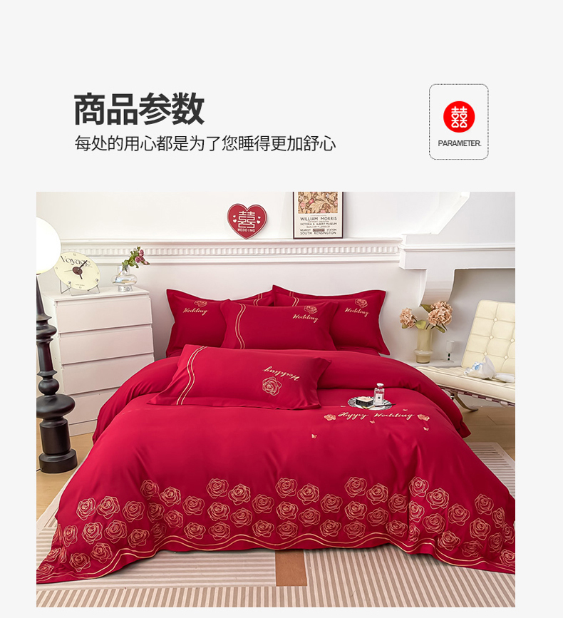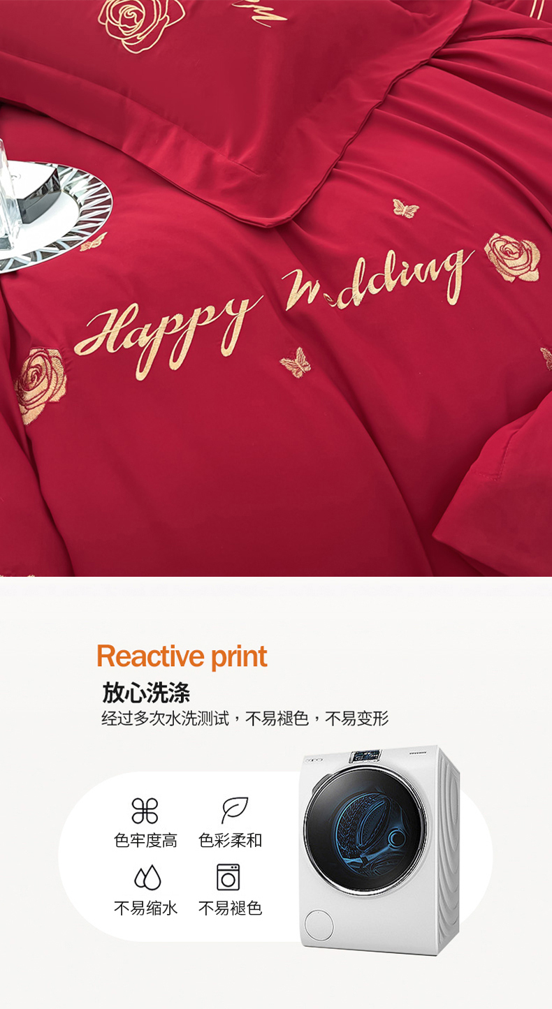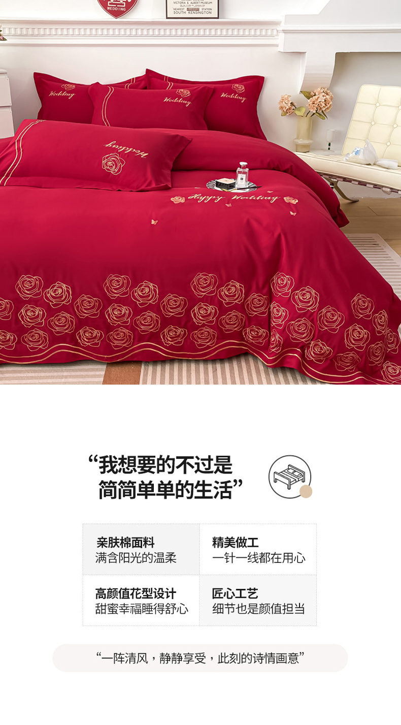 商品名称:栩裕纺织 2025新款亲肤刺绣绣花婚庆四件套 十里红妆