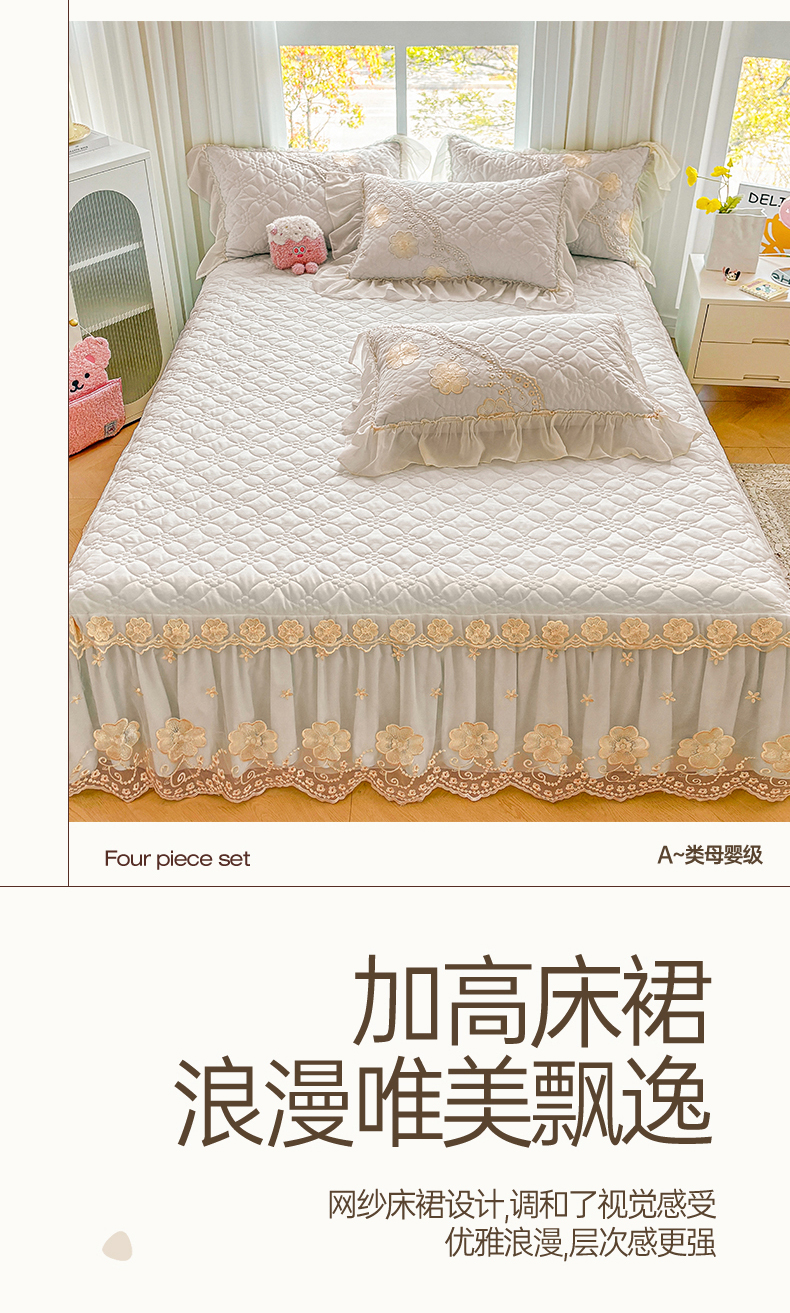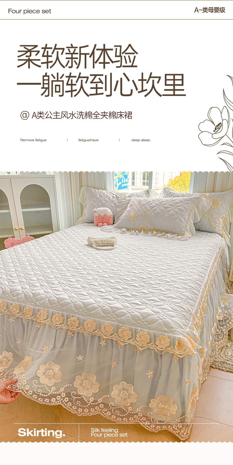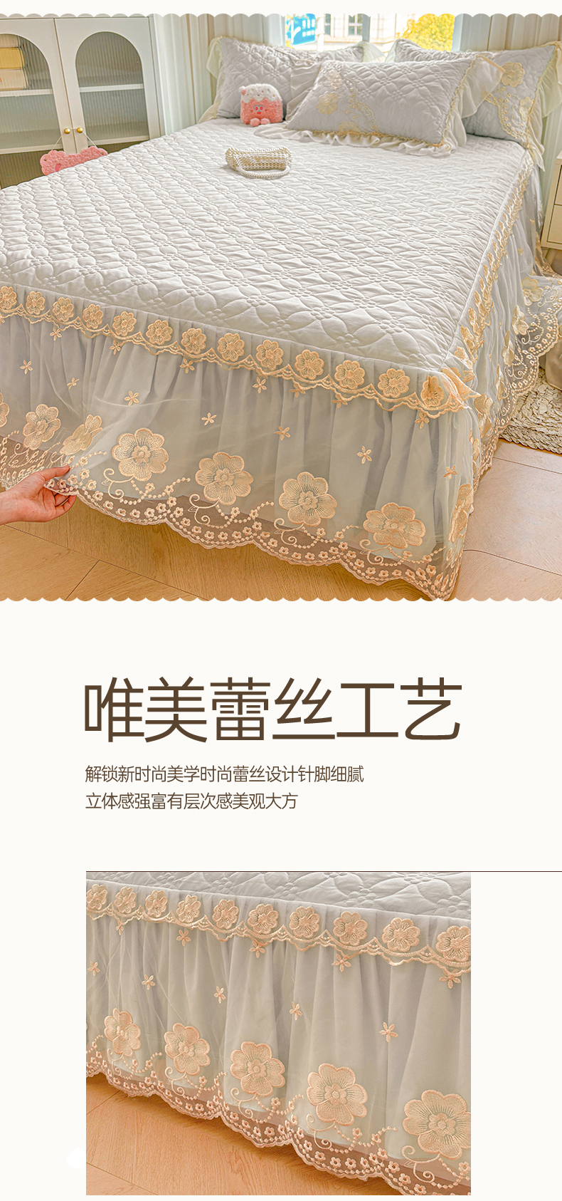 商品名称:罗艺轩 2024新款公主风水洗棉夹棉单床裙-浪漫满屋床 浪漫满屋-迷雾灰