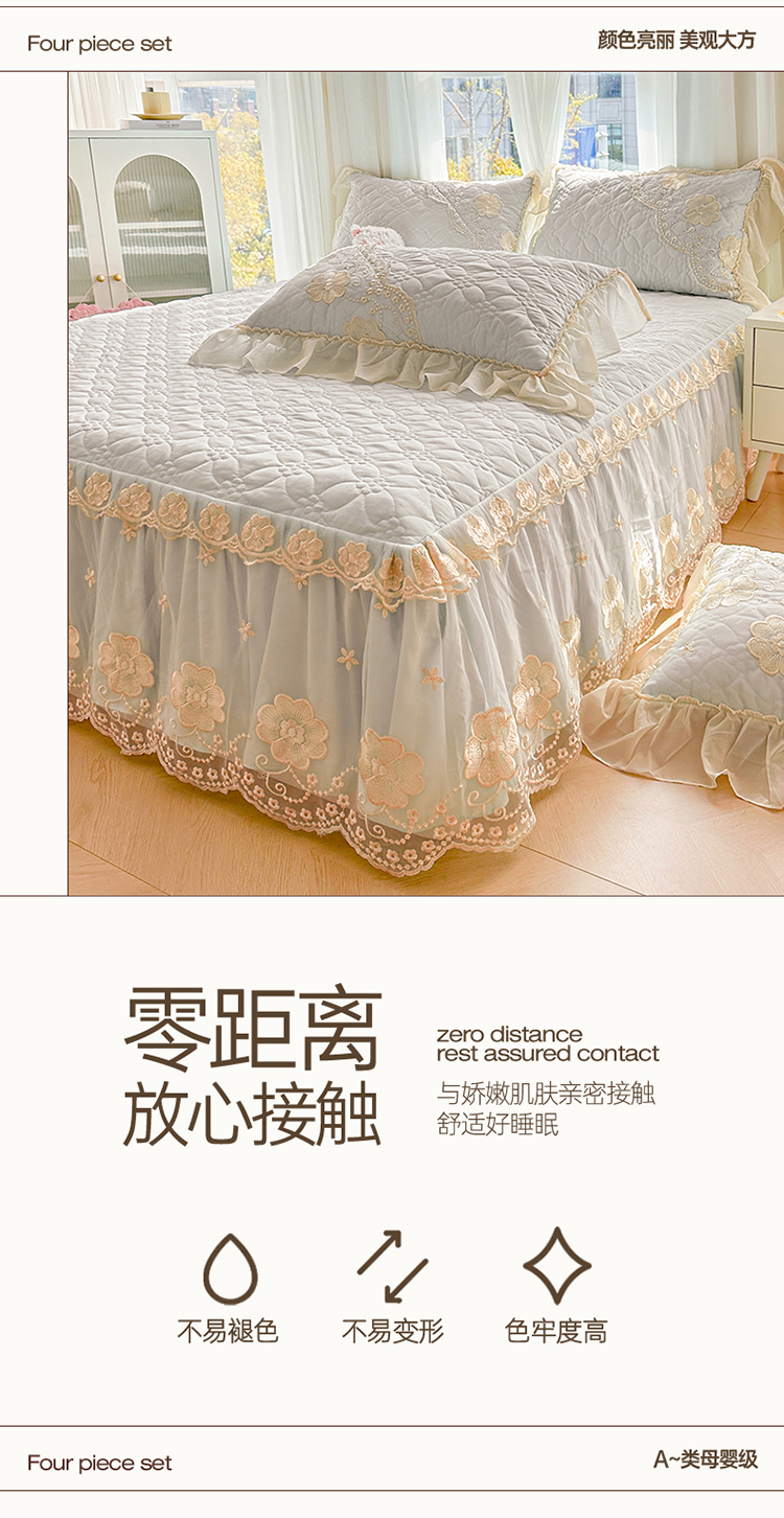 (总)罗艺轩 2024新款色织蕾丝夹棉床裙三件套-皇家贵族,皇家贵族-宝石蓝,皇家贵族-黛绿色,皇家贵族-魅力紫,皇家贵族-奶茶色,皇家贵族-珊瑚红,皇家贵族-石青色,皇家贵族-香妃粉,皇家贵族-烟熏灰