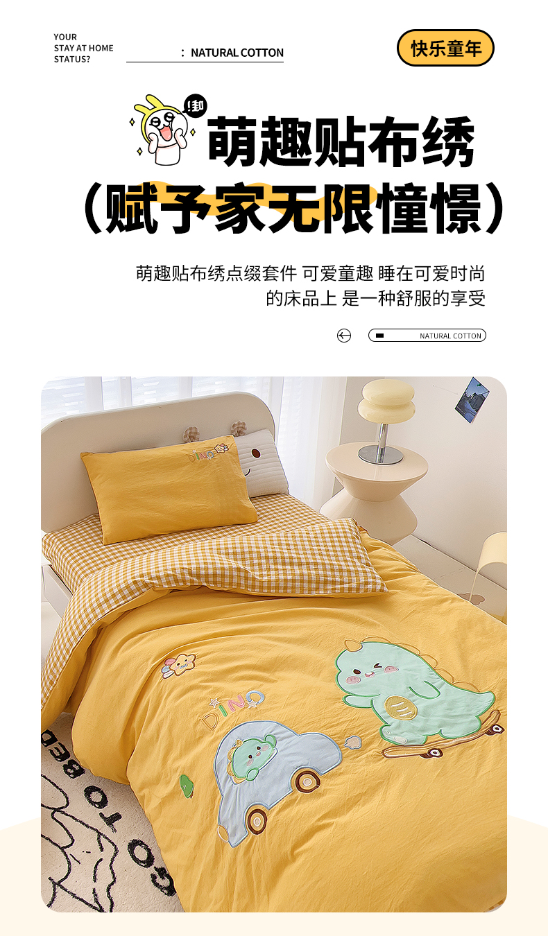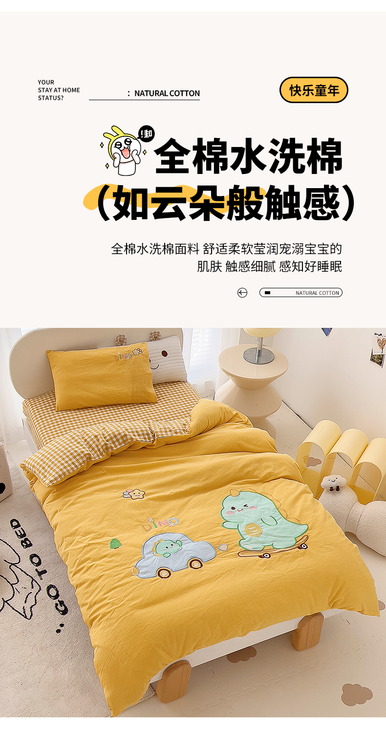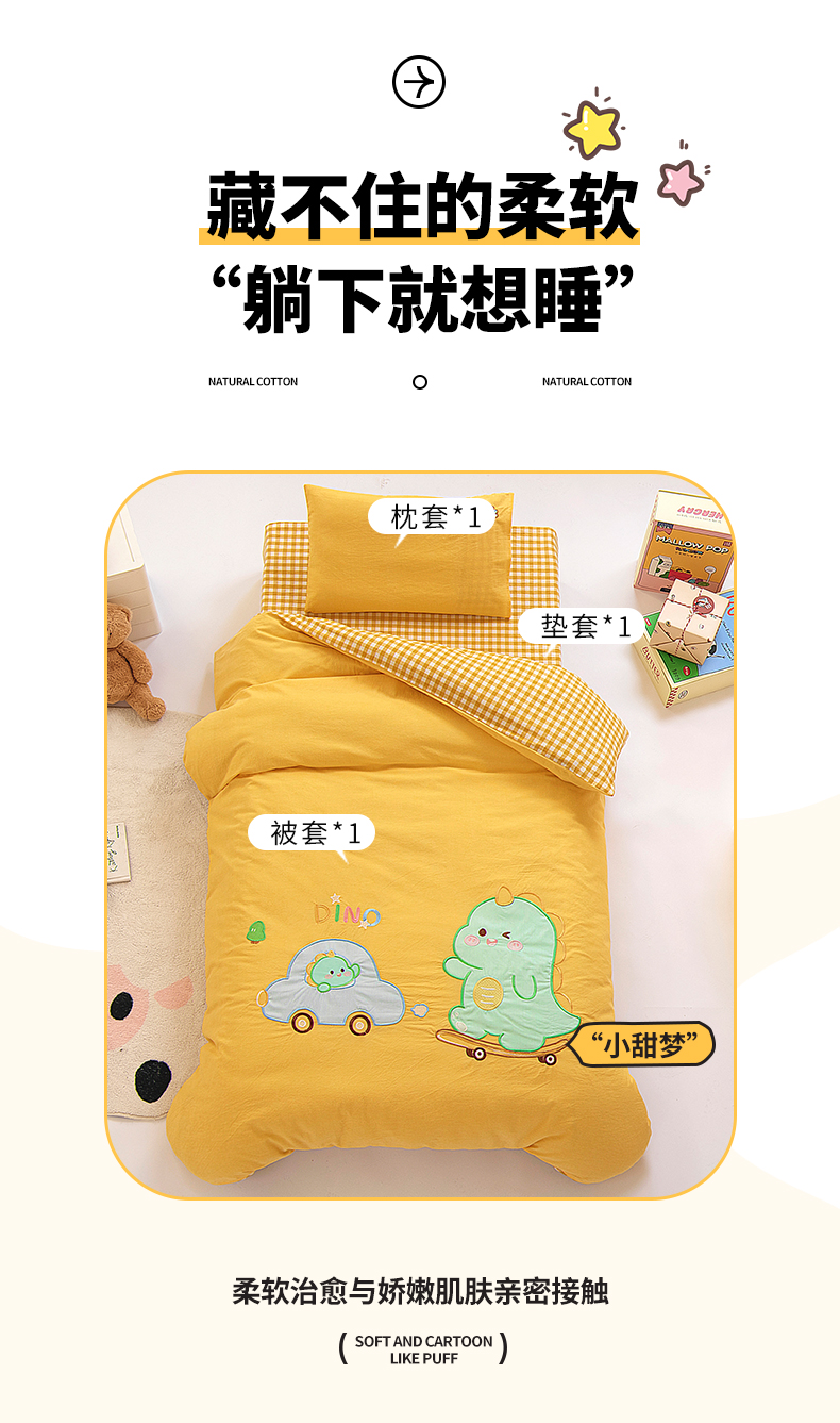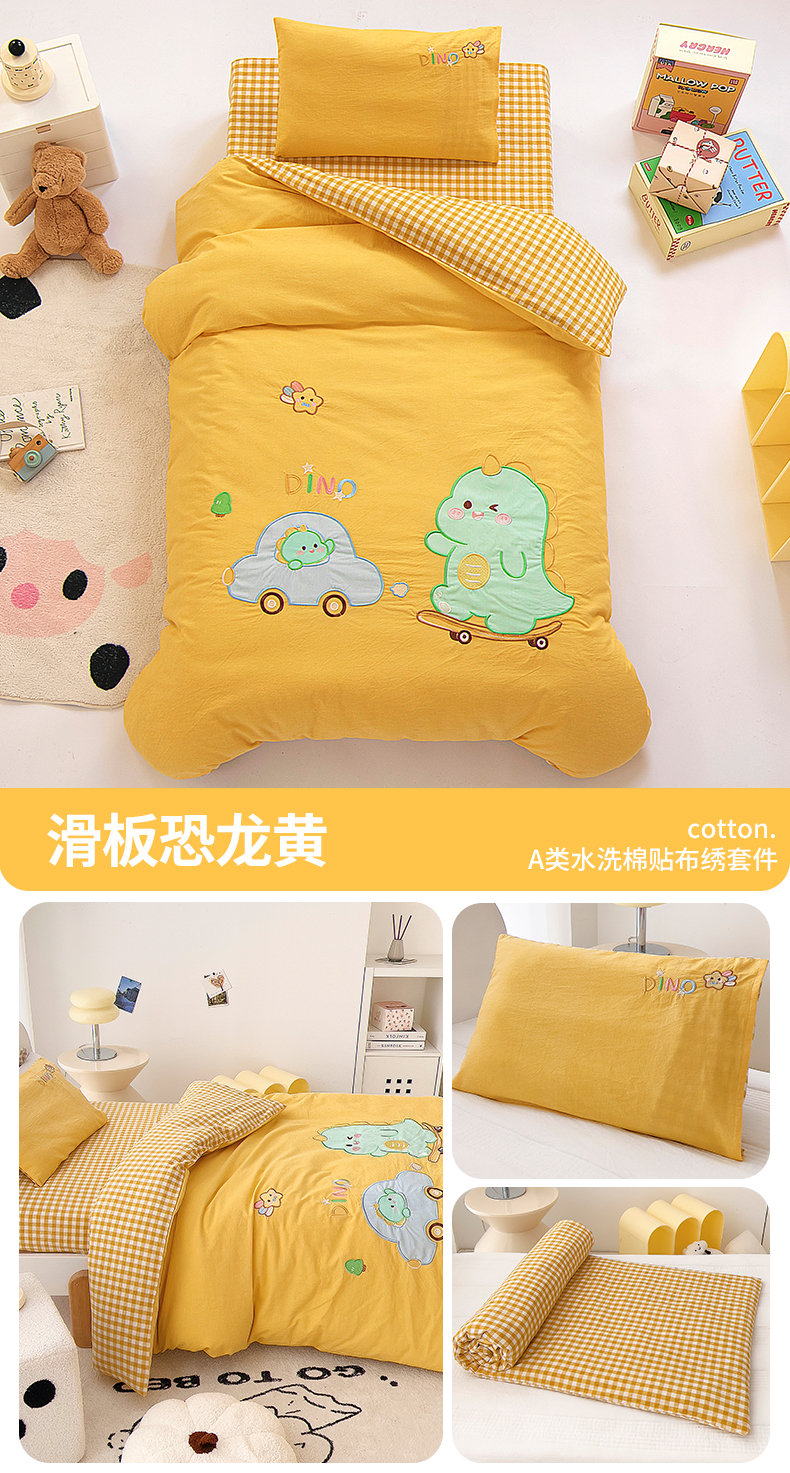 当前位置: 91家纺网 > 商品网购 > 床品套件 > 三件套 > 鱼宝 2025新款全棉水洗棉绣花幼儿园套件 滑板恐龙黄