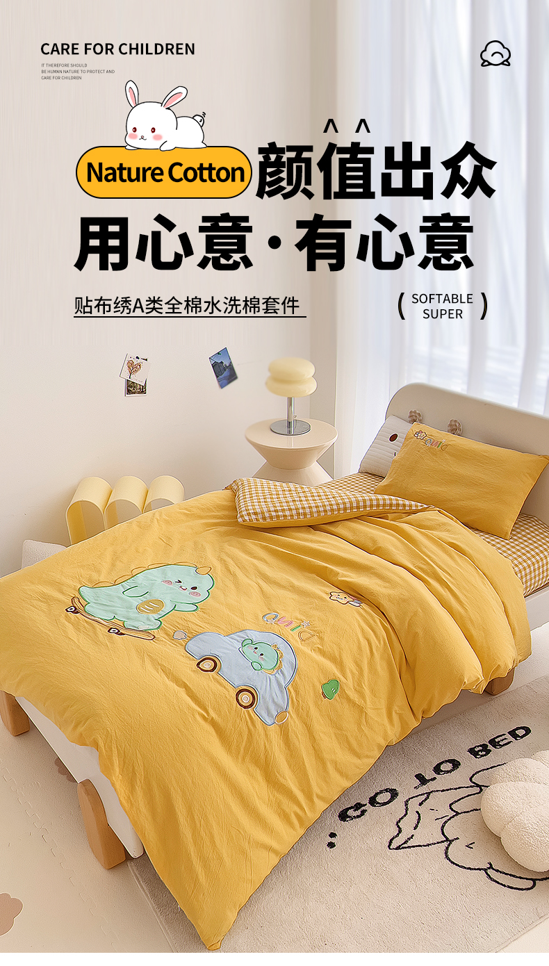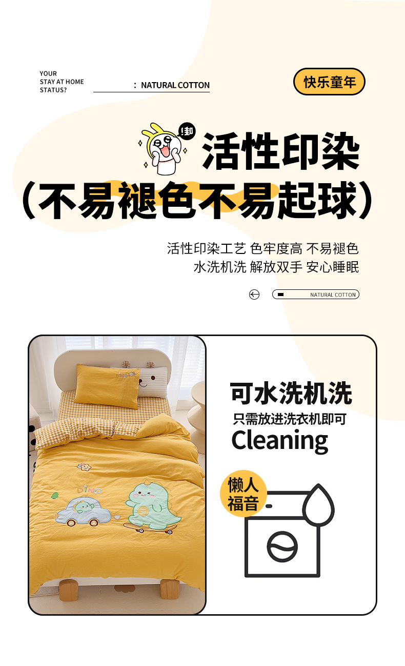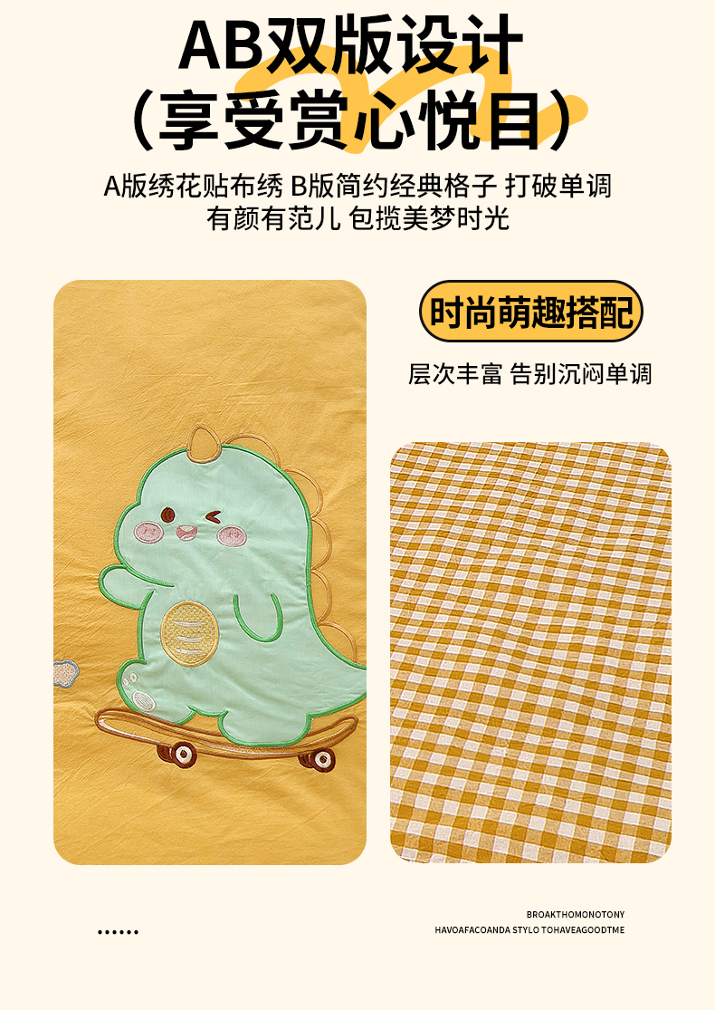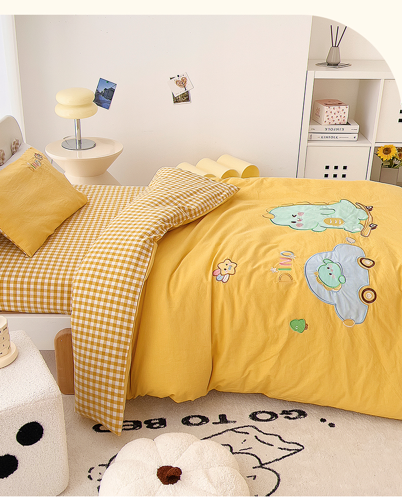 当前位置: 91家纺网 > 商品网购 > 床品套件 > 三件套 > 鱼宝 2025新款全棉水洗棉绣花幼儿园套件 滑板恐龙黄