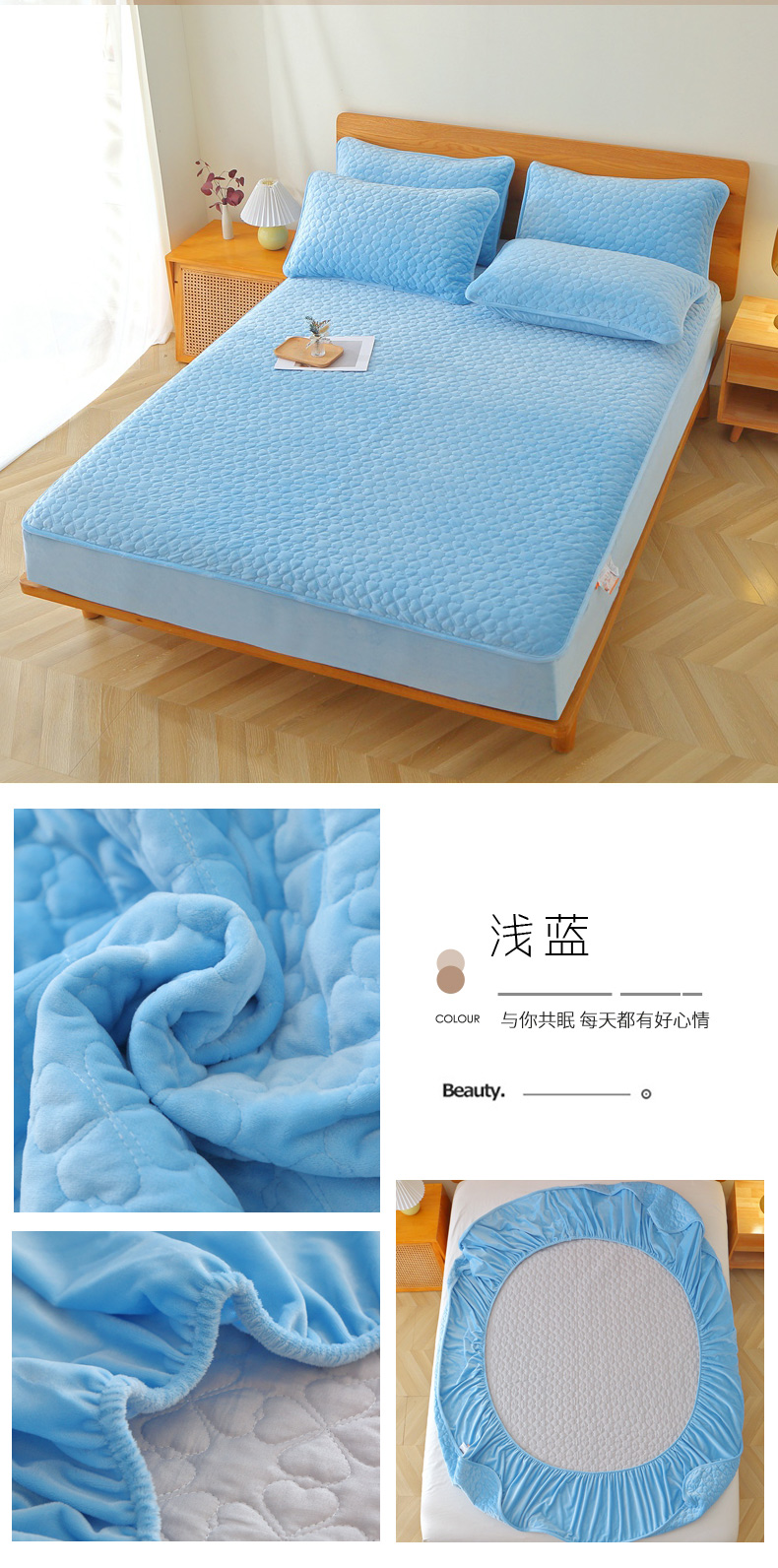 • 91家纺网 家纺一手货源 找家纺 芸锦豪 2024新款宝宝绒夹棉刺绣床笠 浅蓝