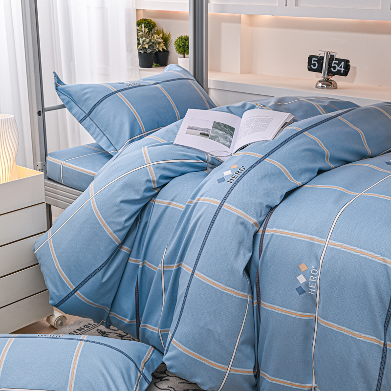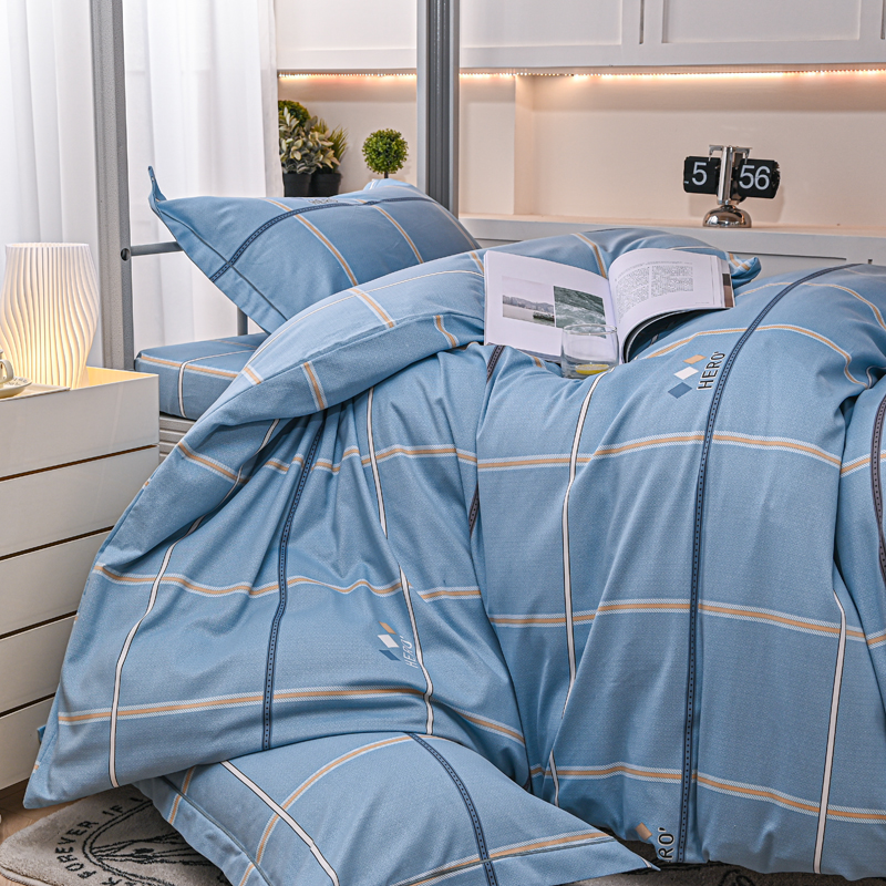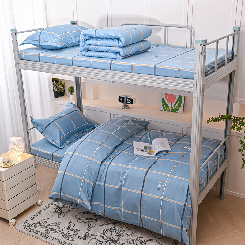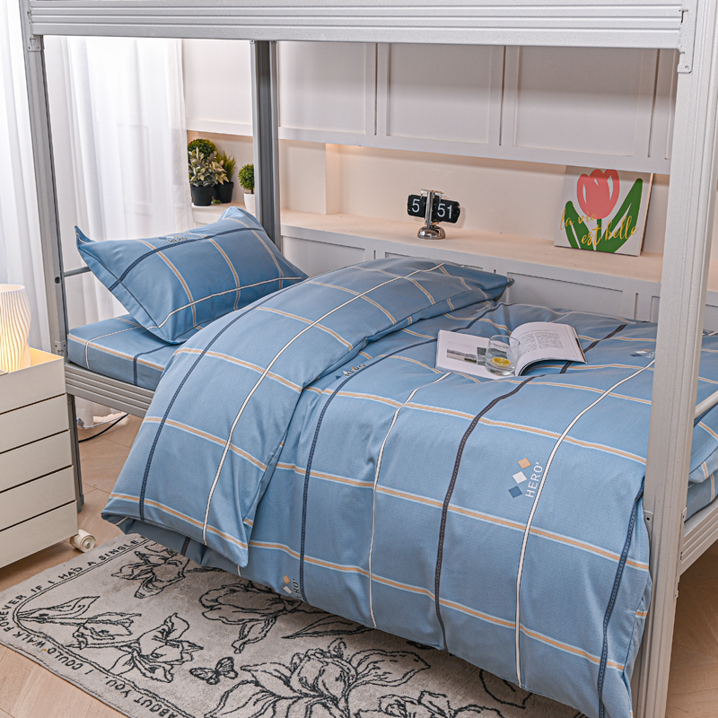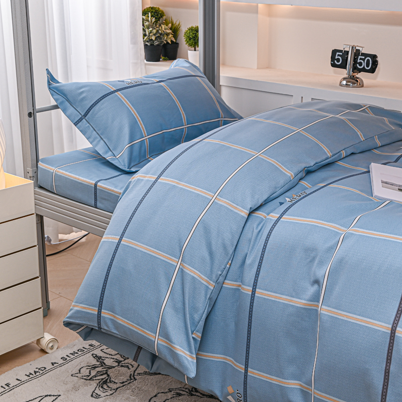 商品名称:喜四方 2024新款全棉磨毛印花学生三件套 蓝格