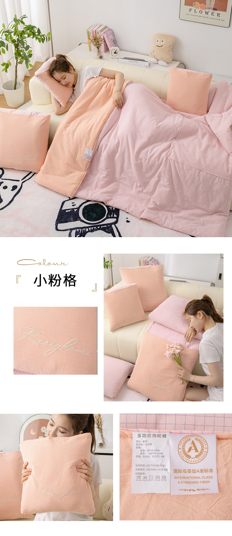 商品名称:吉利家居 2024新款A类全棉多功能口袋抱枕被 小粉格