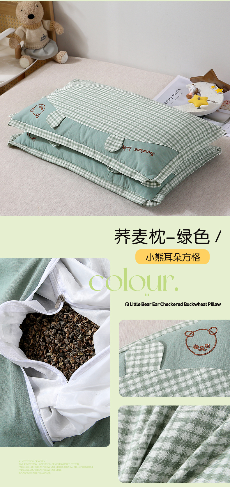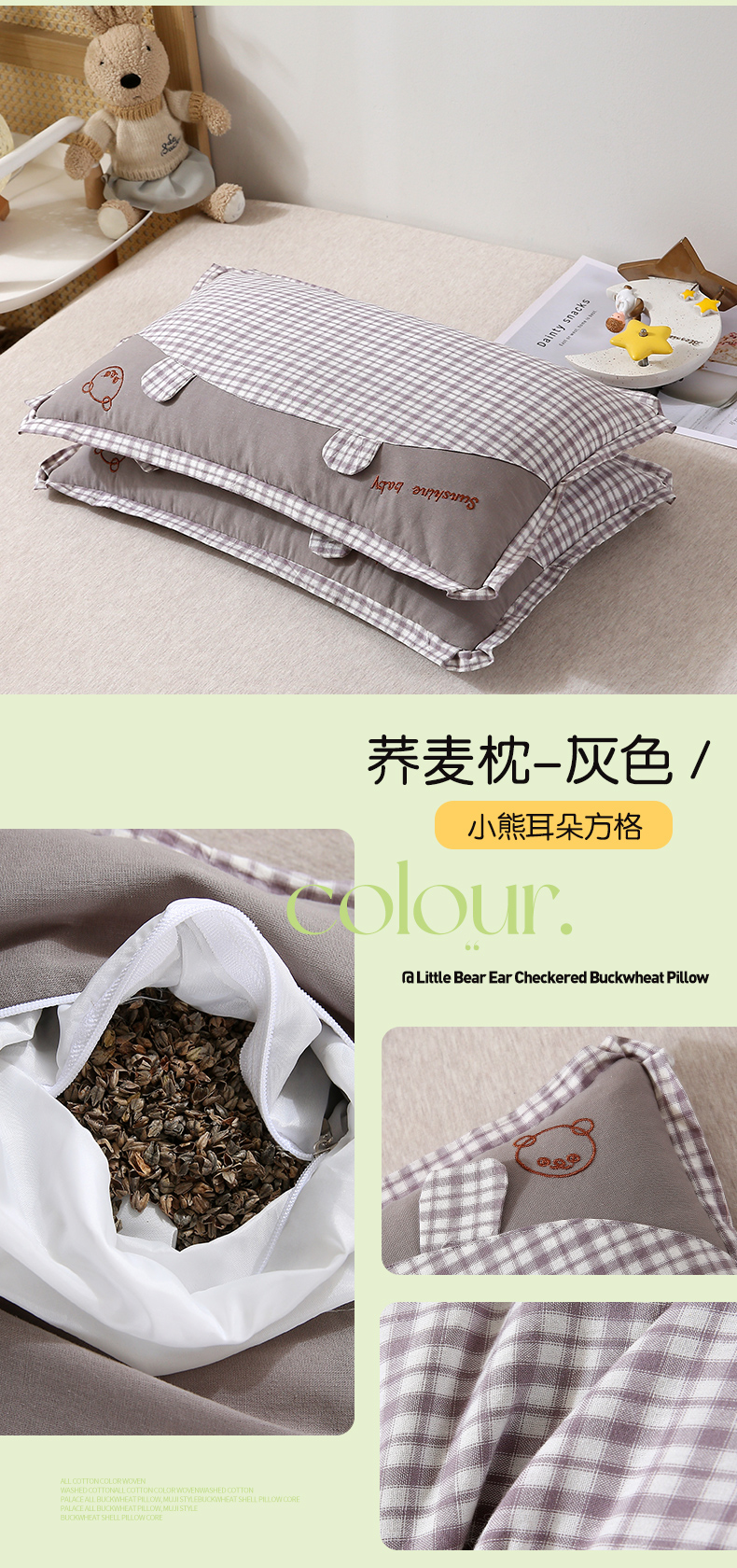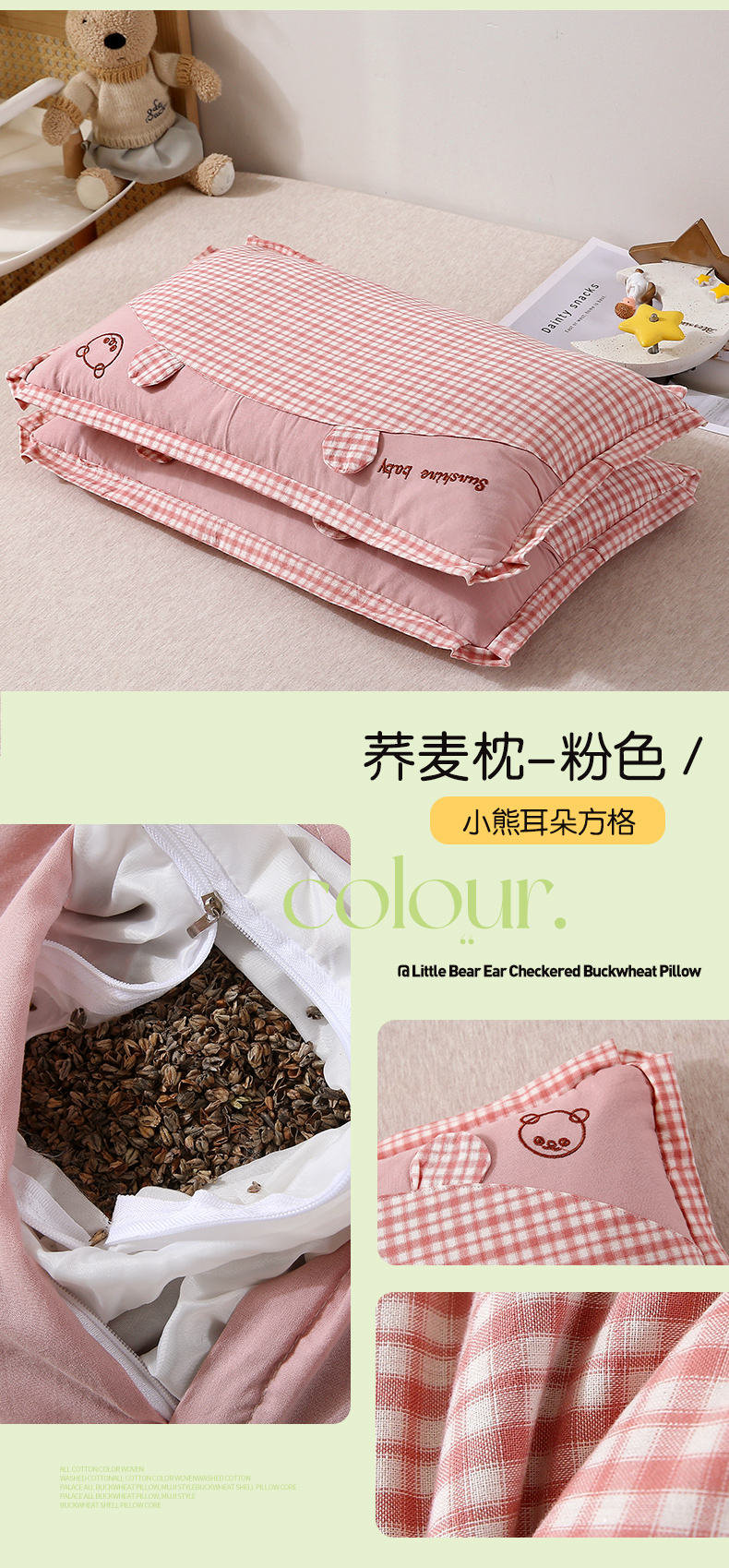 当前位置: 91家纺网 > 商品网购 > 枕头/枕芯/保健枕/颈椎枕 > 普通枕芯 > 梦叶草 2024新款全棉水洗棉儿童枕头纯荞麦枕芯小熊格子30×50cm荞麦枕 小熊耳朵方格荞麦枕-粉色30*50/只