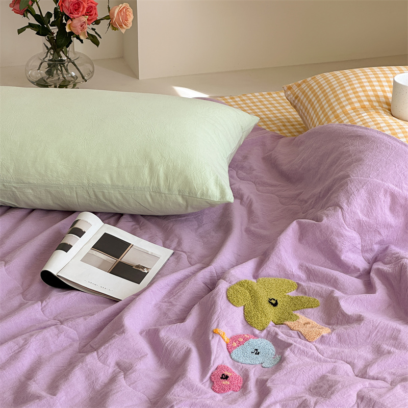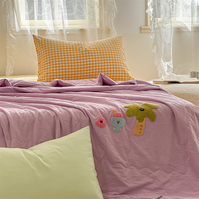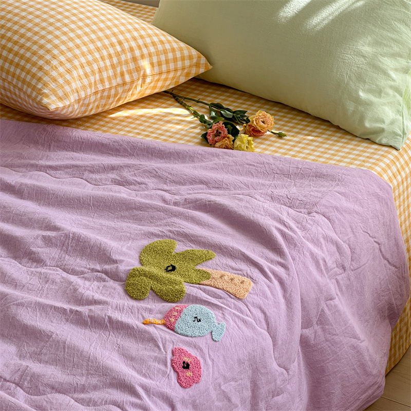 洋铭区(原狠狠爱) 2024新款毛巾绣水洗棉夏被四件套 芋香小树