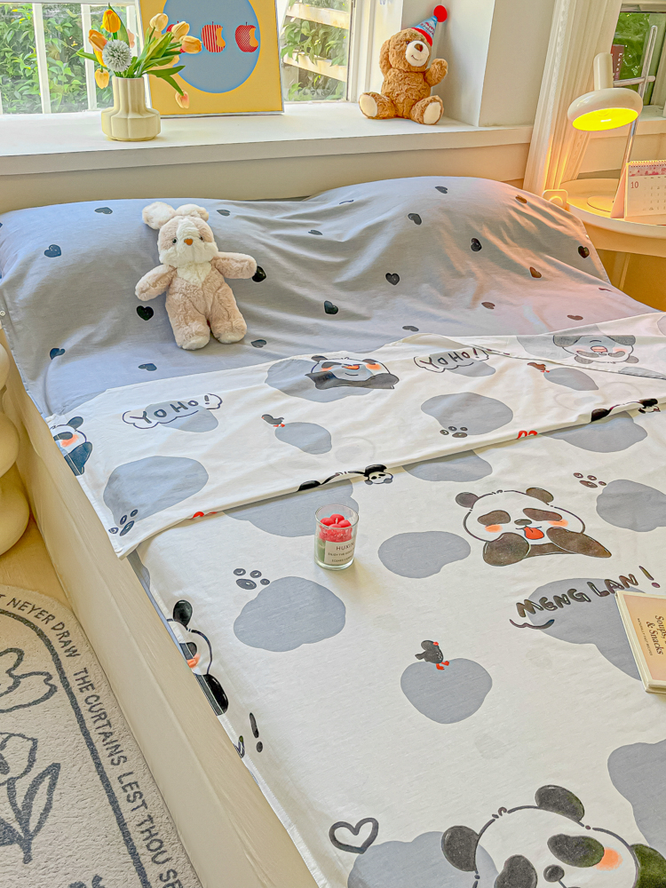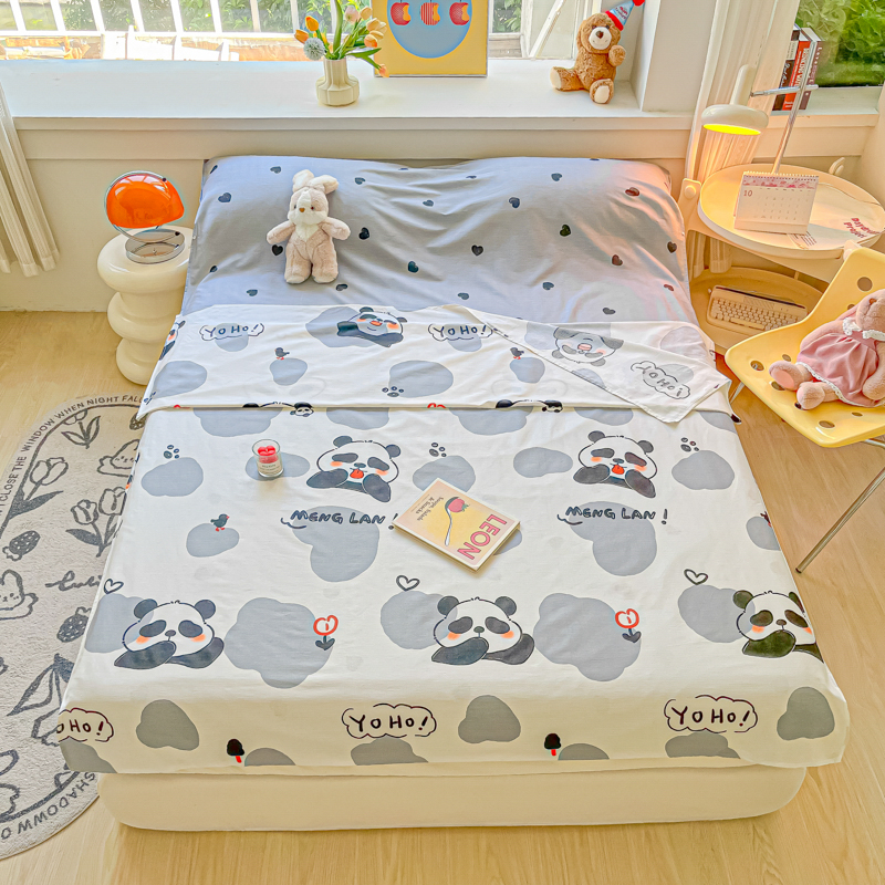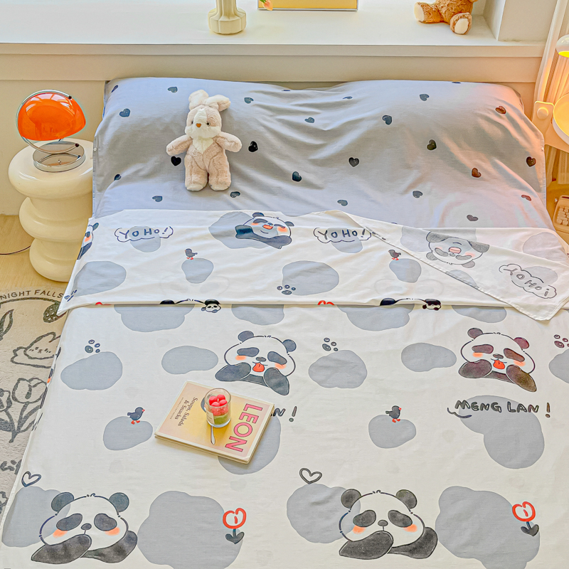 柒星睡袋 2024新款全棉印花隔脏睡袋旅行睡袋 熊猫心心