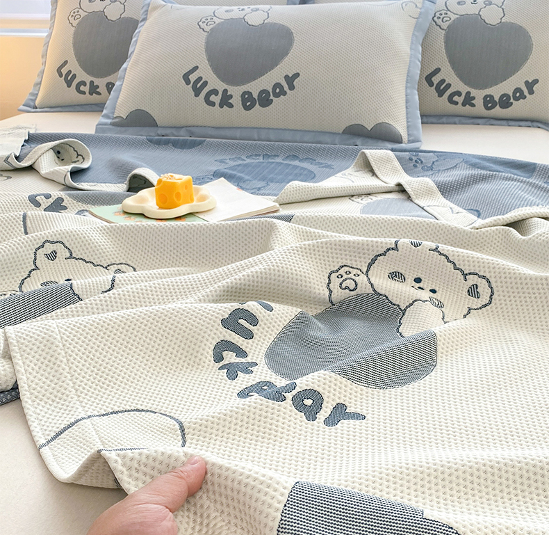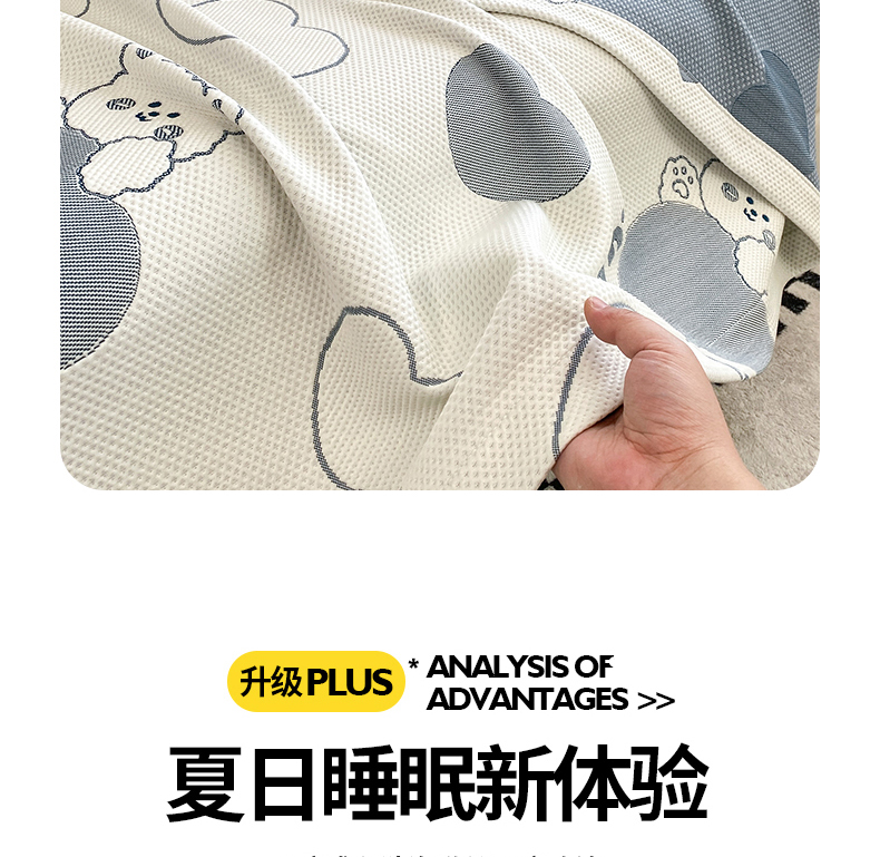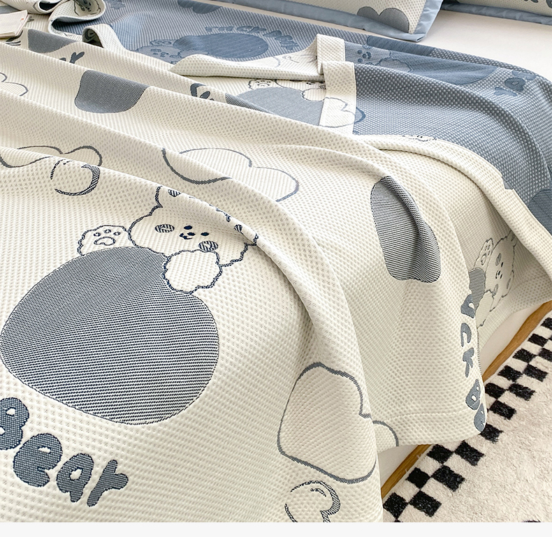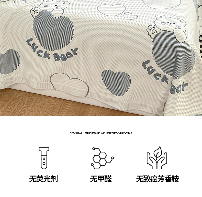 (总)典冠 2024新款A类凉感华夫格竹纤维冷感毯毛巾被,中灰,兔仔白,卡其,咖兔子,天兰,奶白,彩色煤球蓝,彼得兔庄园,恐龙乐园黄,时尚字母灰,波波小熊灰,淡紫,花团锦簇,蝴蝶结