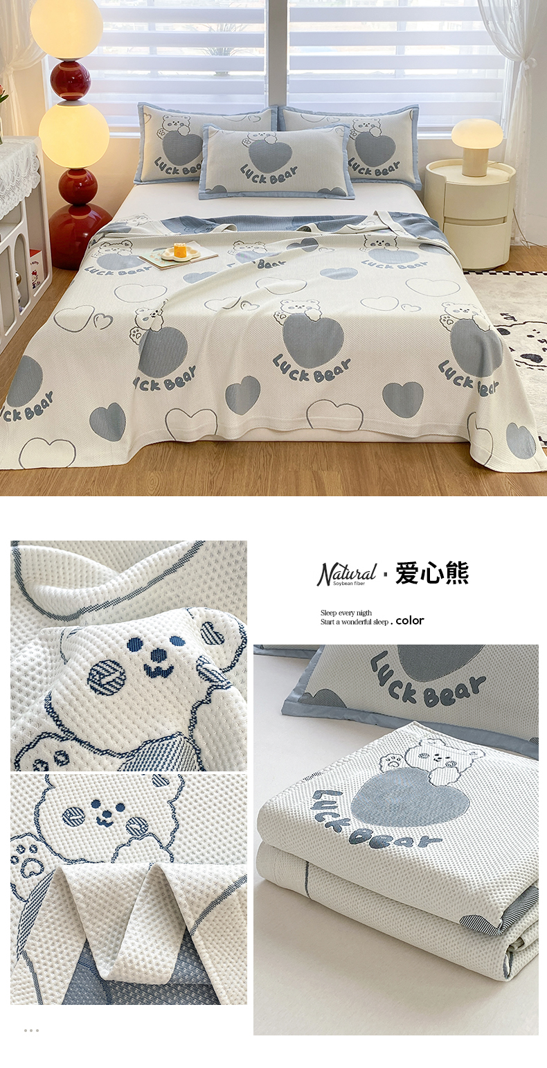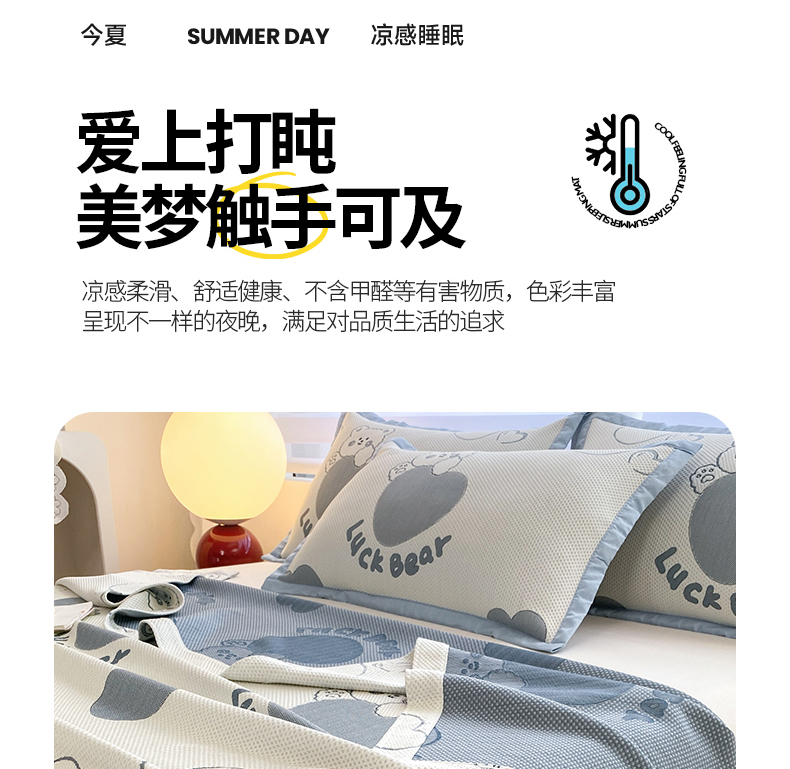 (总)典冠 2025新款PE乙纶冰豆豆凉席,格子纹,爱心熊,花朵蓝,花朵绿,开心灰,猫咪灰,煤球灰,煤球蓝,咩咩蓝,浅夏绿,浅夏玉,熊猫灰