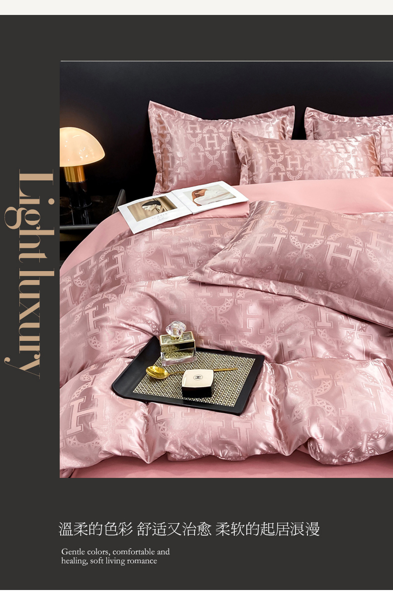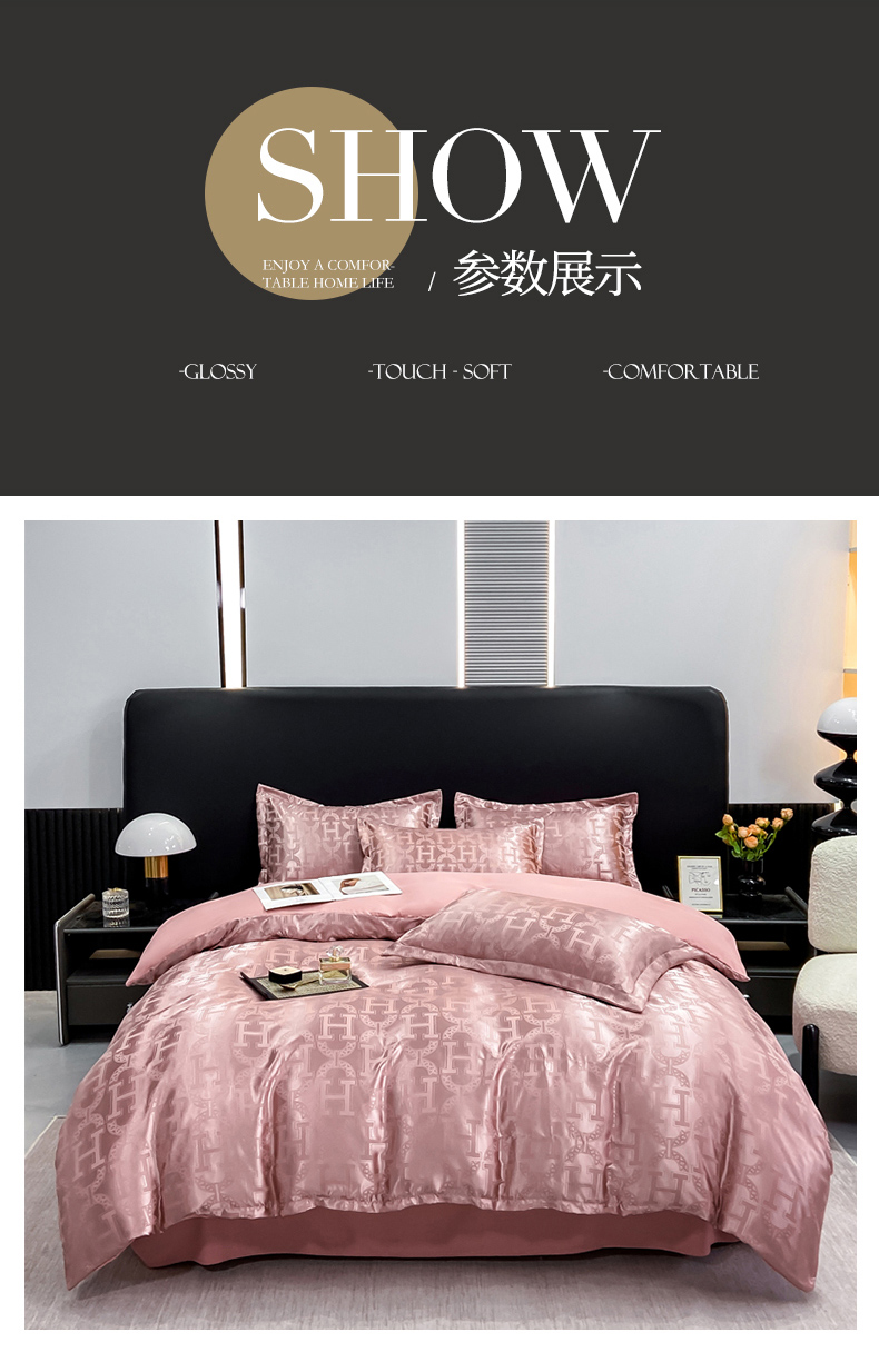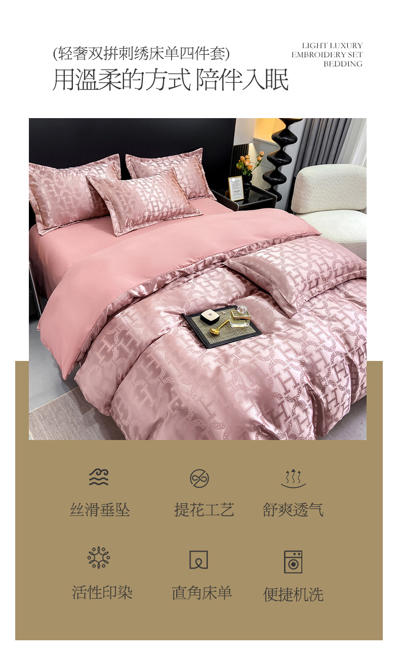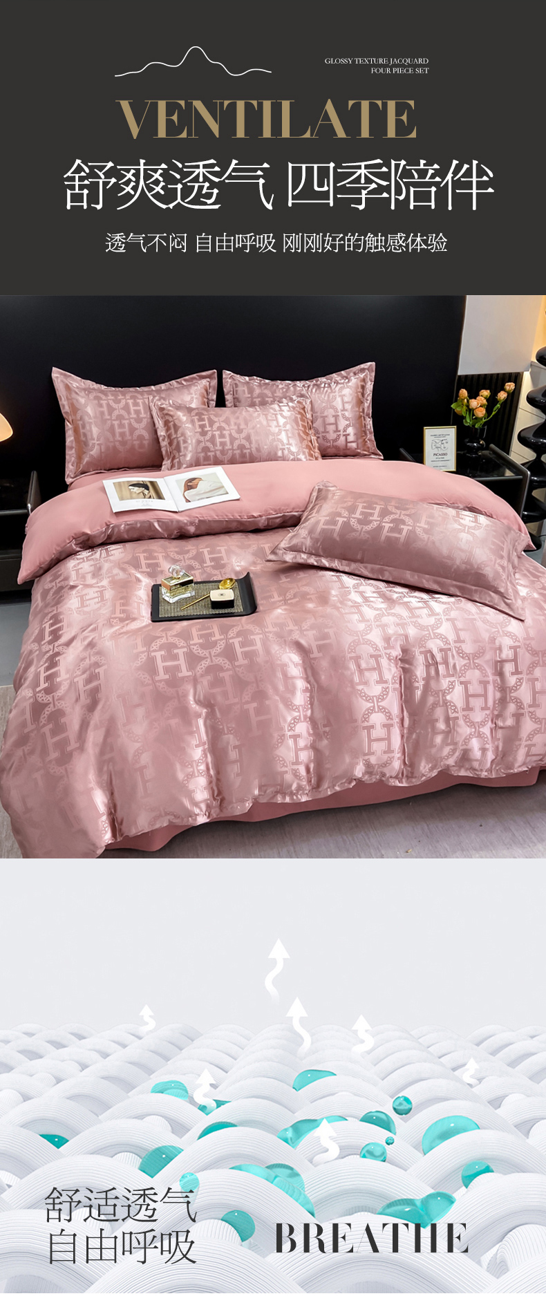 (总)莱欧纳家纺 2025新款提花夏被四件套,豆沙,灰色,香槟,紫色