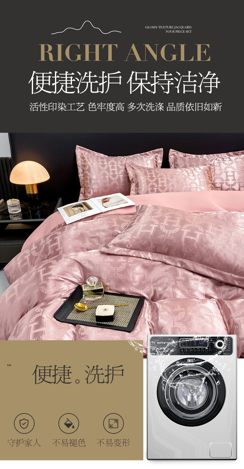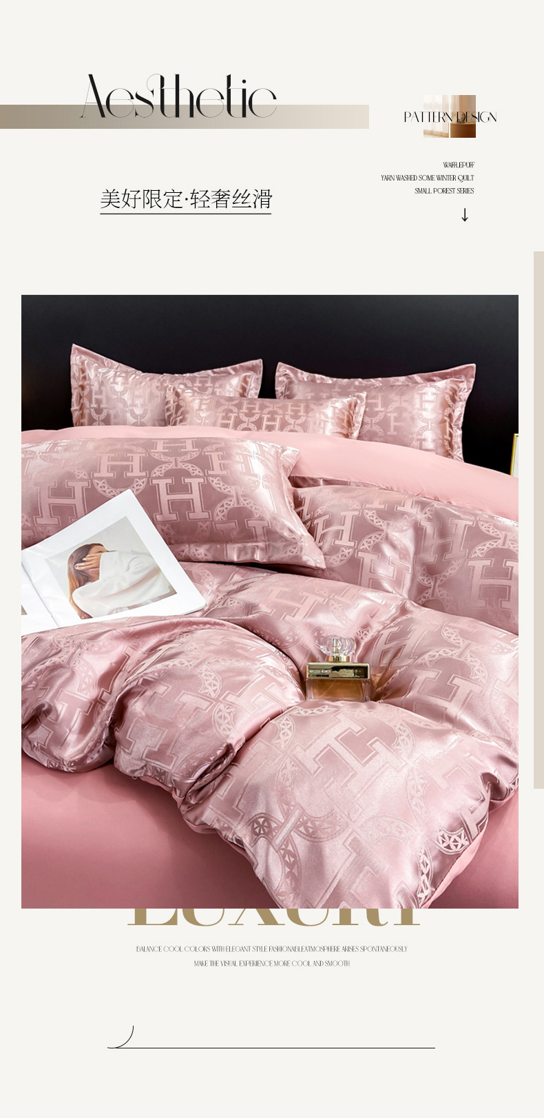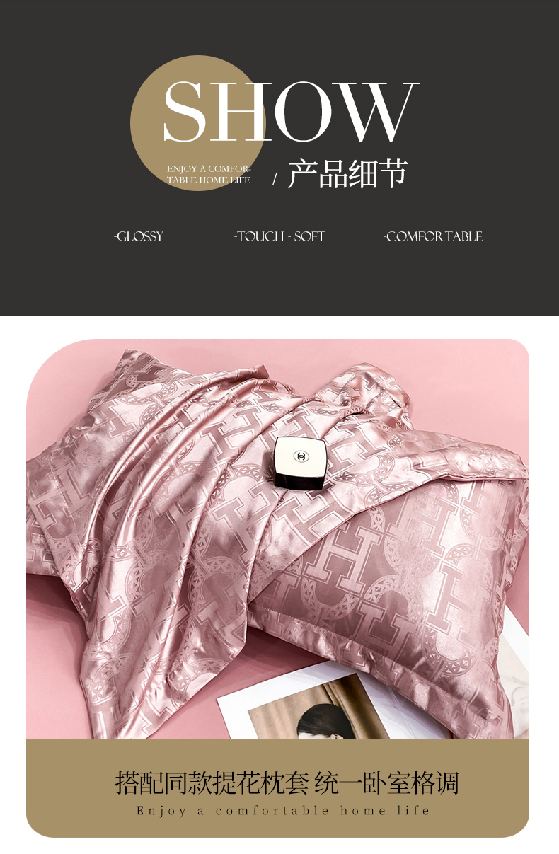 (总)莱欧纳家纺 2025新款提花夏被四件套,豆沙,灰色,香槟,紫色