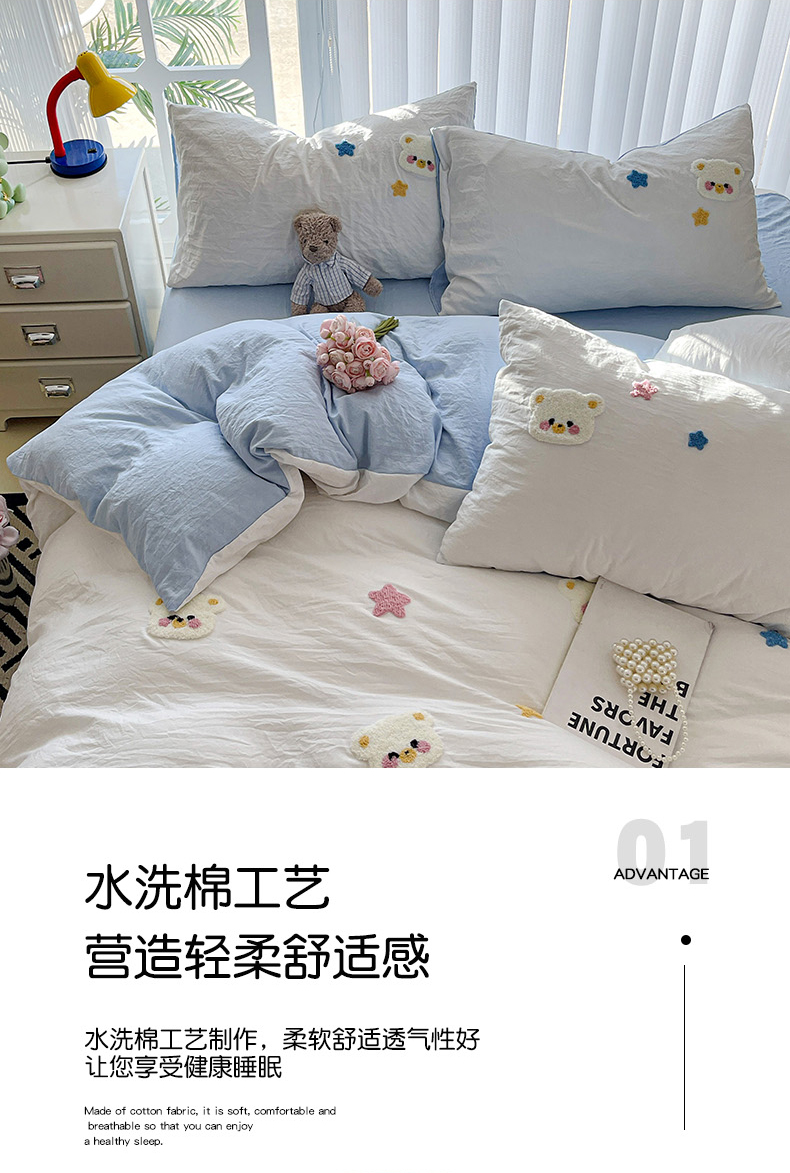 (总)韩巢家纺 2025新款水洗棉大花边被套四件套直播热销款学生宿舍被罩床单三件套(提供卖家秀),春日与玫瑰【大花边款】,繁花似梦【大花边款】,花时宇间【大花边款】,灰蒙小狗【大花边款】,久期诗朵-黄【大花边款】,可可腊肠犬【大花边款】,奶油樱桃【大花边款】,软糖猫【大花边款】,甜樱恋曲【大花边款】,温暖粉心【大花边款】,小花野-紫【大花边款】,小熊冰淇淋【大花边款】,星梦蝶结【大花边款】,幸运可爱兔【大花边款】,摘樱桃的小熊【大花边款】
