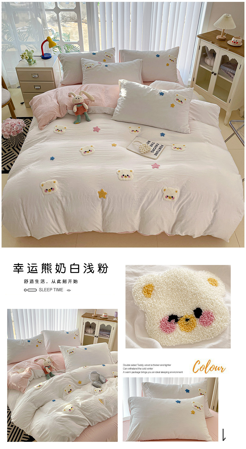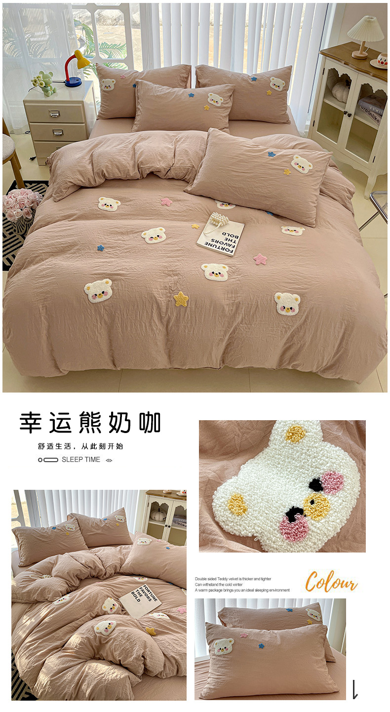 商品名称:(总)韩巢家纺 2024新款超柔水洗棉毛巾绣单件被套-幸运熊系列(提供精美卖家秀 )