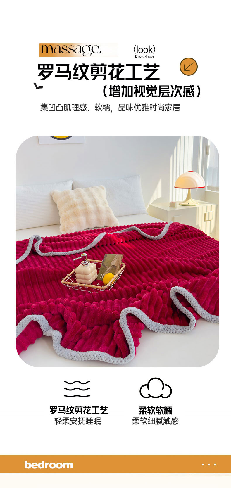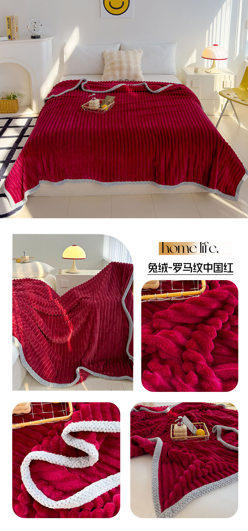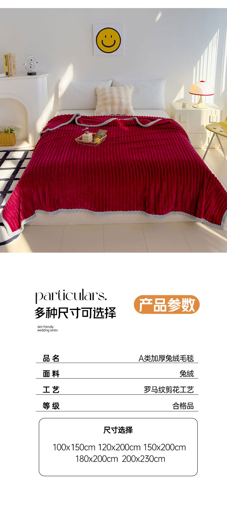 商品名称:灰鲸 2025新款A类加厚罗马纹豆豆剪花兔绒毛毯 兔绒-罗马纹中国红