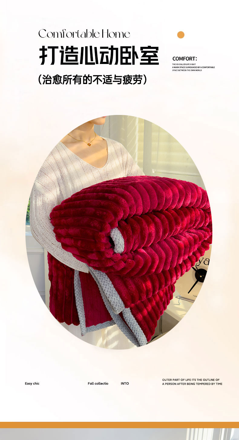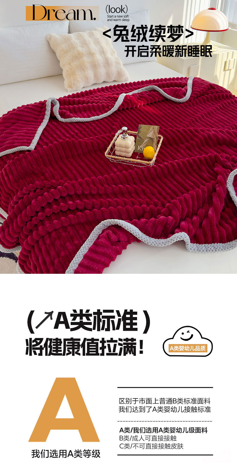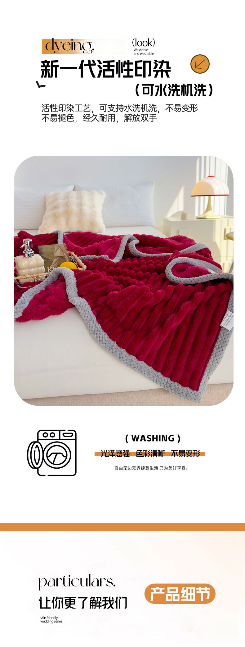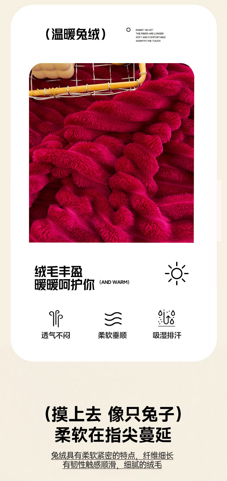 商品名称:灰鲸 2025新款A类加厚罗马纹豆豆剪花兔绒毛毯 兔绒-罗马纹中国红