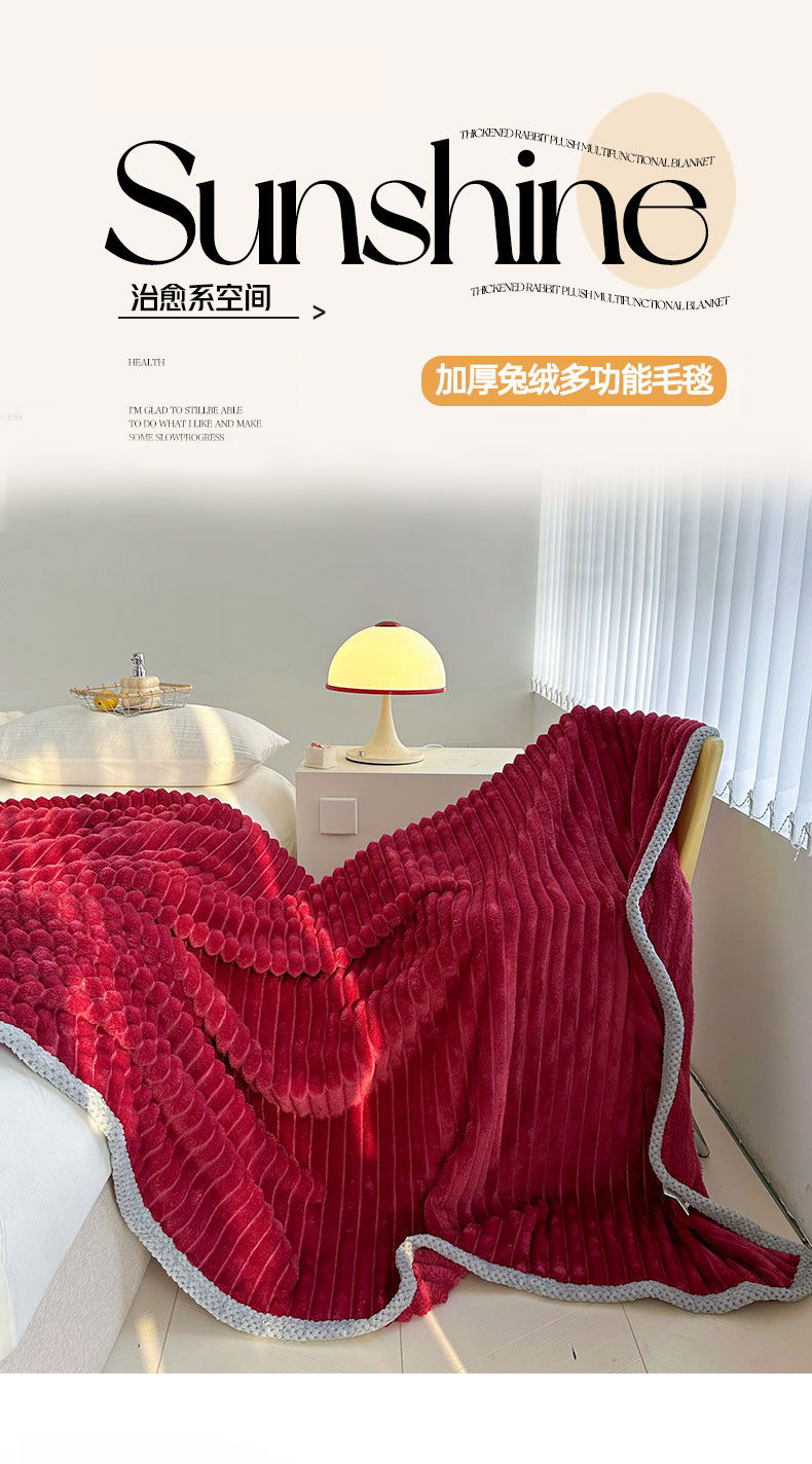 灰鲸 2025新款A类加厚罗马纹豆豆剪花兔绒毛毯 兔绒-罗马纹中国红
