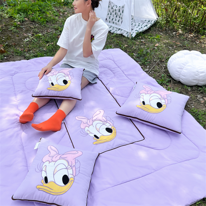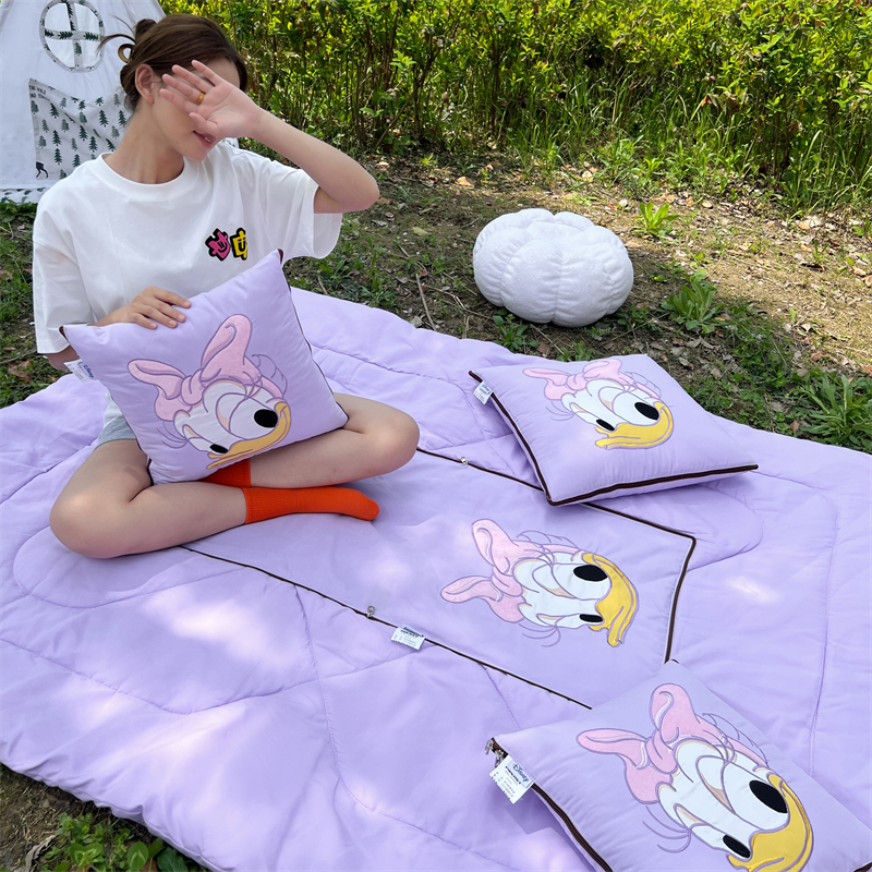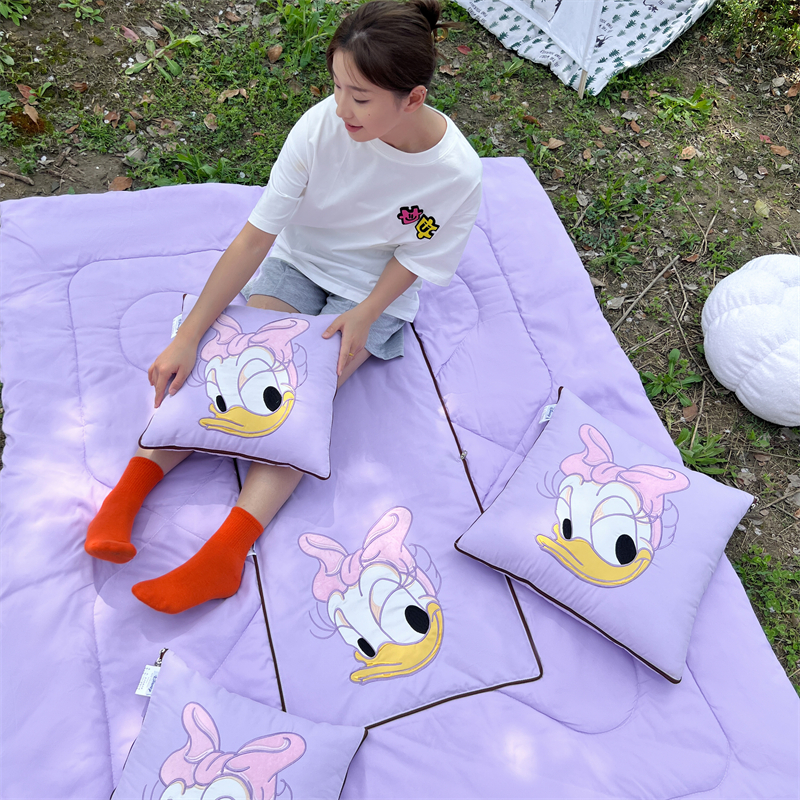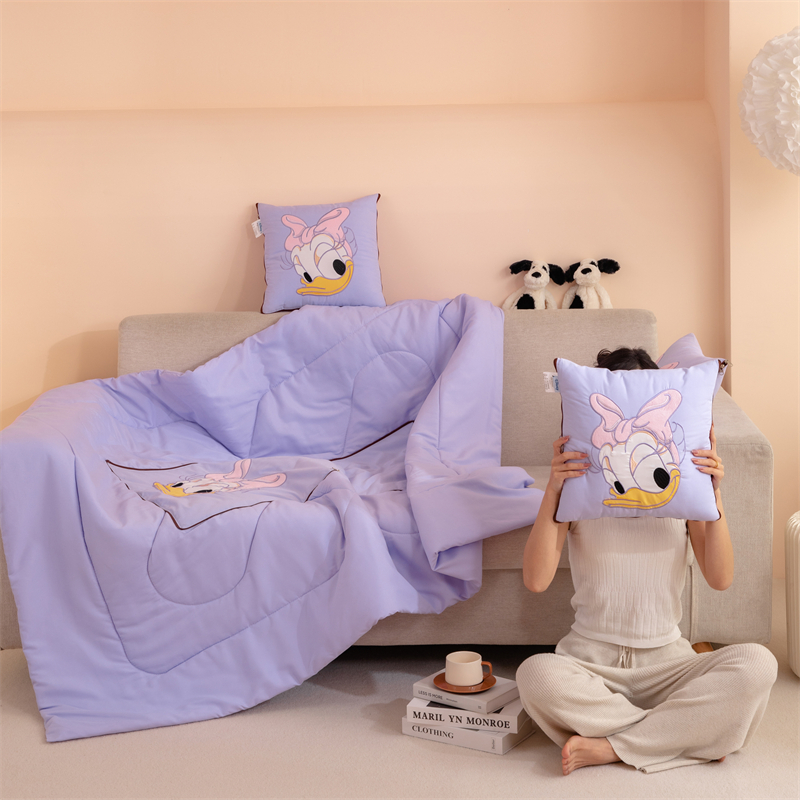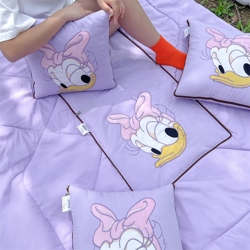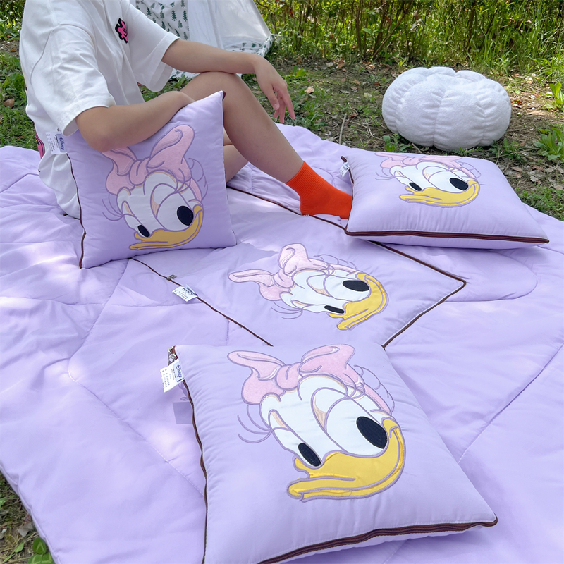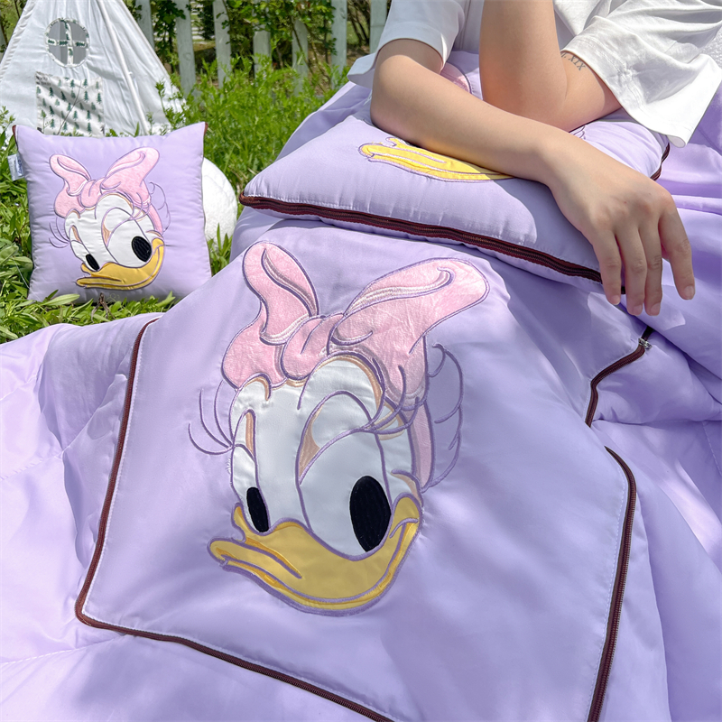 乐坊 2024新款贴布绣抱枕被 紫色大嘴鸭