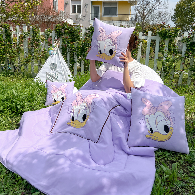商品名称:乐坊 2024新款贴布绣抱枕被 紫色大嘴鸭