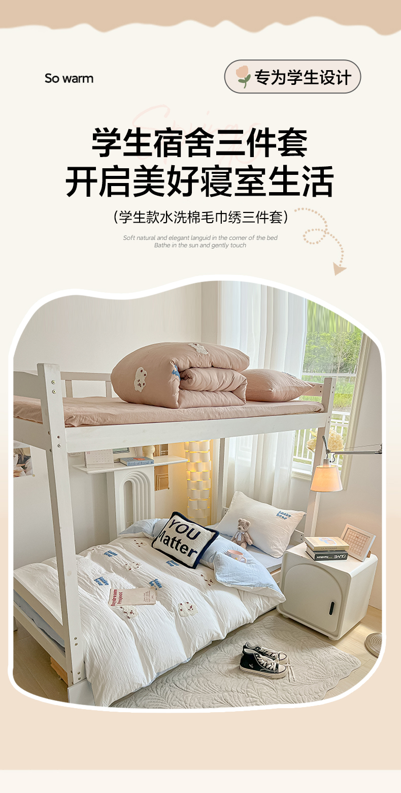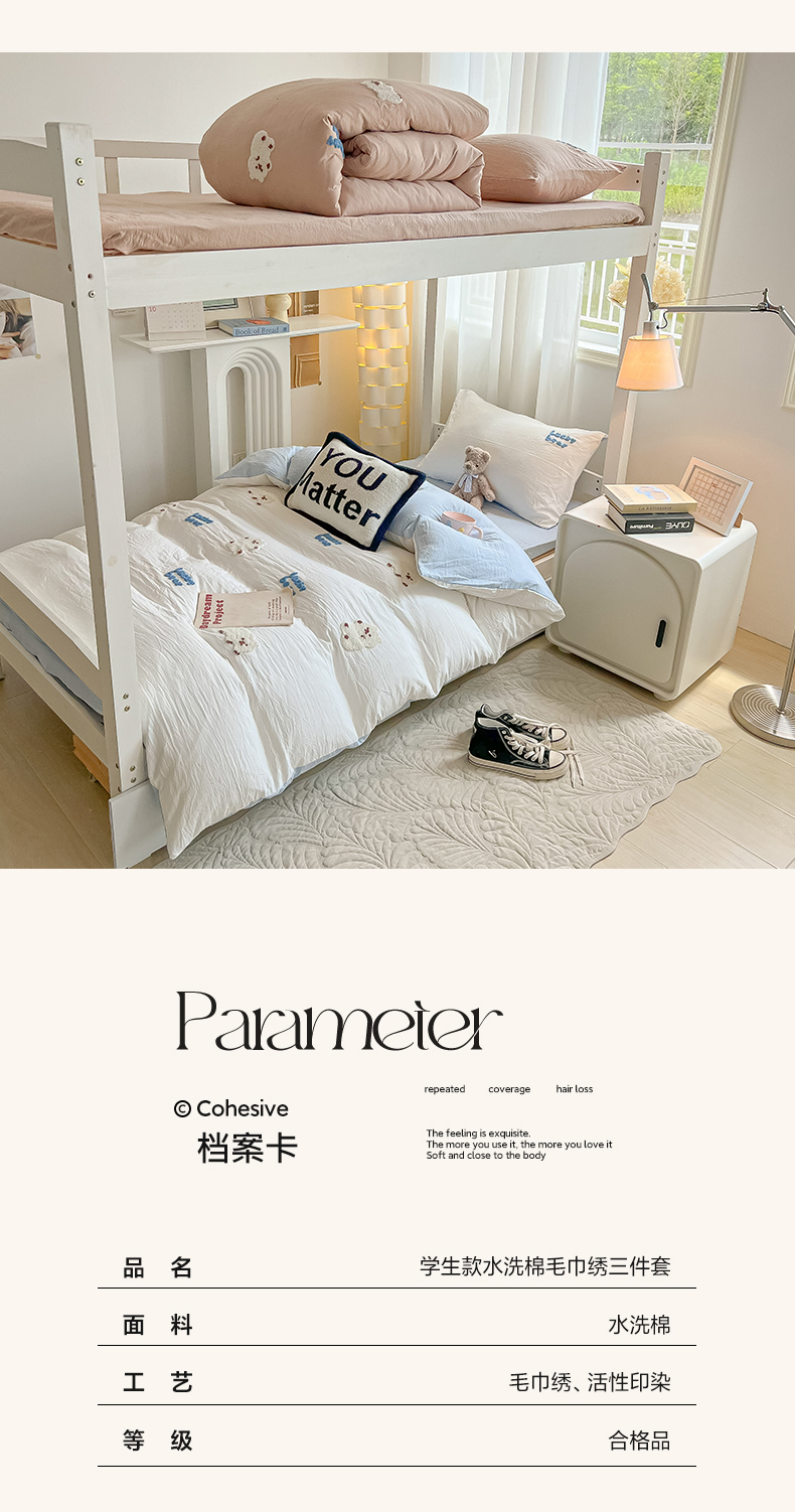 当前位置: 91家纺网 > 商品网购 > 床品套件 > 三件套 > 韩巢家纺 2024新款学生宿舍寝室上下铺超柔水洗棉毛巾绣被套床单三件套-小白熊(提供卖家秀) 小白熊 白蓝