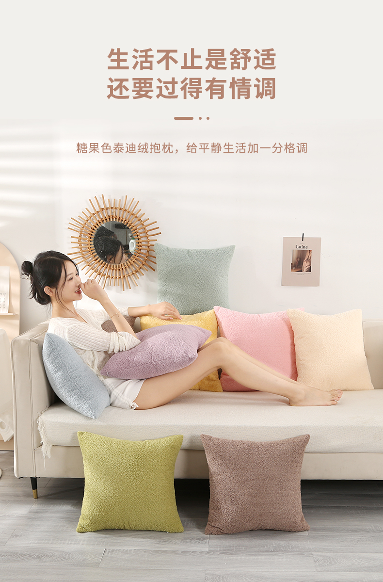 商品名称:囍莱家纺 2024新款糖果色泰迪绒抱枕 芝士黄