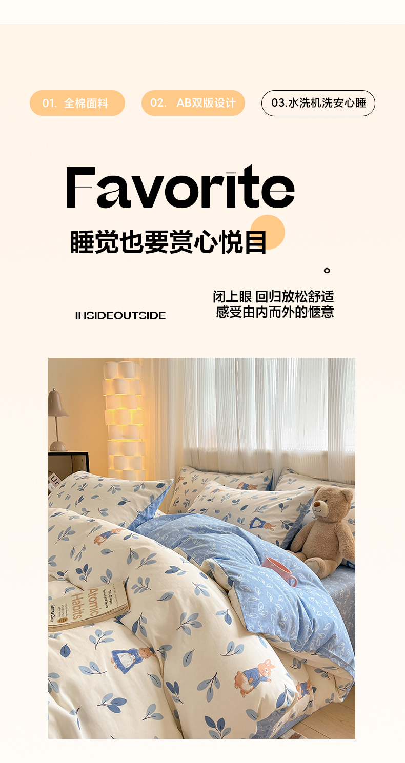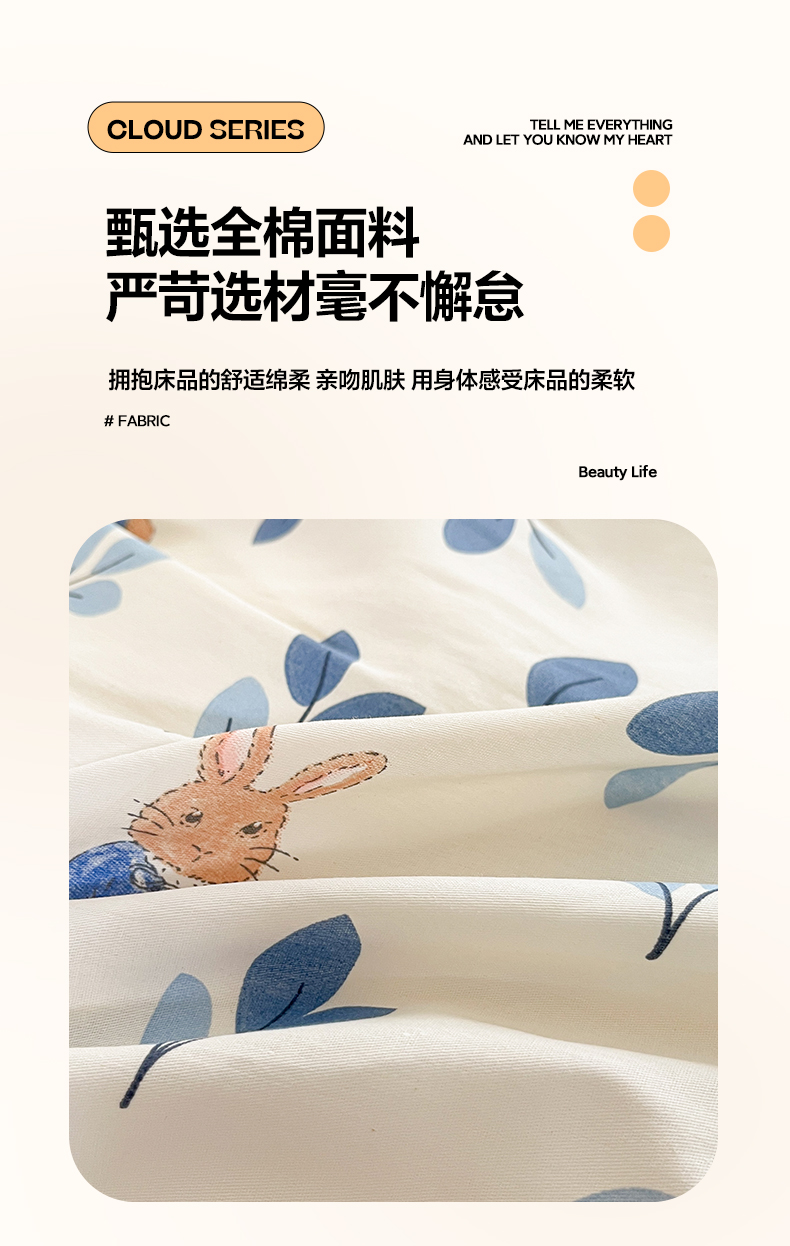 当前位置: 91家纺网 > 商品网购 > 床品套件 > 四件套 > 全棉普通四件套 > 雅居纺 2024新款全棉印花四件套 萌萌兔