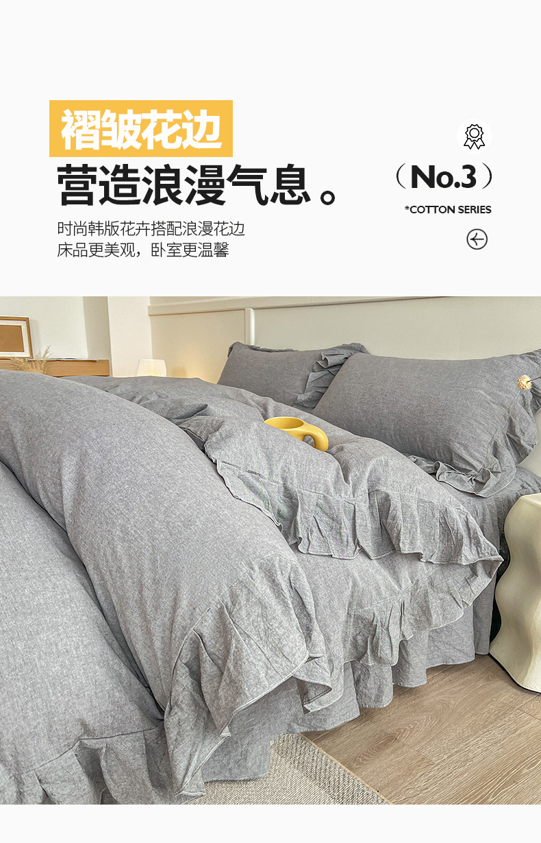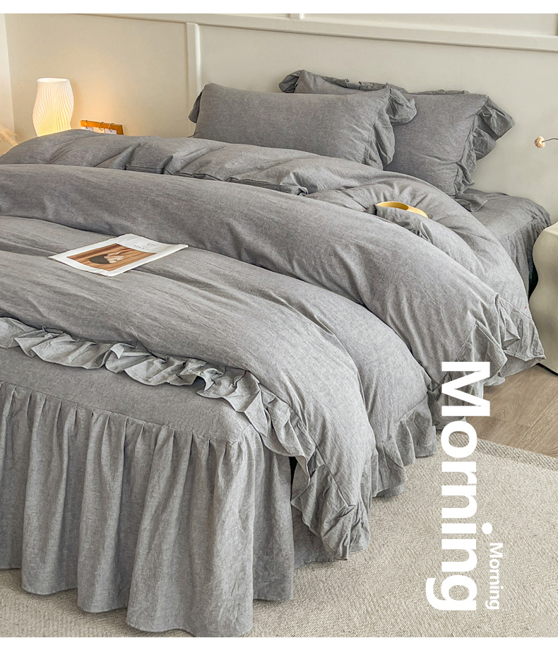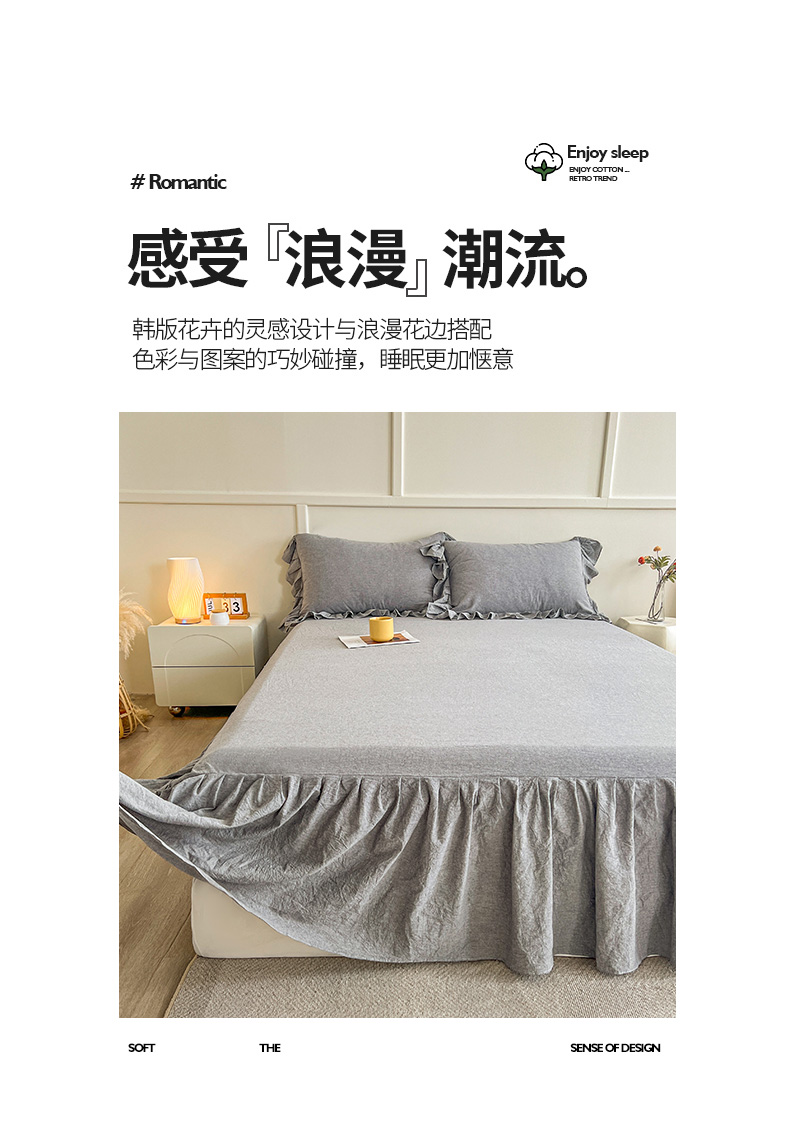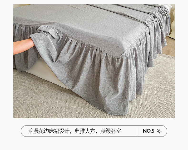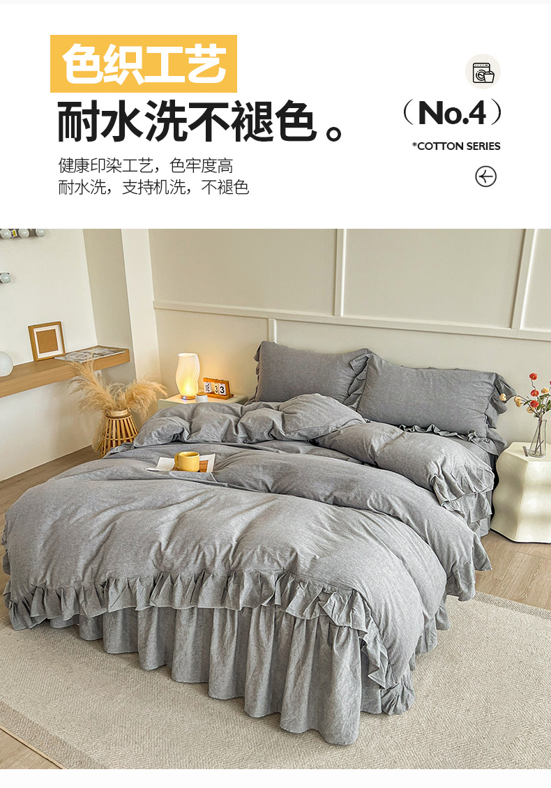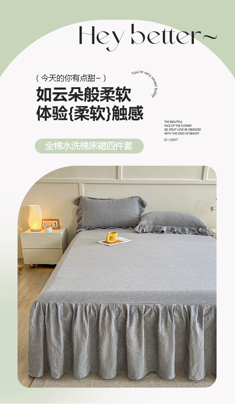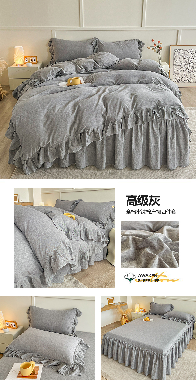 当前位置: 91家纺网 > 商品网购 > 床品套件 > 四件套 > 全棉普通四件套 > 糯米猪家纺 2024新款全棉水洗棉床裙四件套 高级灰