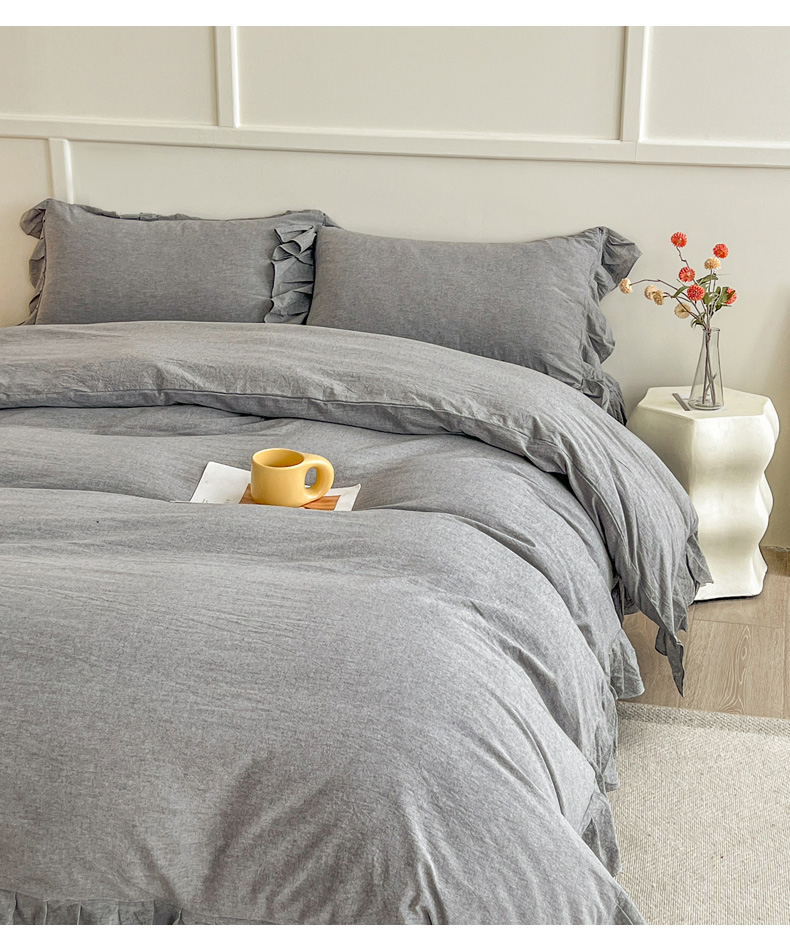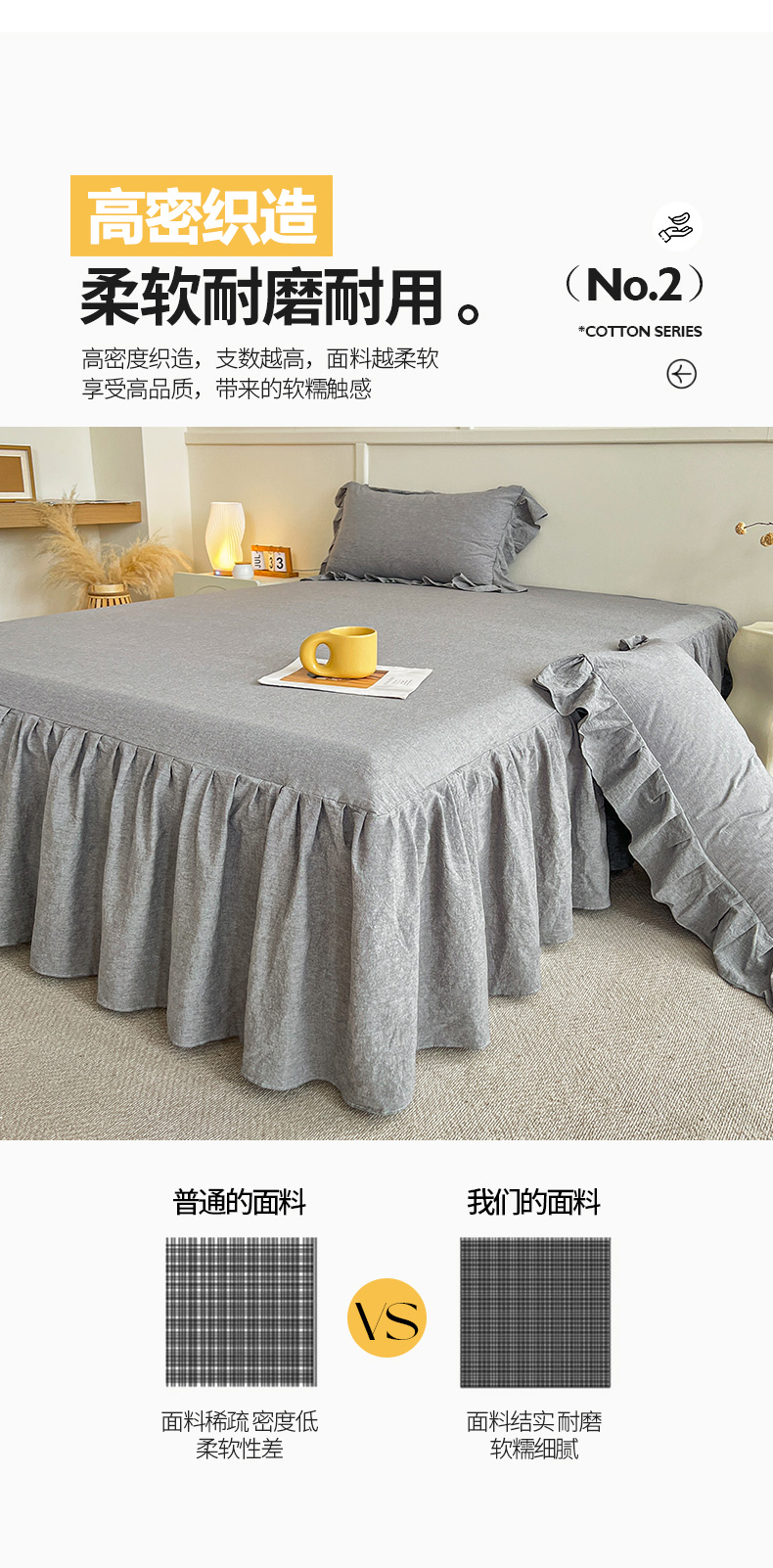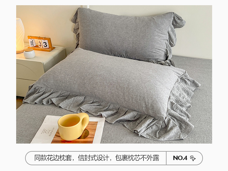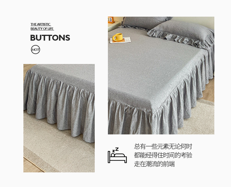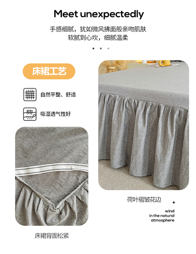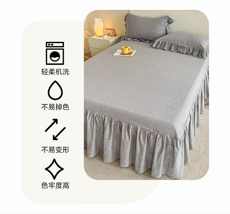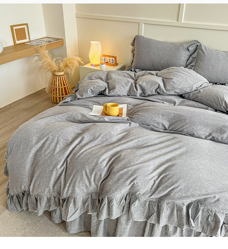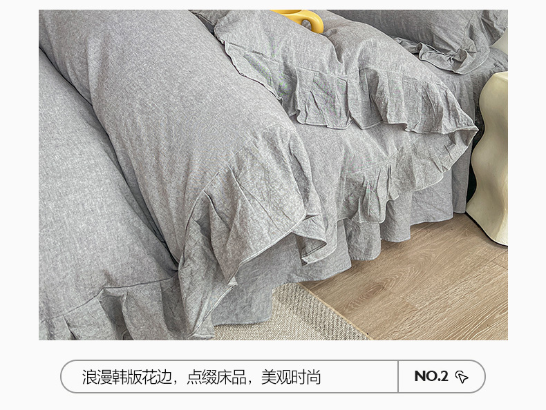 当前位置: 91家纺网 > 商品网购 > 床品套件 > 四件套 > 全棉普通四件套 > 糯米猪家纺 2024新款全棉水洗棉床裙四件套 高级灰