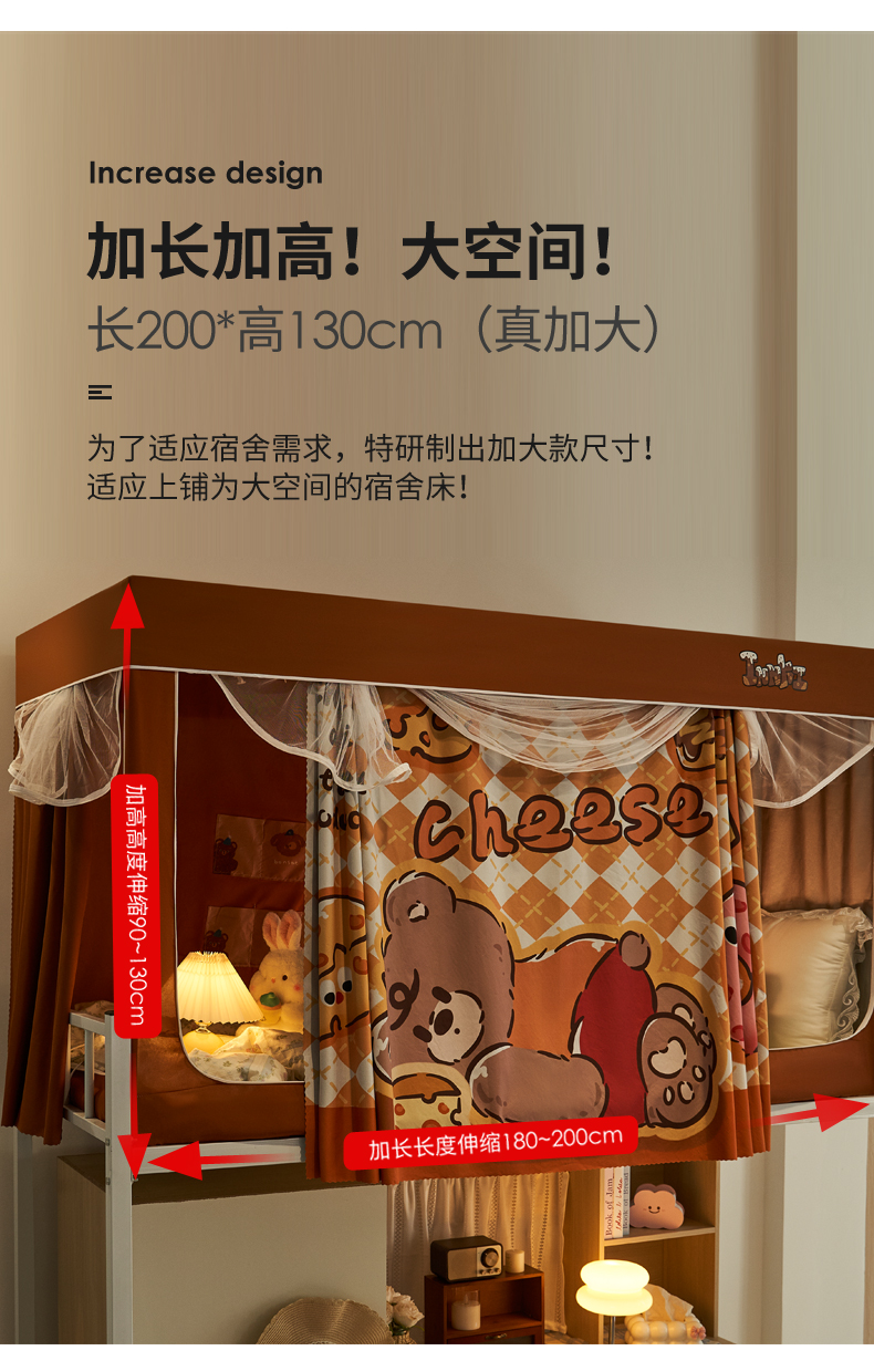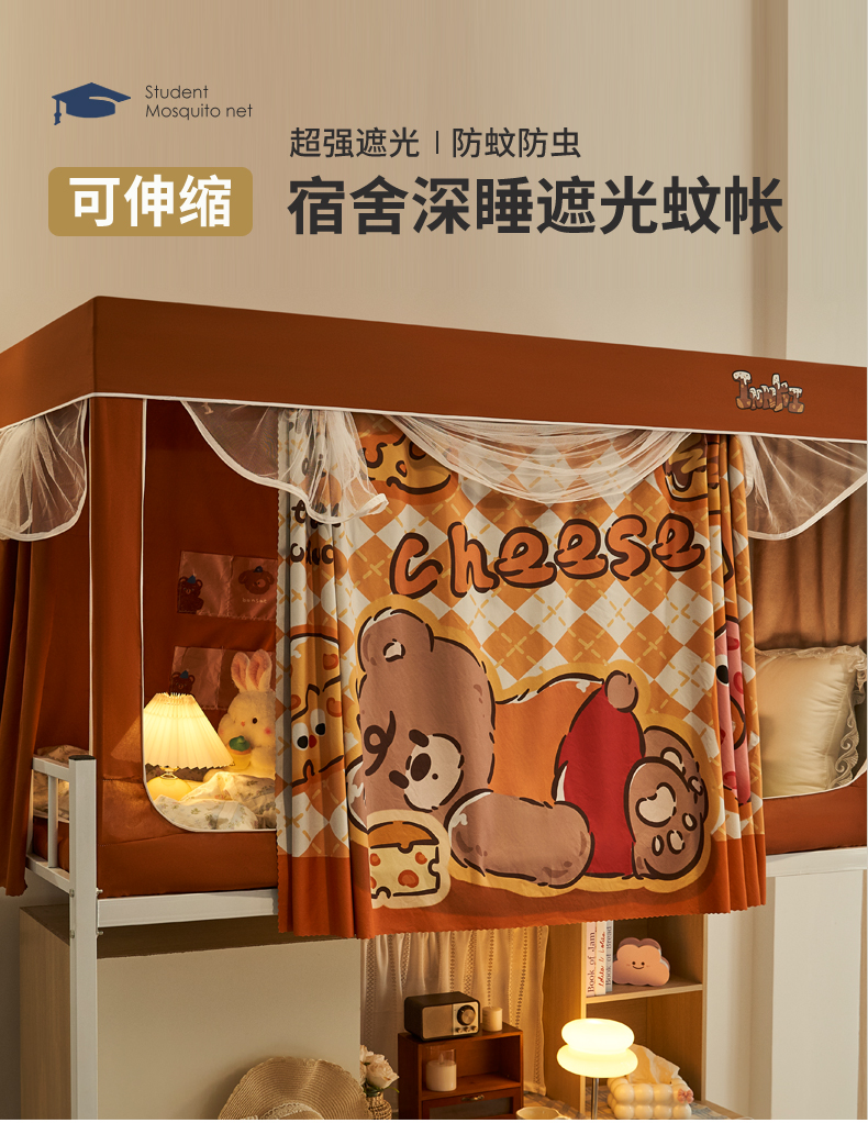 当前位置: 91家纺网 > 商品网购 > 床上用品 > 蚊帐 > 学生蚊帐 > 卓尔居 2025新款学生遮光床帘涂层包边卡通系列 奶酪熊