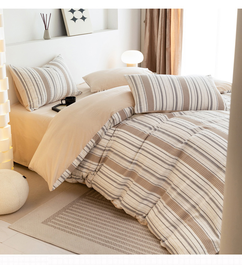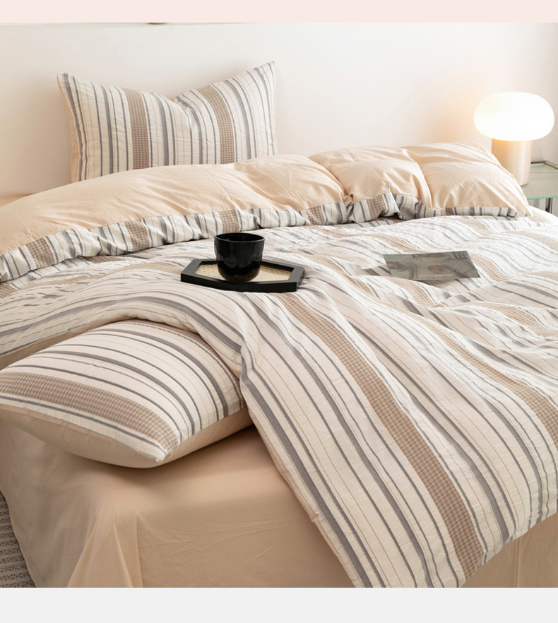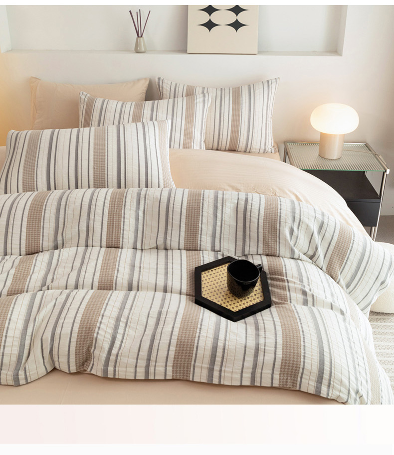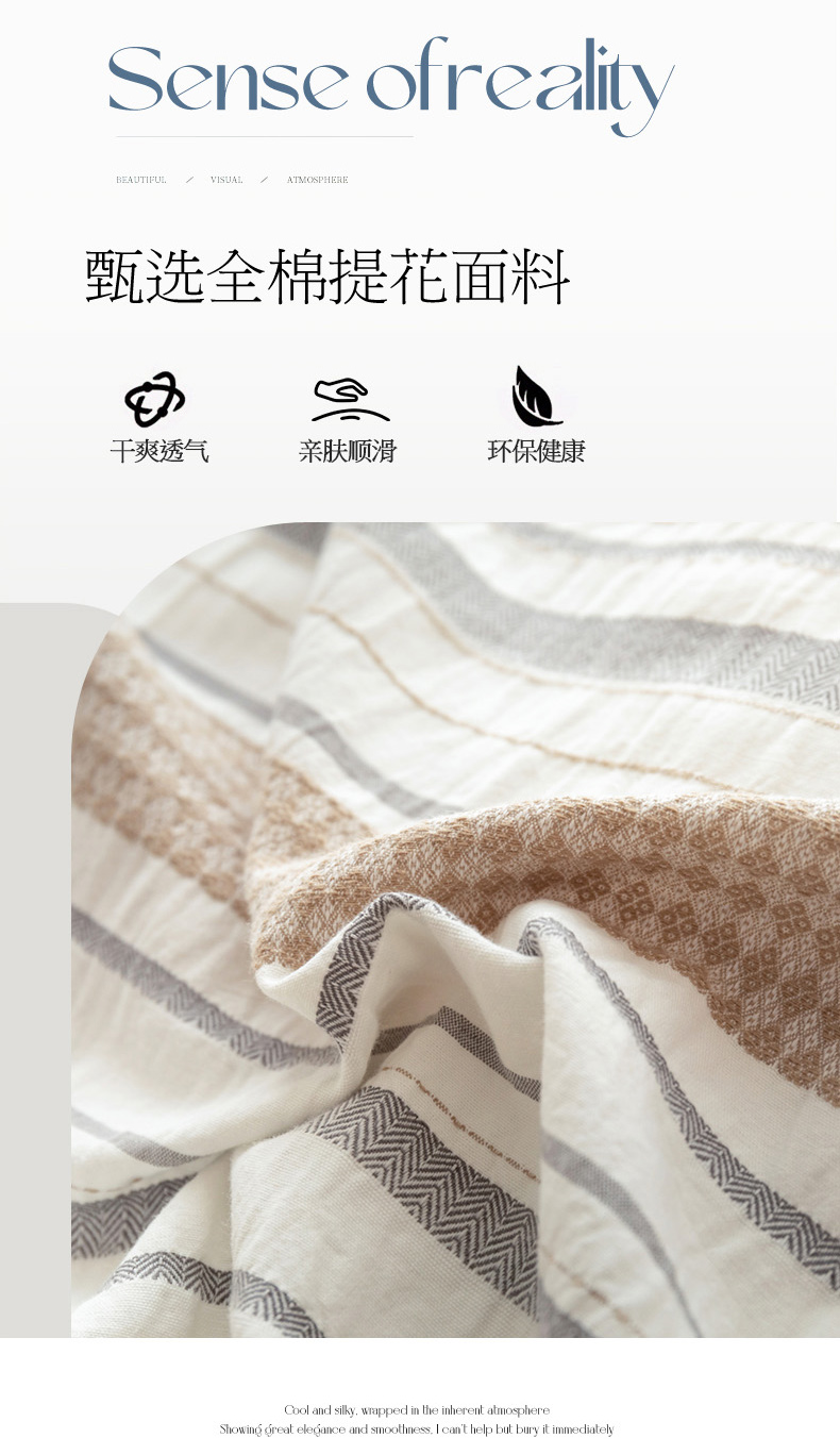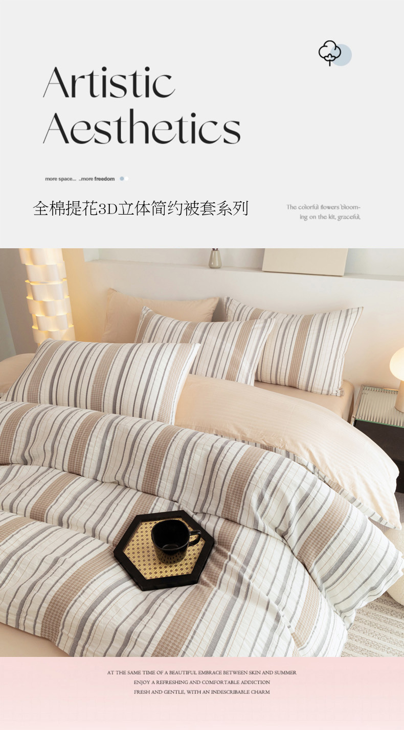 倾慕家纺 2024新款A类提花全棉3D立体简约纯棉单枕套被套套件系列-单被套 华夫生活-香槟