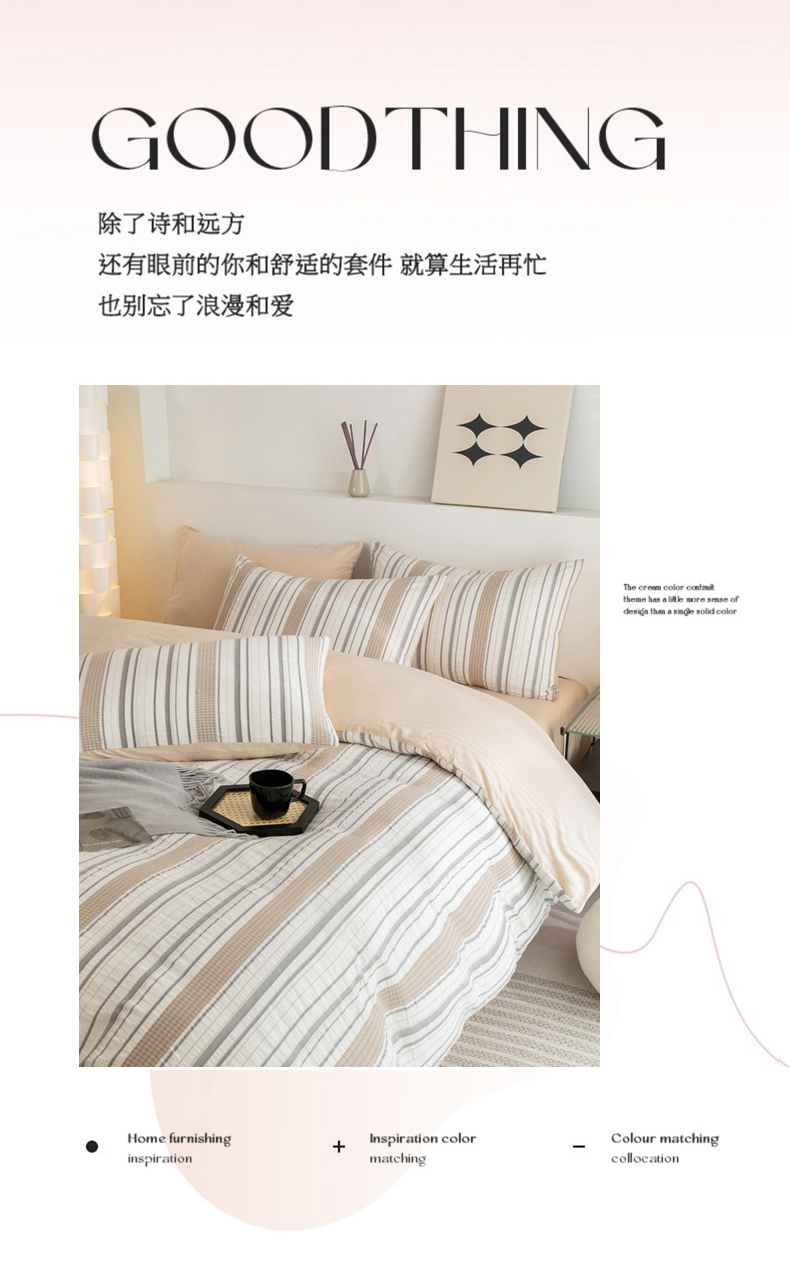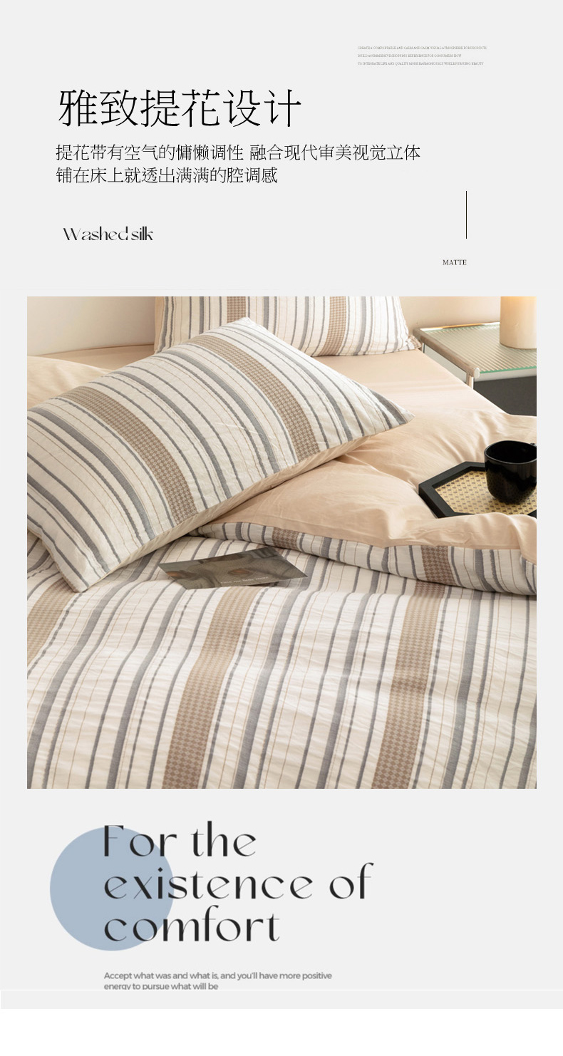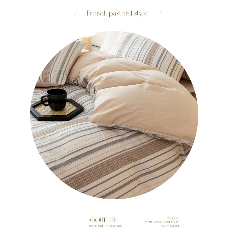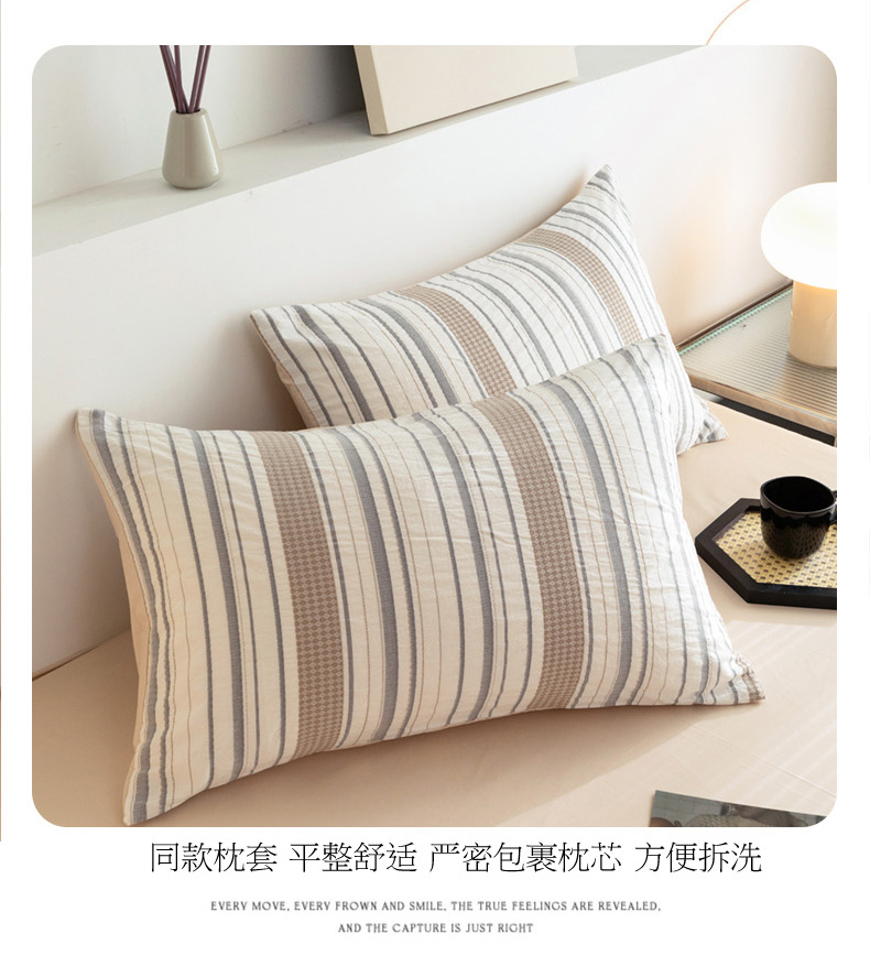 商品名称:倾慕家纺 2024新款A类提花全棉3D立体简约纯棉单枕套被套套件系列-单被套 华夫生活-香槟