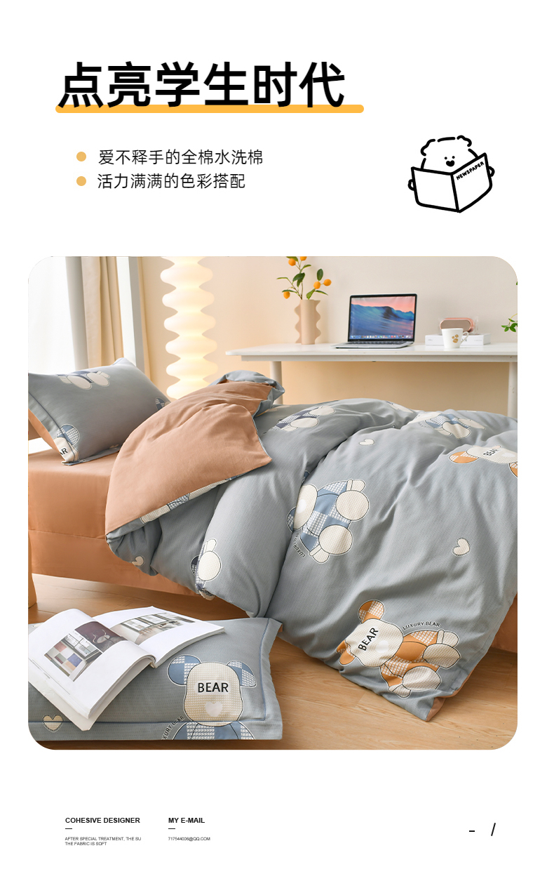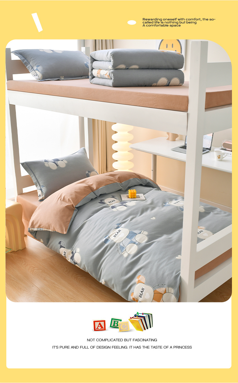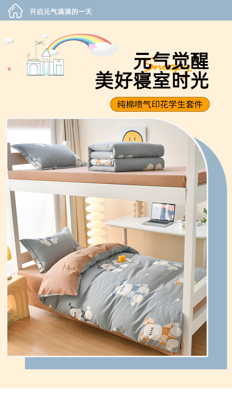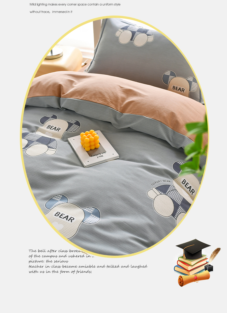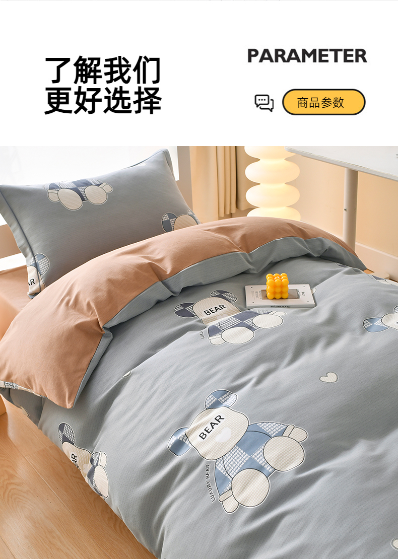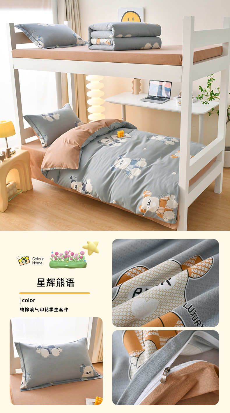 当前位置: 91家纺网 > 商品网购 > 床品套件 > 四件套 > 全棉普通四件套 > 优尚 2025全棉纯棉磨毛喷气印花学生三件套 星辉熊语