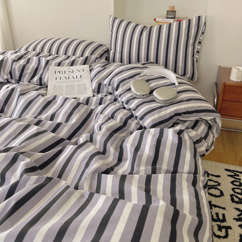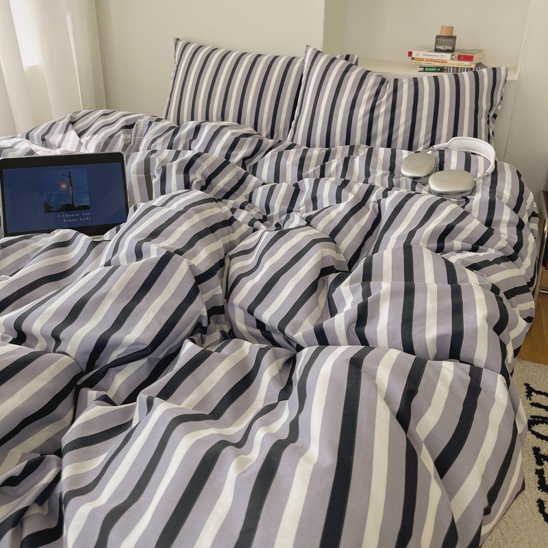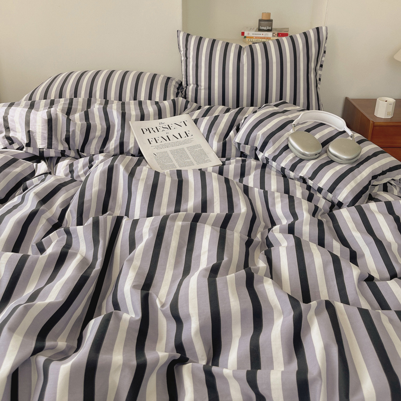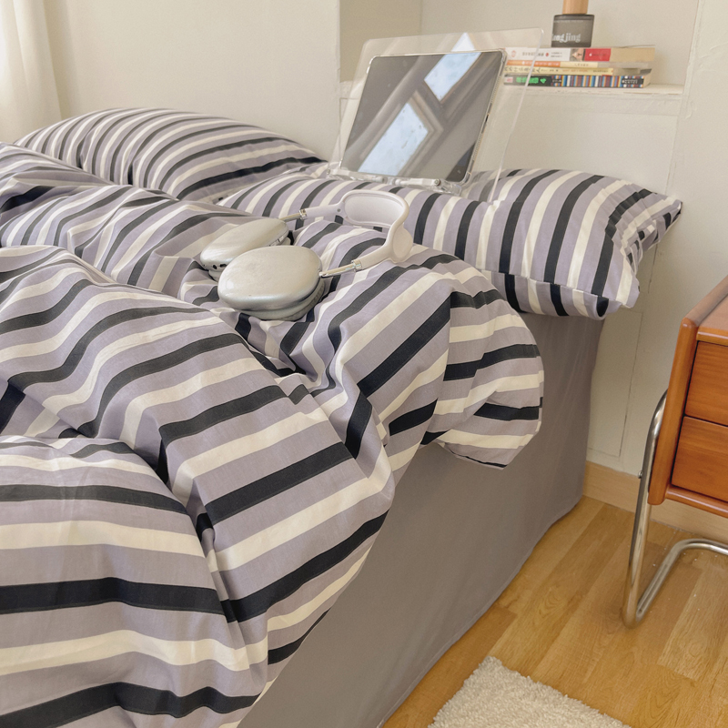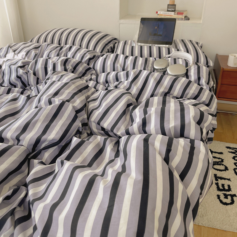 商品名称:桃喜 2024新款ins风全棉混搭四件套系列 黑灰条纹(同色)