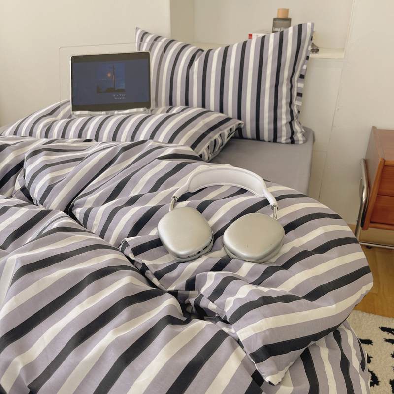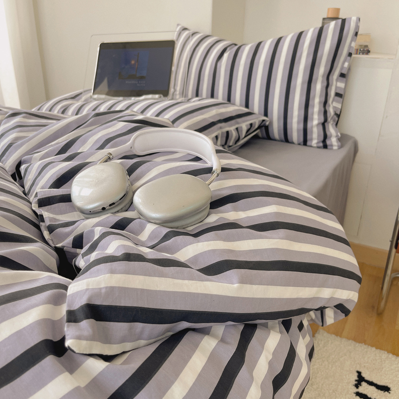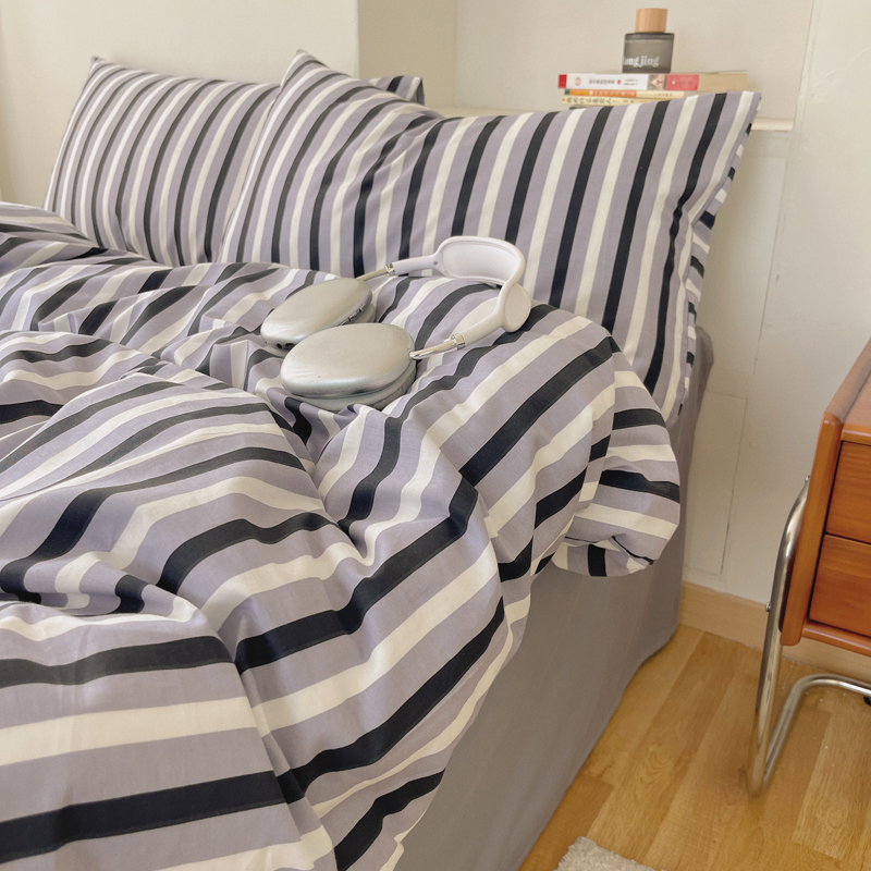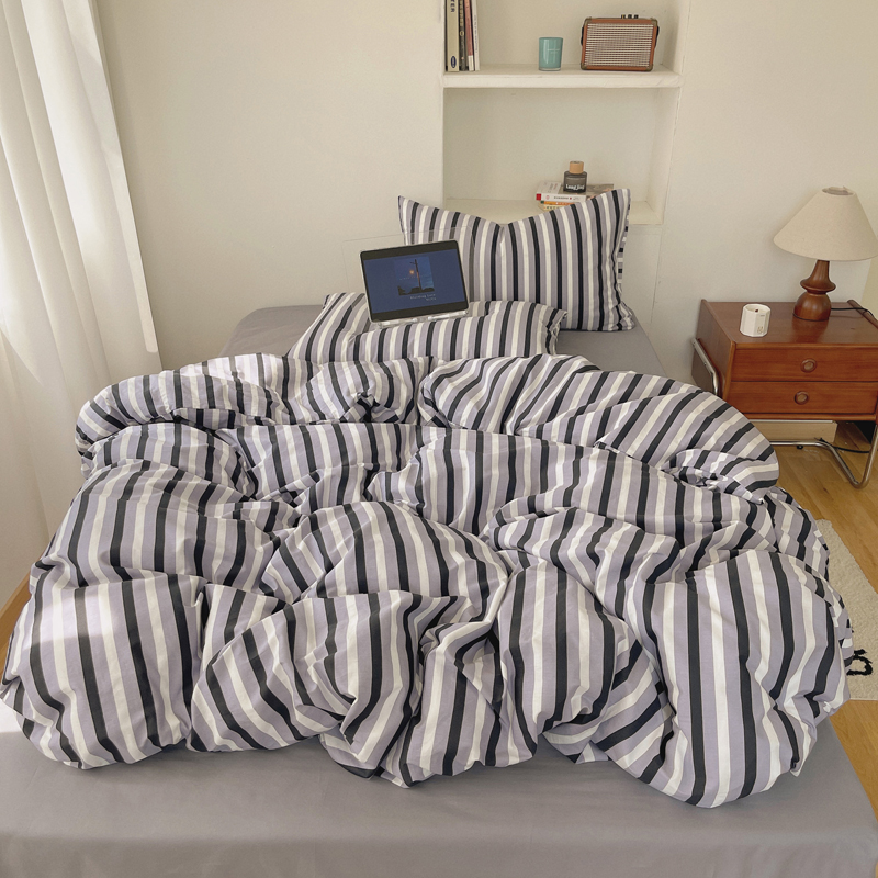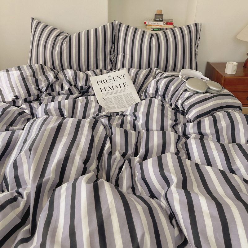 商品名称:桃喜 2024新款ins风全棉混搭四件套系列 黑灰条纹(同色)