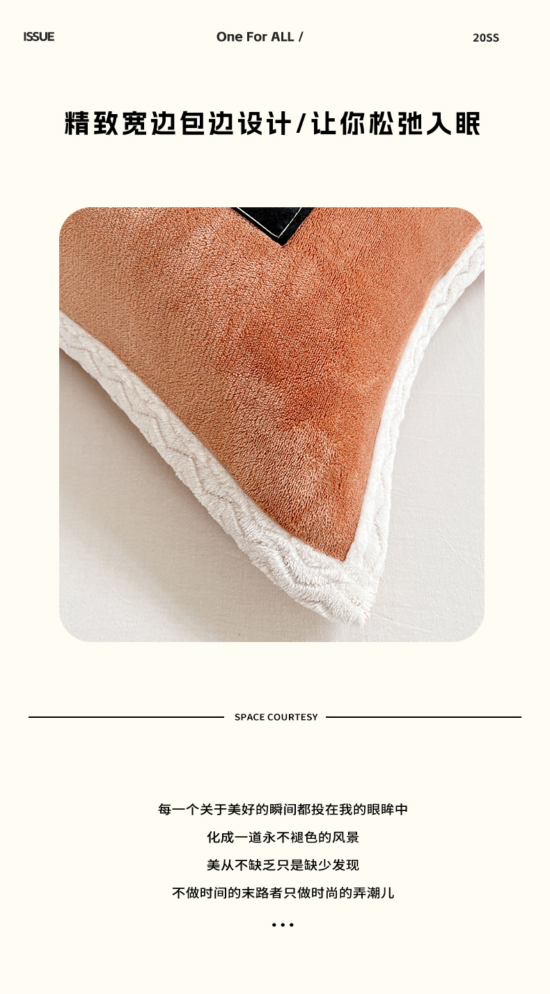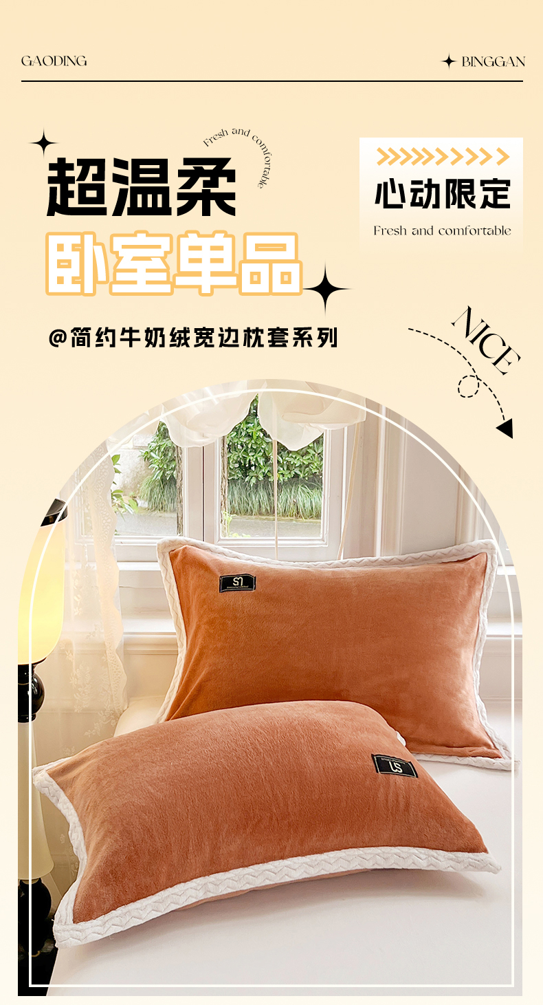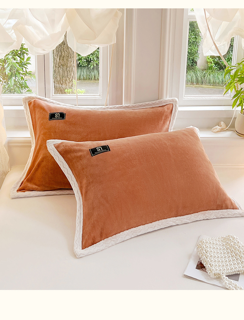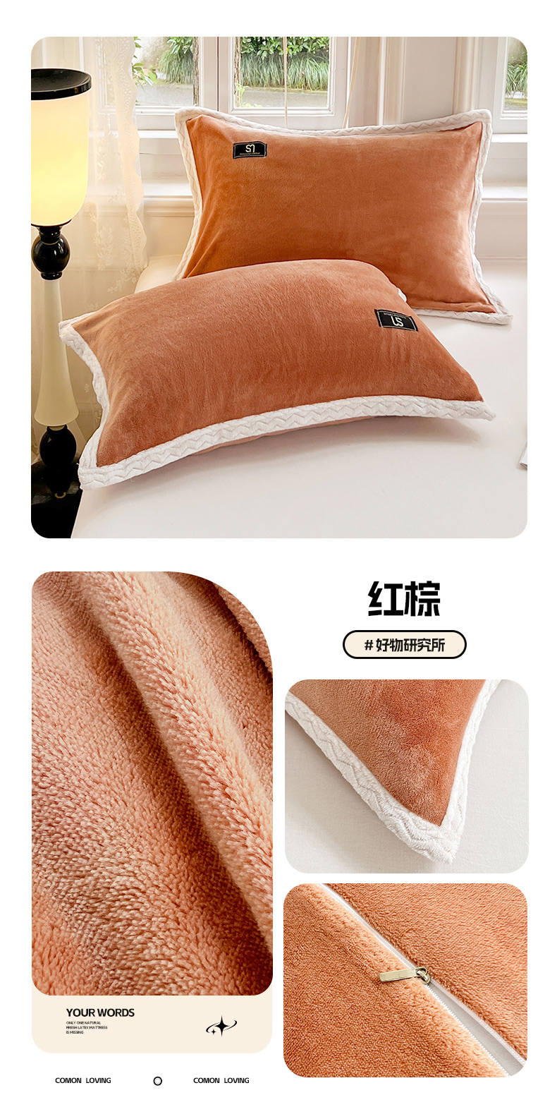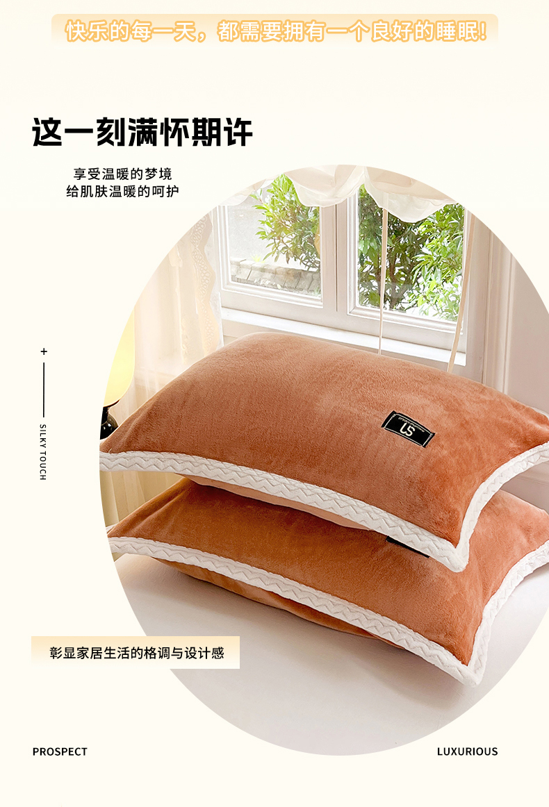 商品名称:悦织语 2024新款单品高克重宽边牛奶绒枕套 红棕
