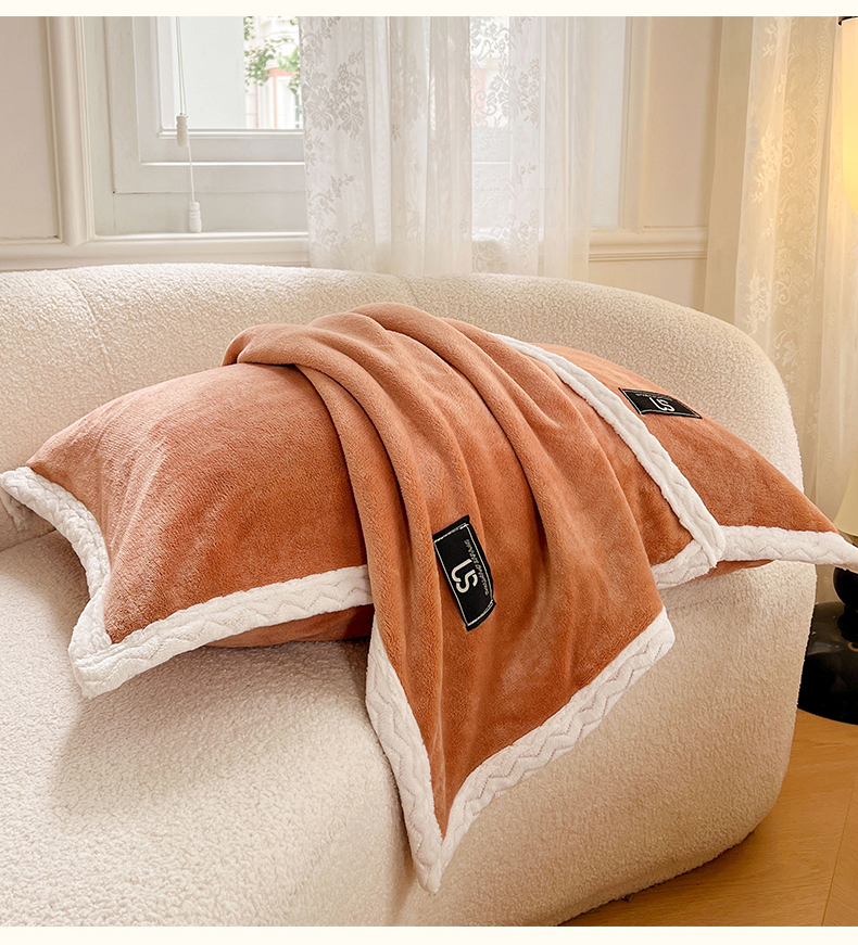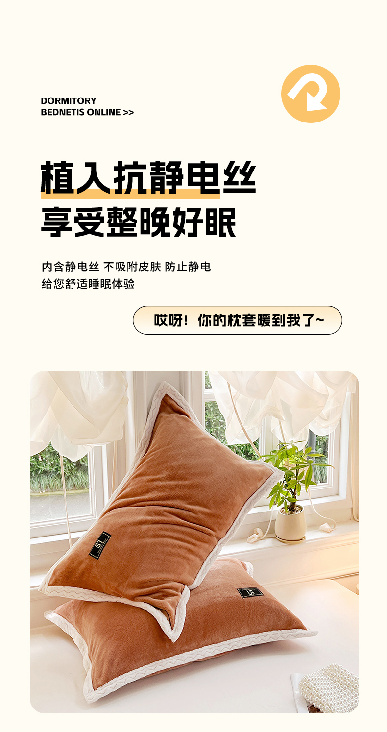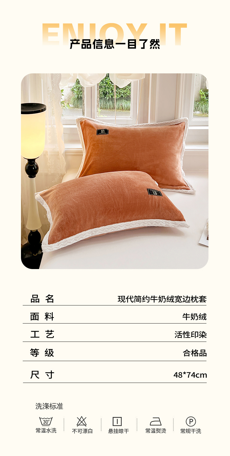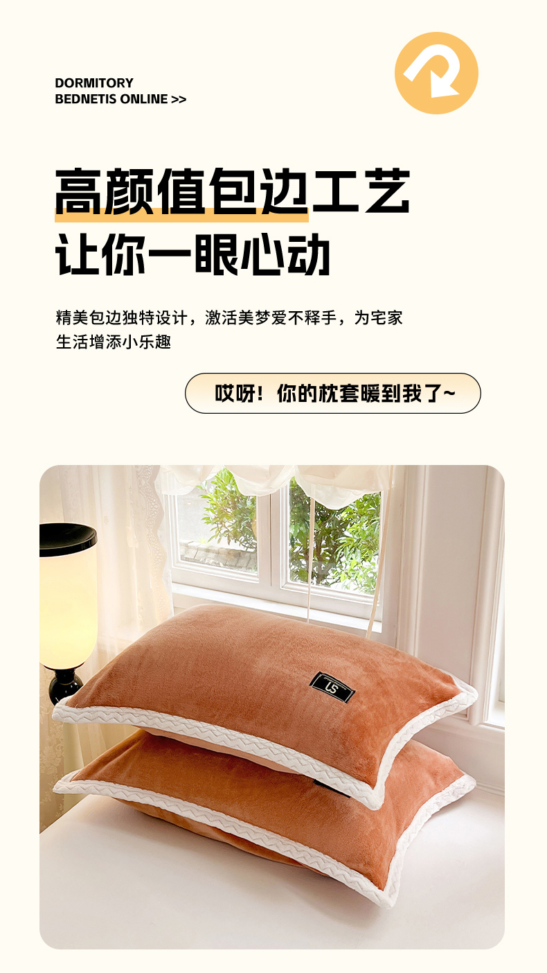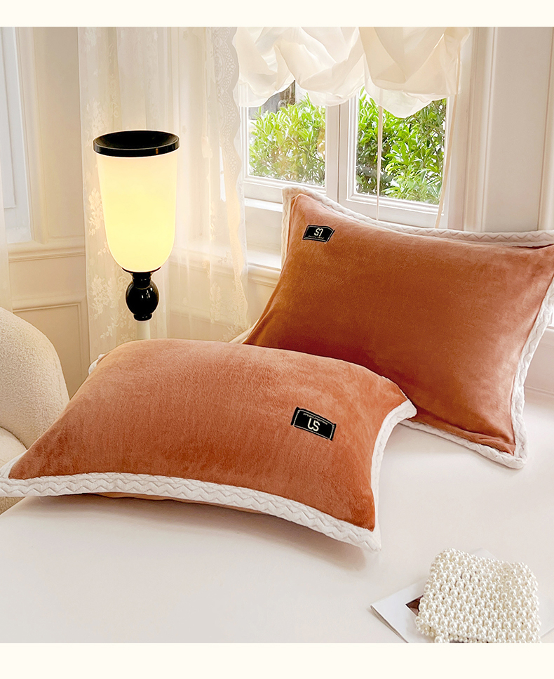 商品名称:悦织语 2024新款单品高克重宽边牛奶绒枕套 红棕